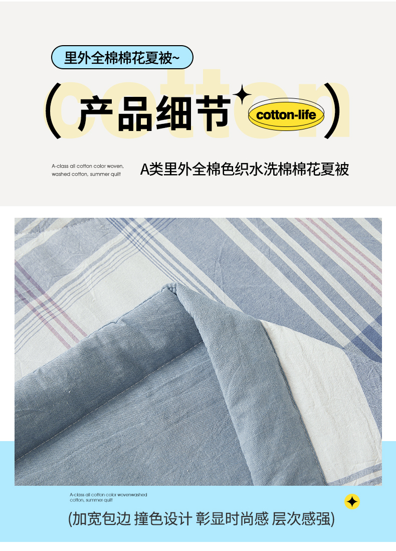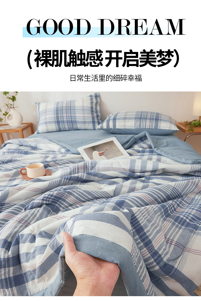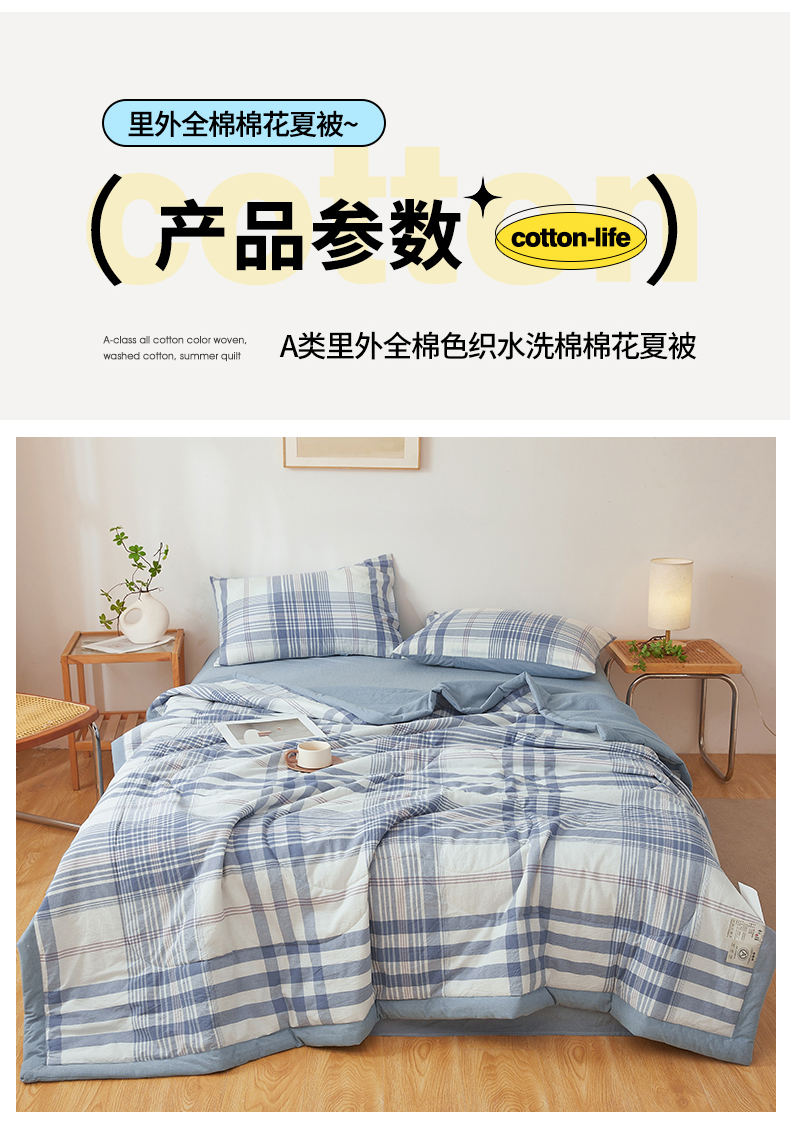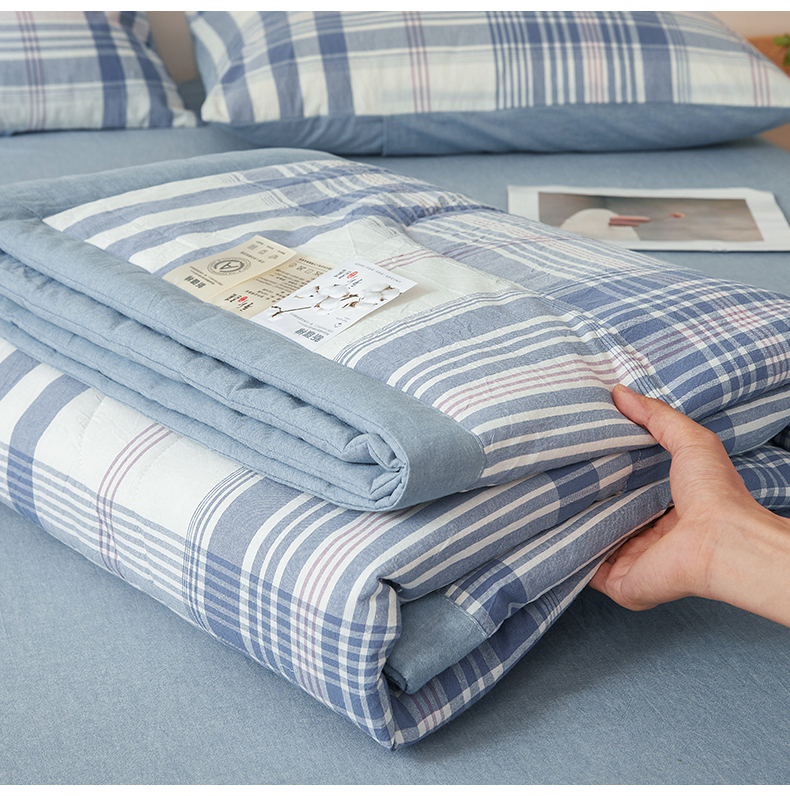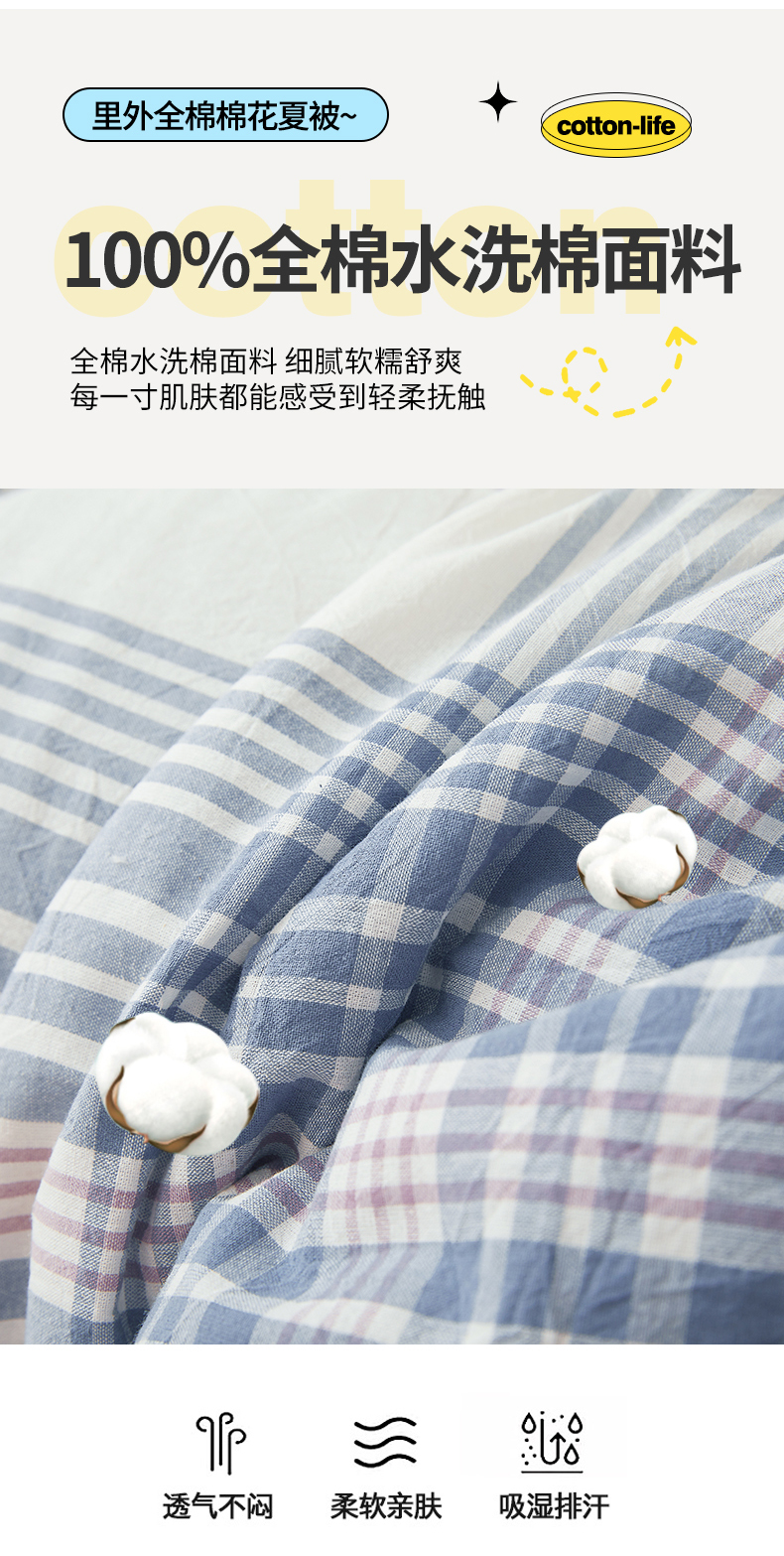 商品名称:西域种棉人·千百笠 2026新款A类里外全棉夏凉被100%新疆棉纯棉全棉填充无印格子款空调被夏被 里外全棉-蓝调格