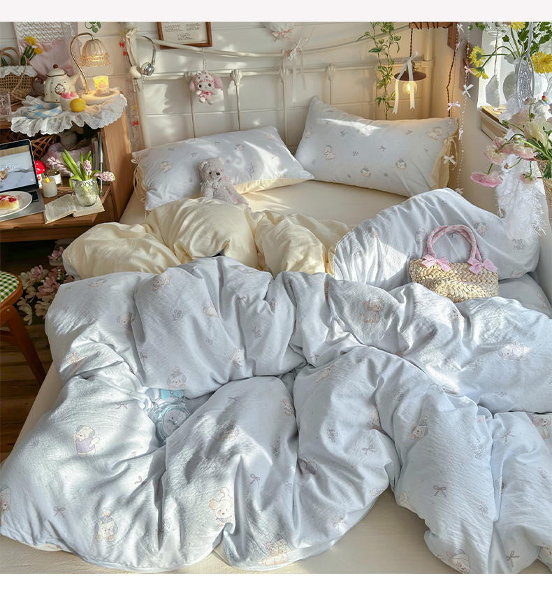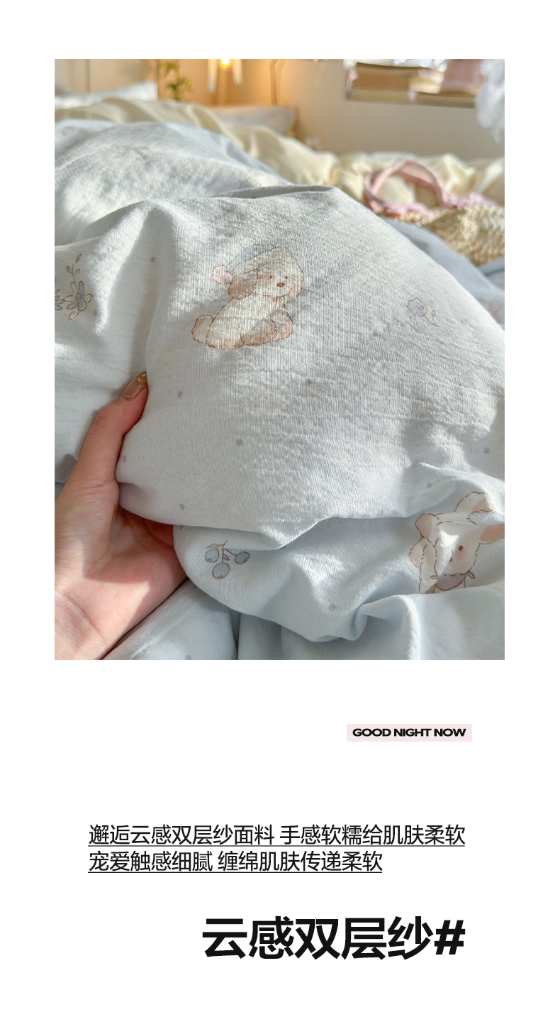 当前位置: 91家纺网 > 商品网购 > 床品套件 > 四件套 > 双层纱四件套 > 优选良品 2026新款小清新直播热卖款云感双层纱木棉四件套系列(小红书热款推荐) 幸运狗狗