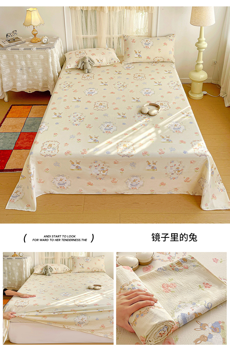 (总)纽缦家纺 2024水洗双层纱床单,半眠日记,南岛小镇,嗨皮狗,夹心果冻,小兔堡,小南瓜,小橘子,小熊猫,小熊院长,小绿鸭,小黑球,心动兔兔,捉迷藏,撞进晚风,日记小姐,旧岛望海,曼塔玫瑰,桃你喜欢,甜茶日记,甜酥少女,童话小熊,素颜捧花,莓天开心,蓝小鸭,蓝海玫瑰,遇见米,遇见紫,香草薄荷