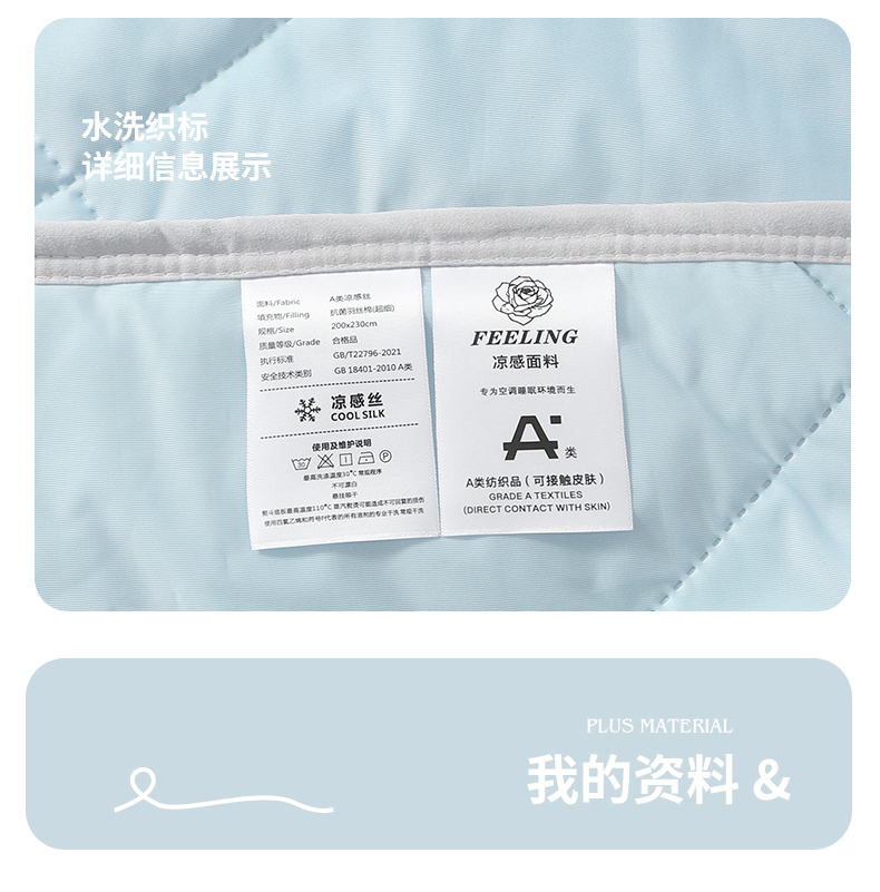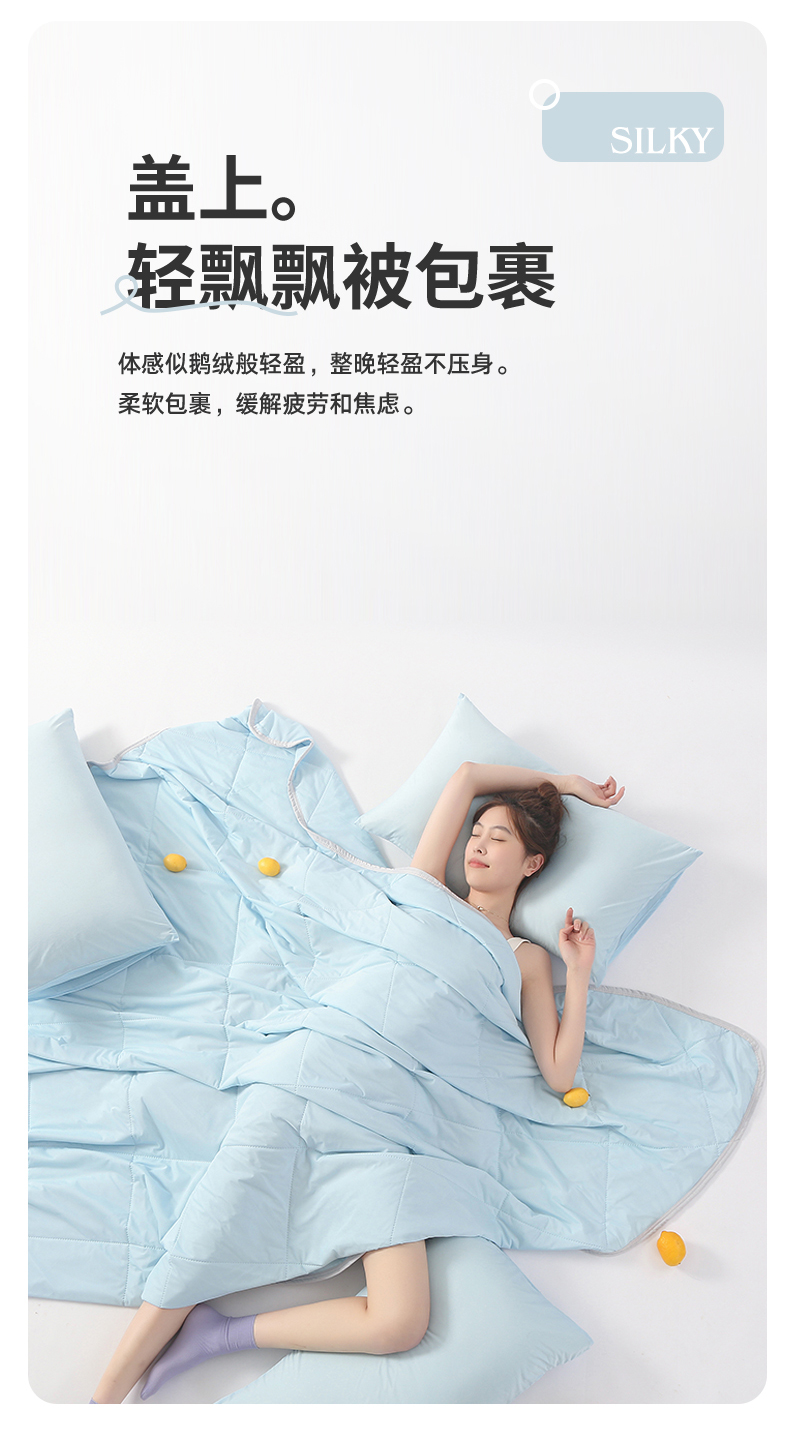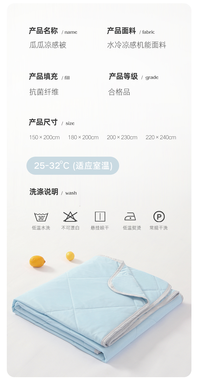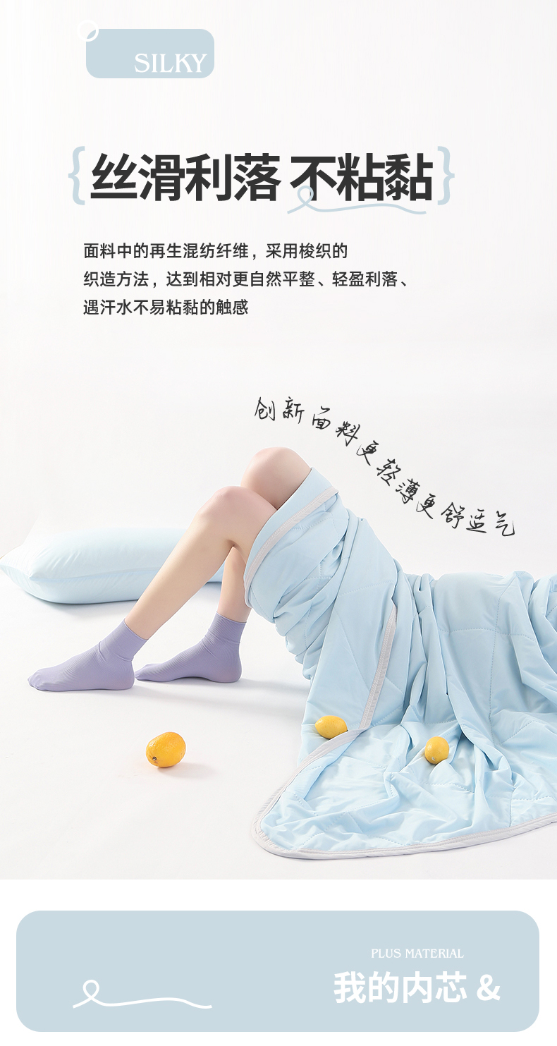 商品名称:薇玛仕 2026新款超声波带氨凉感丝纯色瓜瓜凉感夏被空调被 纯色天蓝