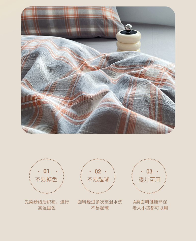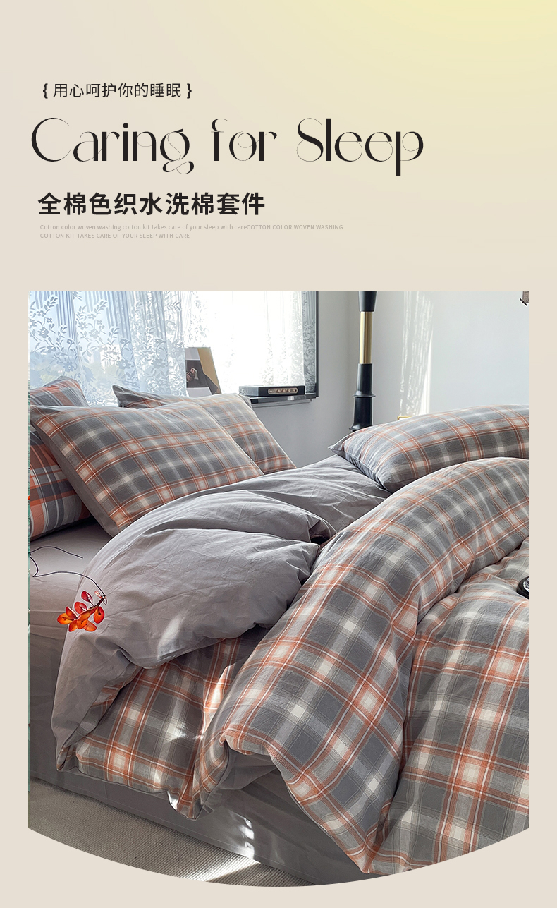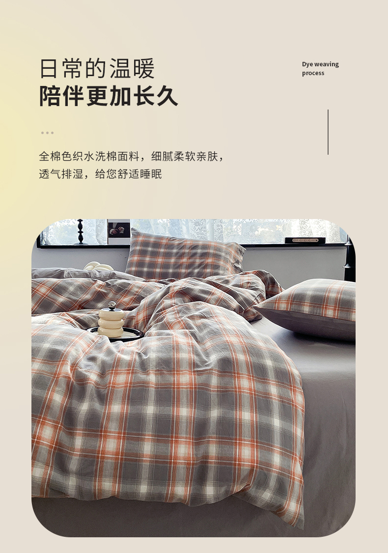 当前位置: 91家纺网 > 商品网购 > 床品套件 > 四件套 > 全棉普通四件套 > 春皖家纺 2026新款色织AB版水洗棉三件套四件套单品系列(四件套风格一) 栗木-咖格