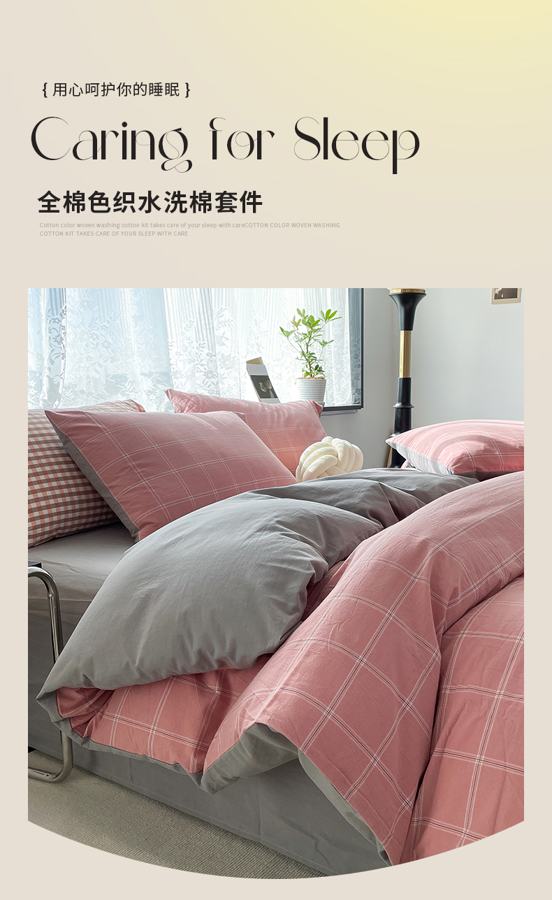 当前位置: 91家纺网 > 商品网购 > 床品套件 > 四件套 > 全棉普通四件套 > 春皖家纺 2026新款色织AB版水洗棉三件套四件套单品系列(四件套风格一) 素雅-韵粉