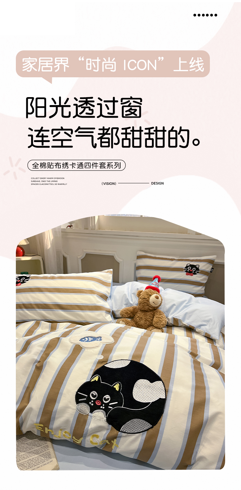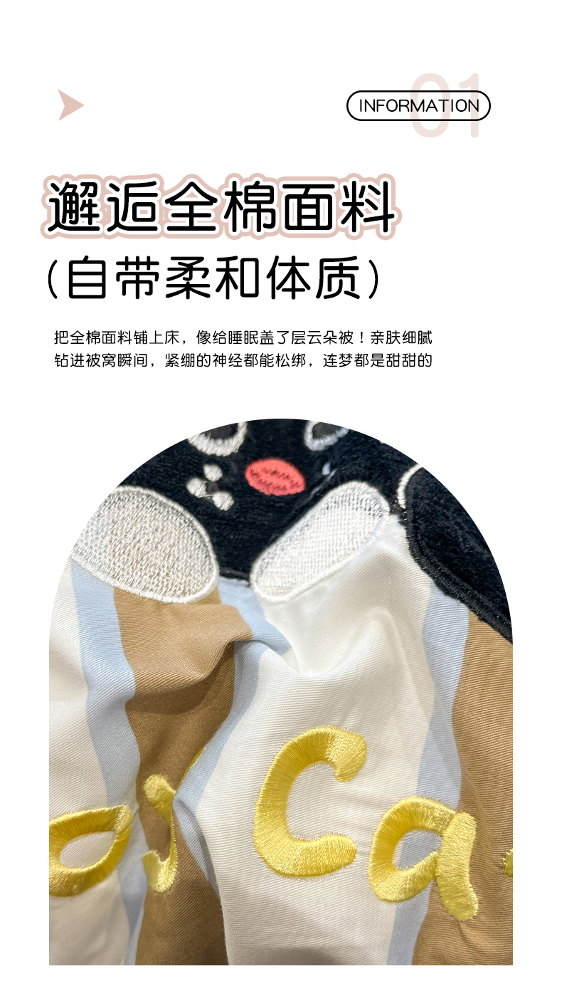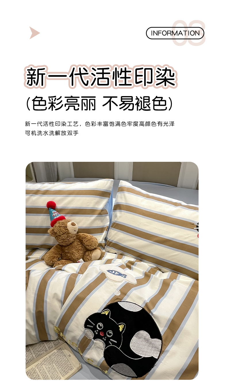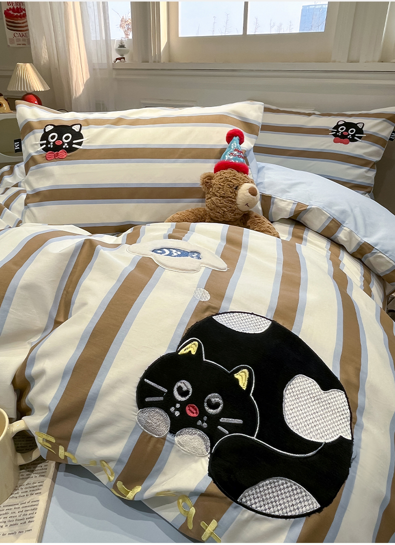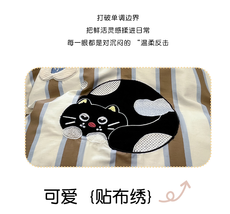 当前位置: 91家纺网 > 商品网购 > 床品套件 > 四件套 > 全棉普通四件套 > 乐美家纺 2026春夏新款软萌全棉纯棉贴布绣系列四件套 复古英伦黑猫