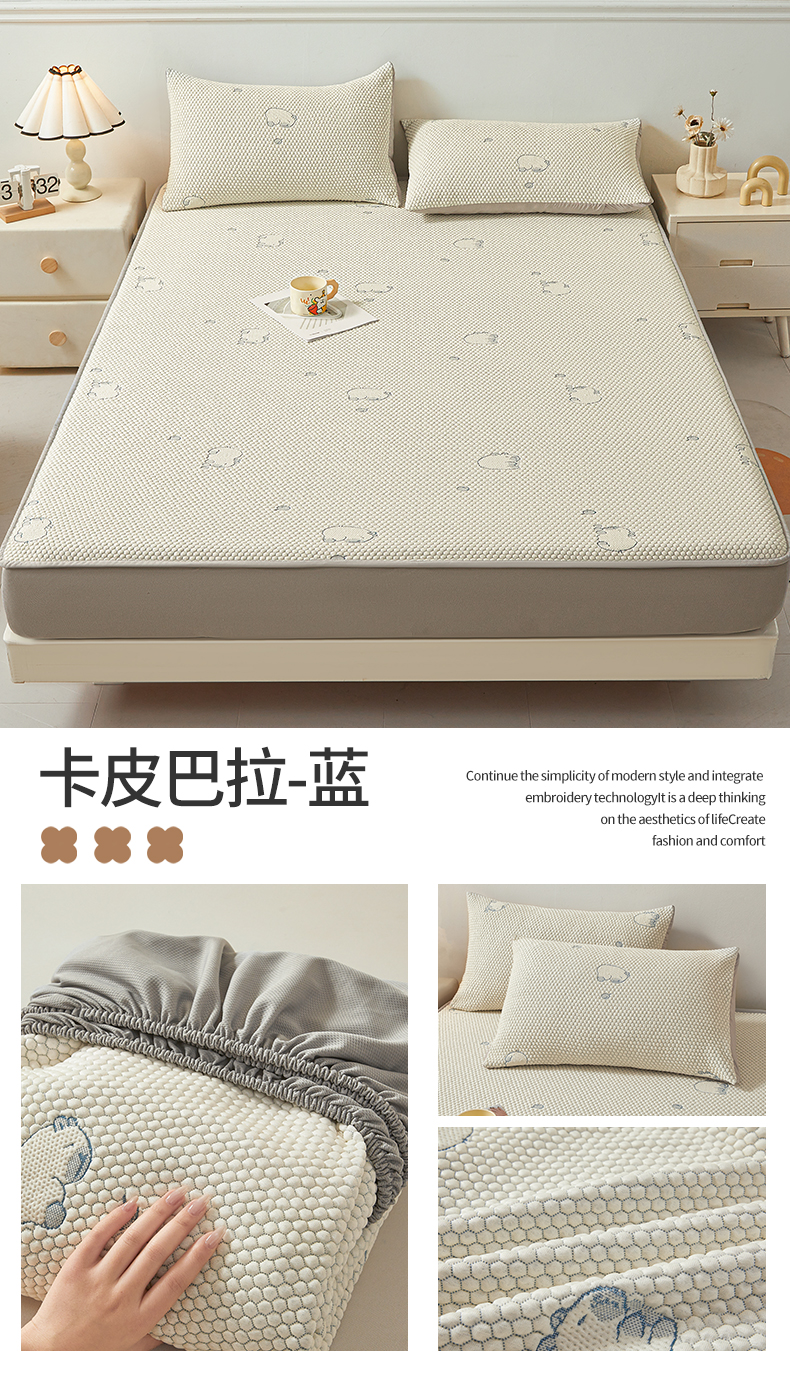 • 91家纺网 家纺一手货源 找家纺 恒爱家纺 2026新款冰豆豆冰丝床笠凉席席子凉席 大耳狗-蓝