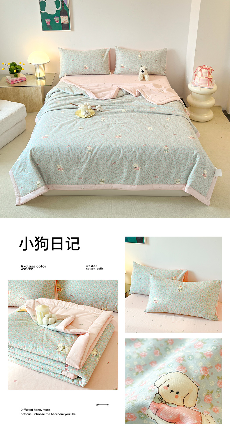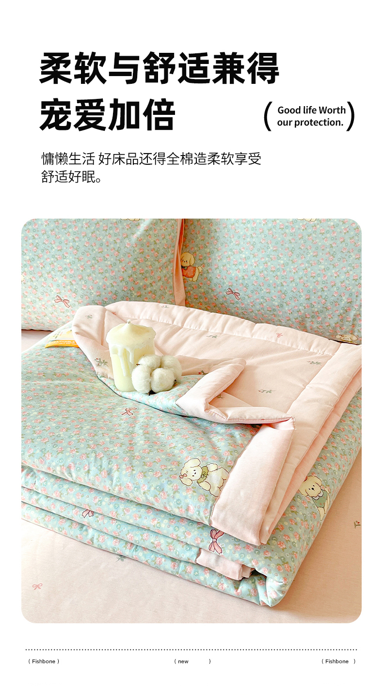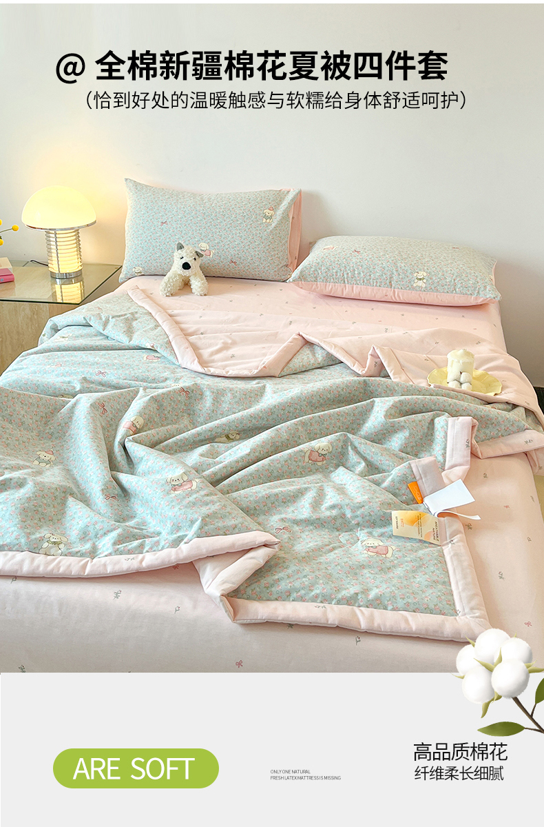 当前位置: 91家纺网 > 商品网购 > 床品套件 > 四件套 > 夏被四件套 > 一加一 2026新款全棉新疆棉花夏被夏凉被空调被四件套-棉语清夏 小狗日记