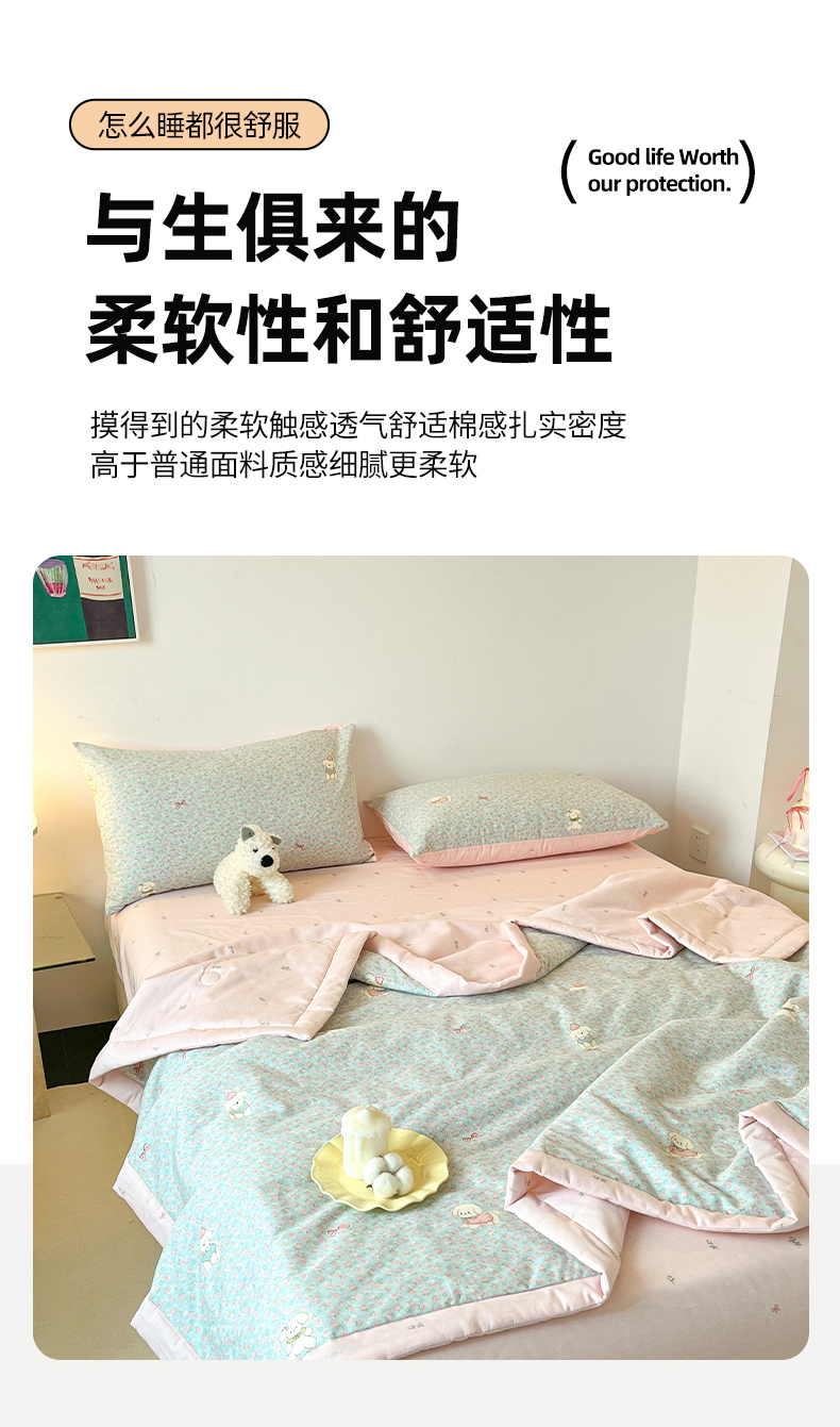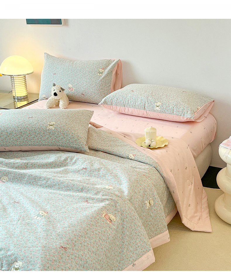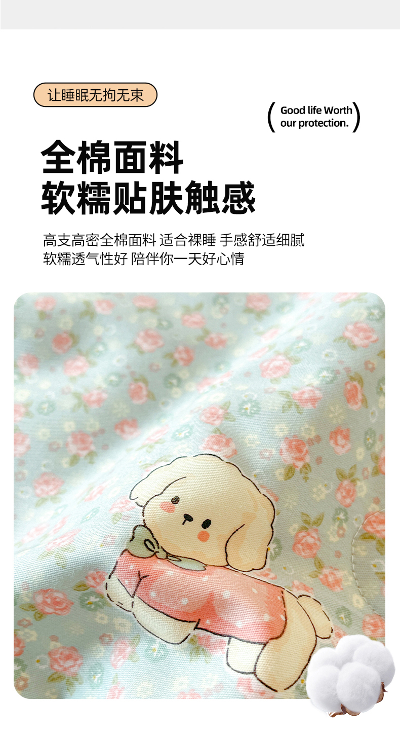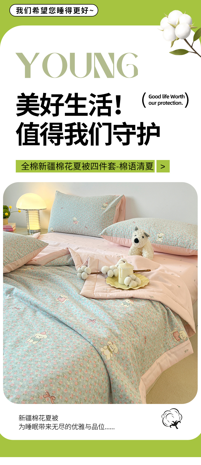 当前位置: 91家纺网 > 商品网购 > 床品套件 > 四件套 > 夏被四件套 > 一加一 2026新款全棉新疆棉花夏被夏凉被空调被四件套-棉语清夏 小狗日记