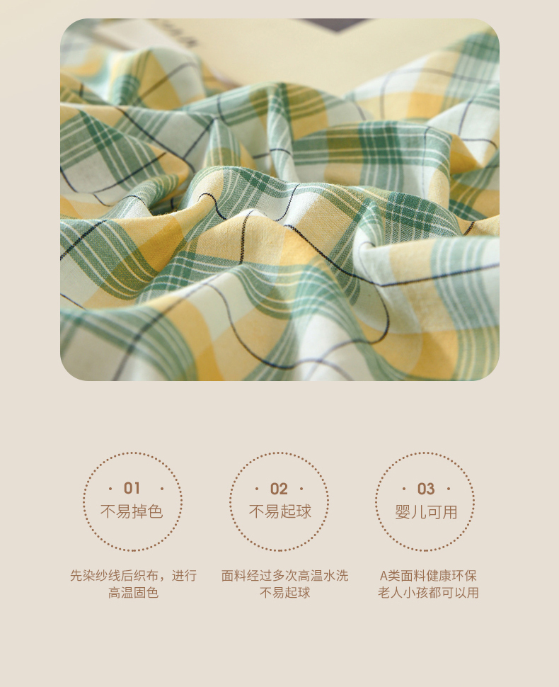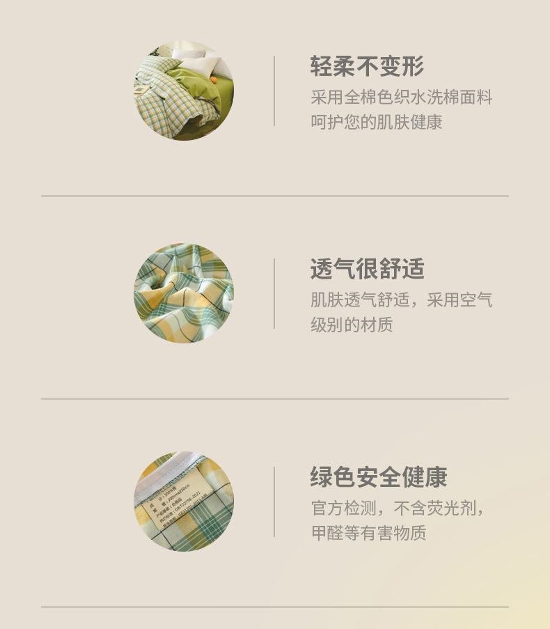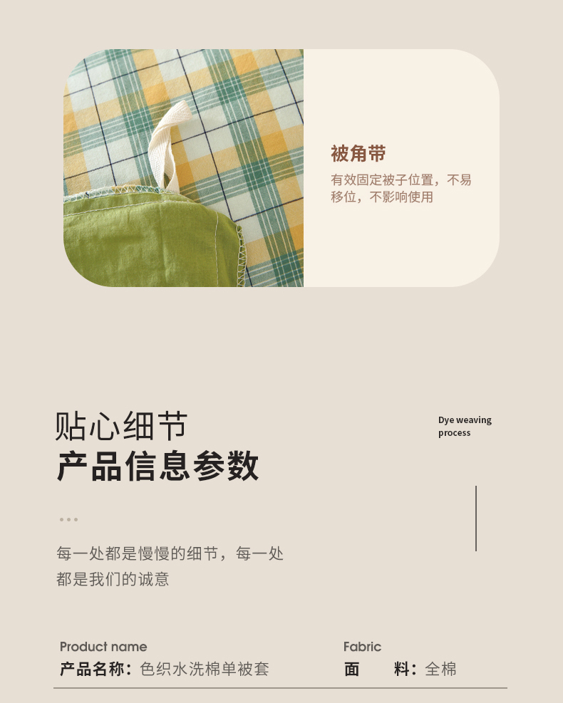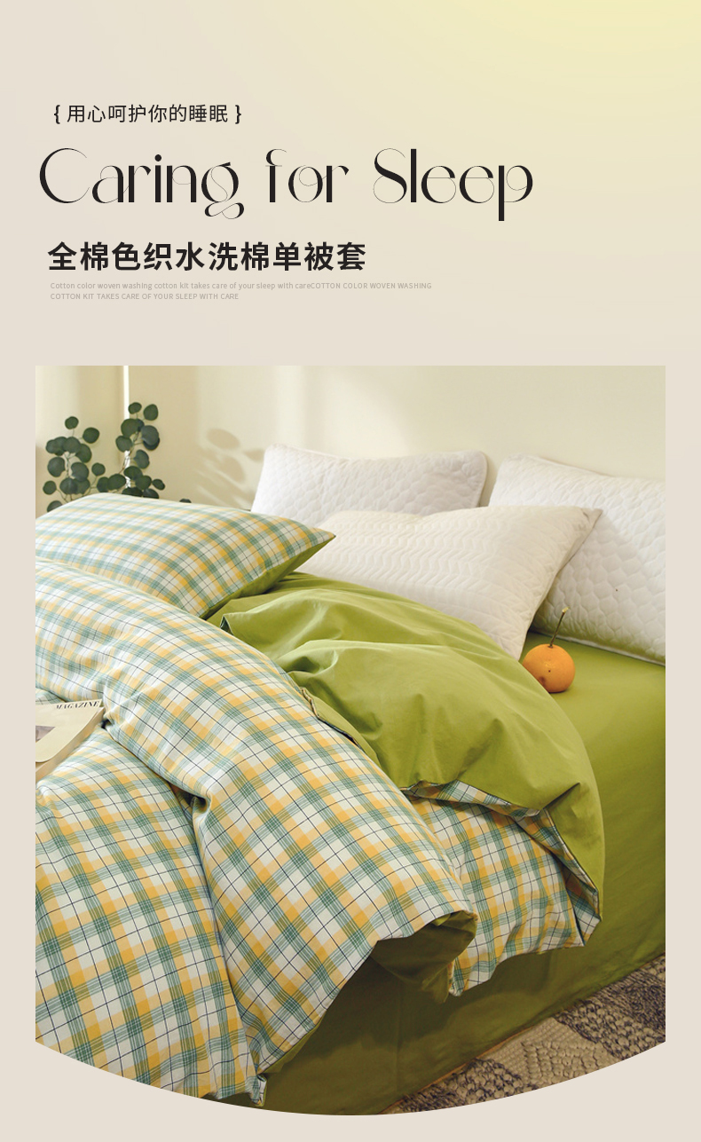 商品名称:春皖家纺 2026新款色织AB版水洗棉三件套四件套单品系列(单被套风格一) 栗木-芒格