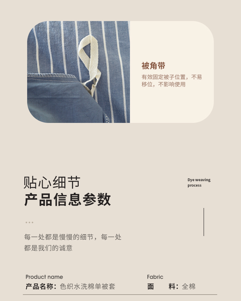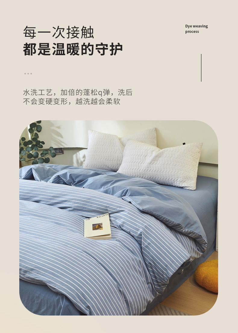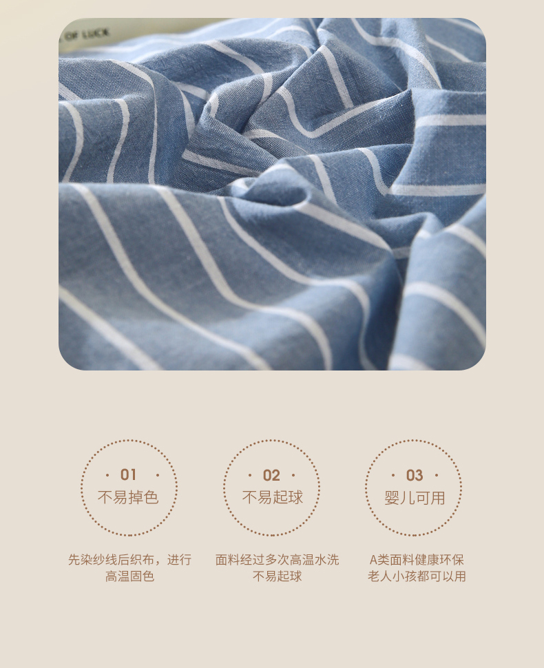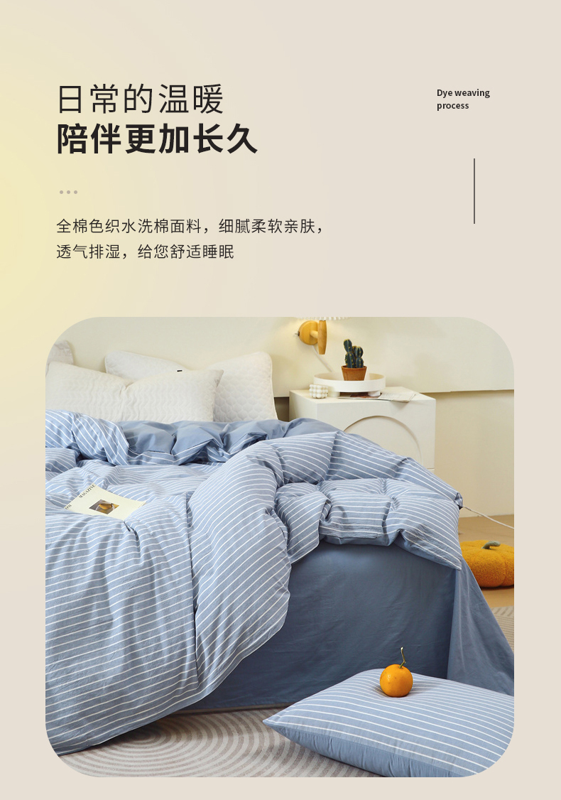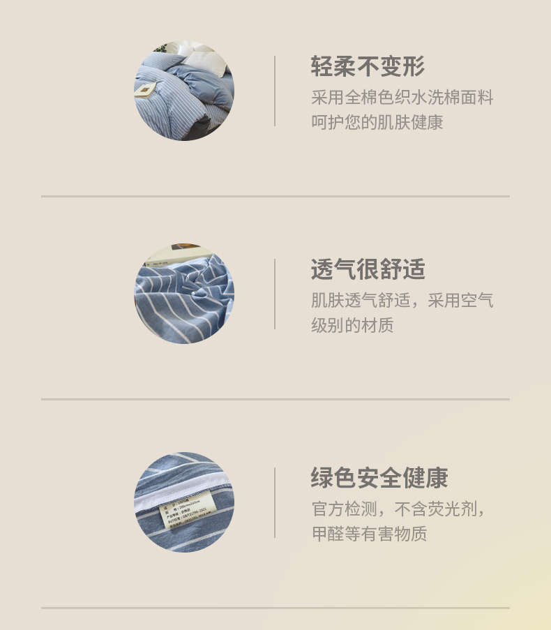 商品名称:春皖家纺 2026新款色织AB版水洗棉三件套四件套单品系列(单被套风格一) 素雅-蓝条
