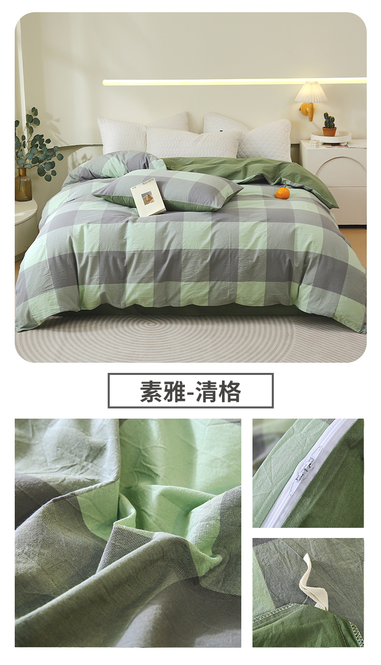 春皖家纺 2026新款色织AB版水洗棉三件套四件套单品系列(单被套风格一) 素雅-蓝条