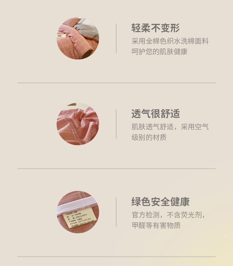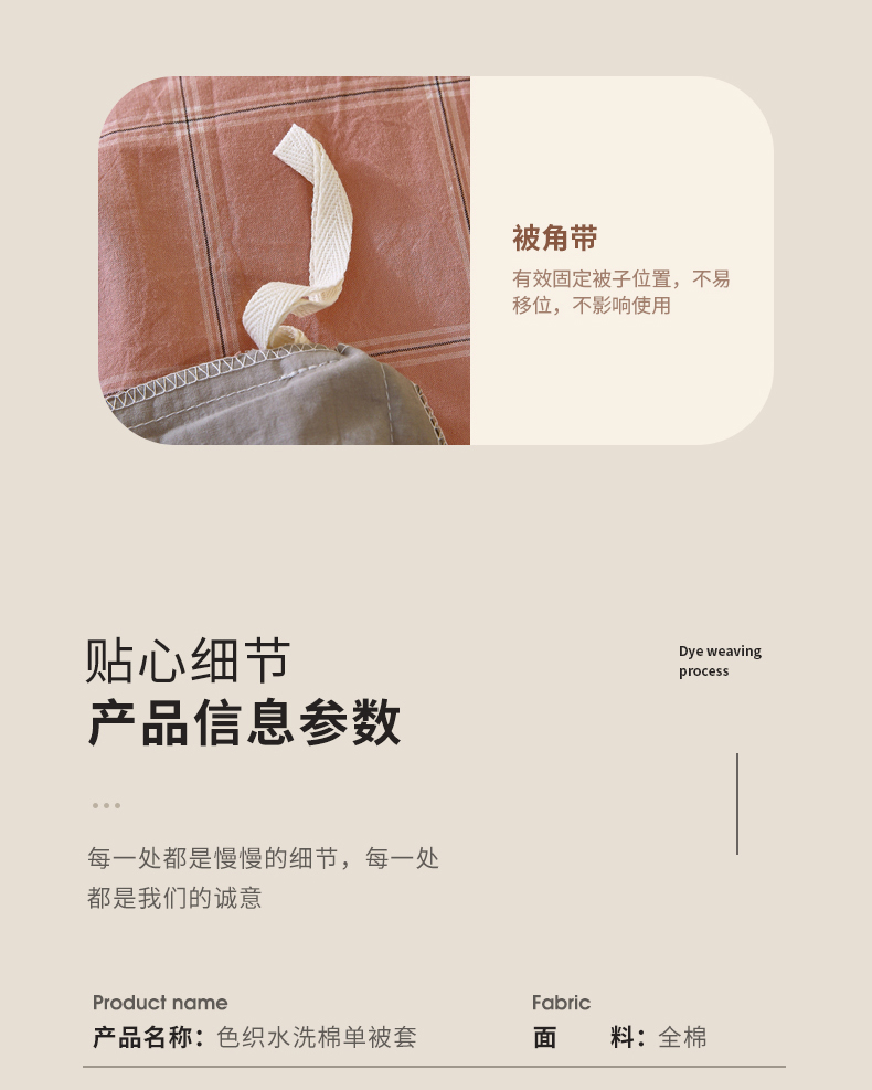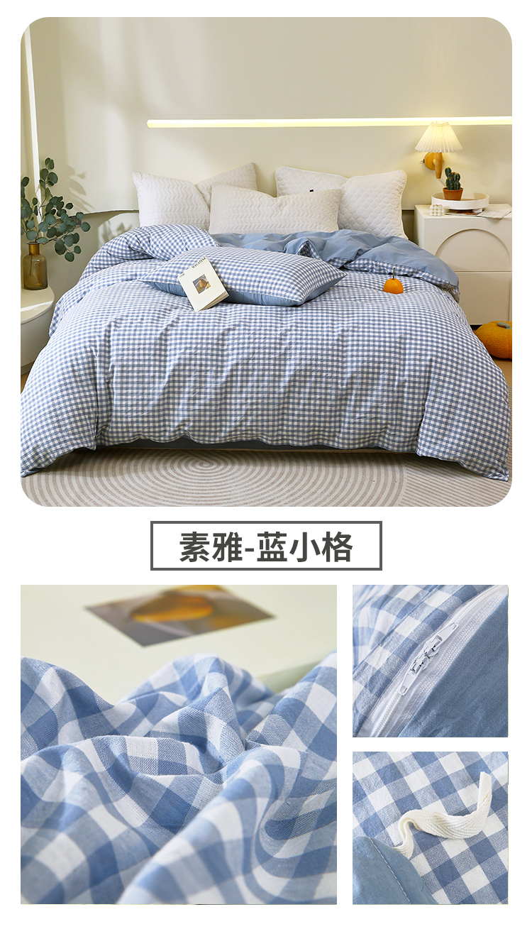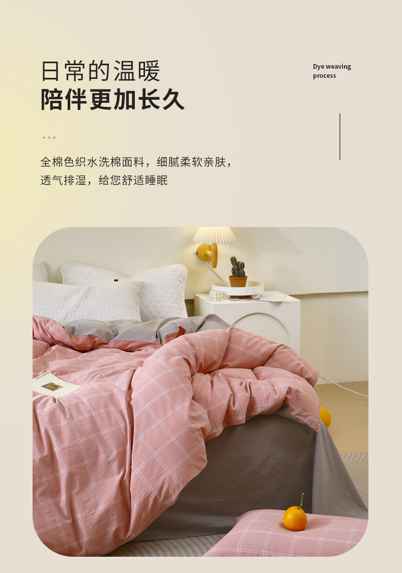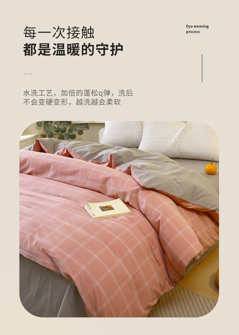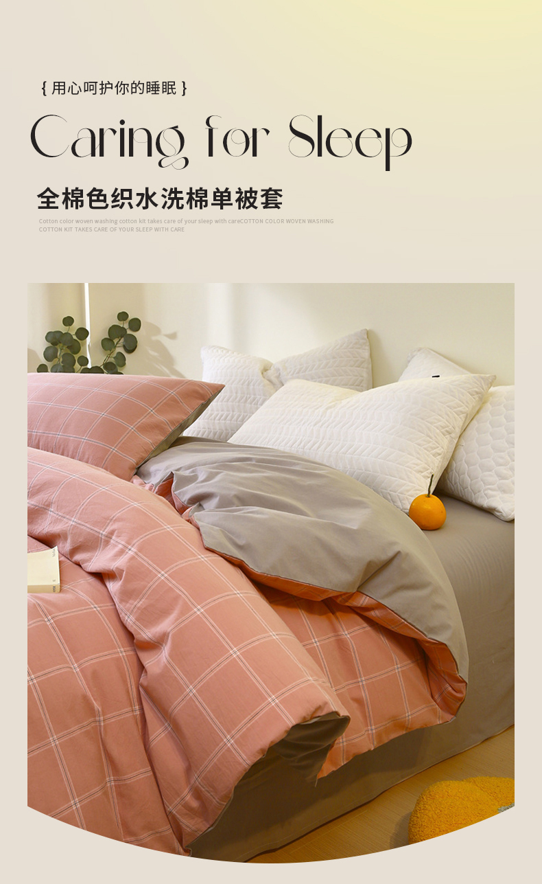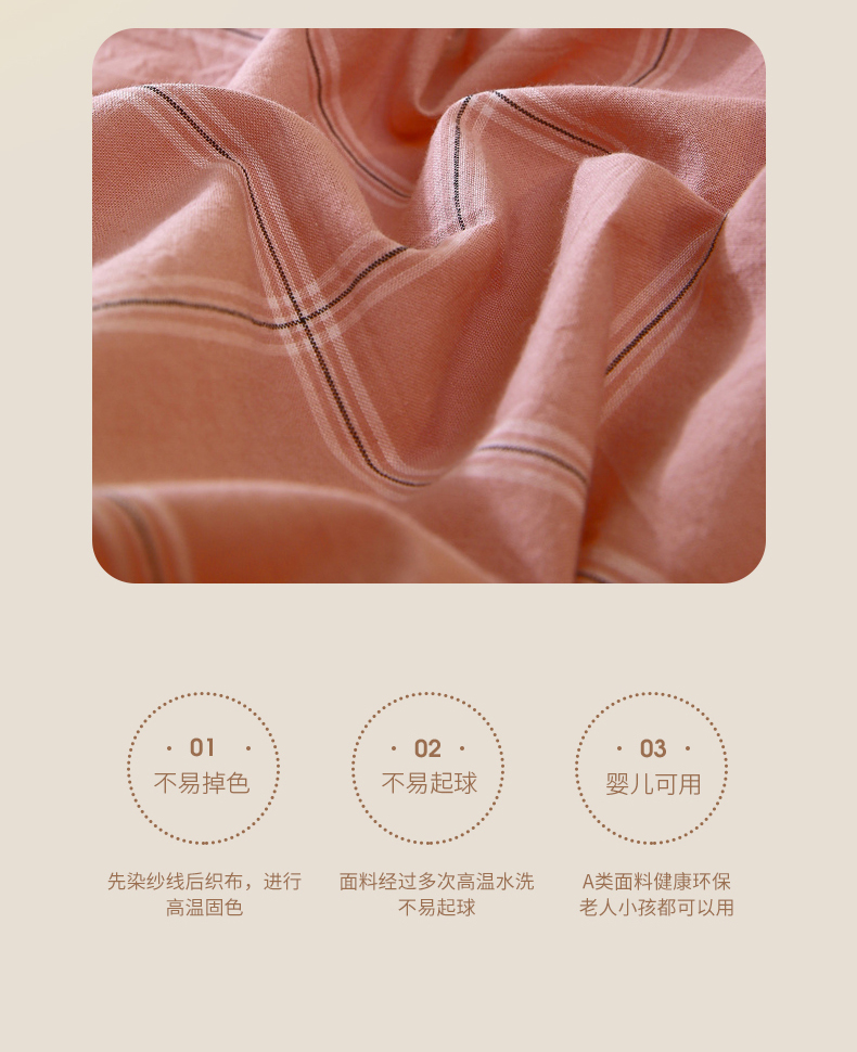 商品名称:春皖家纺 2026新款色织AB版水洗棉三件套四件套单品系列(单被套风格一) 素雅-韵粉