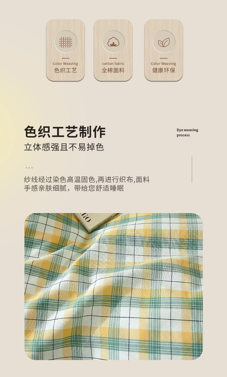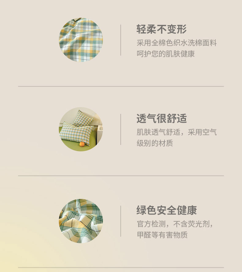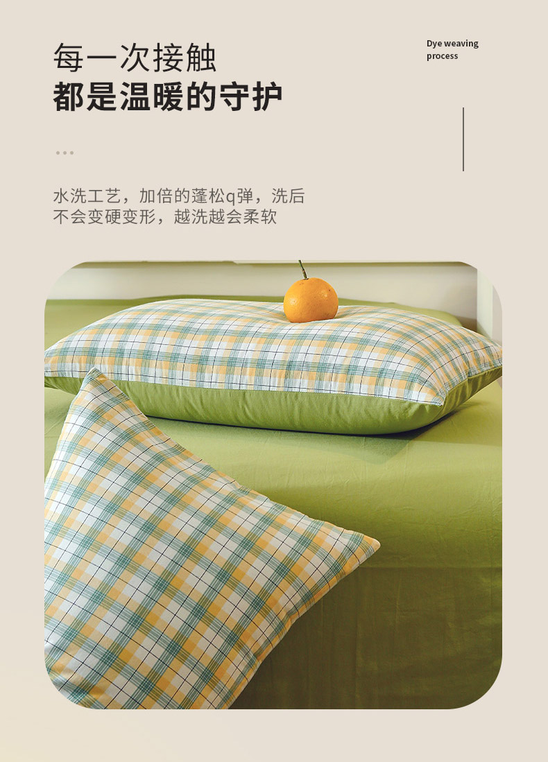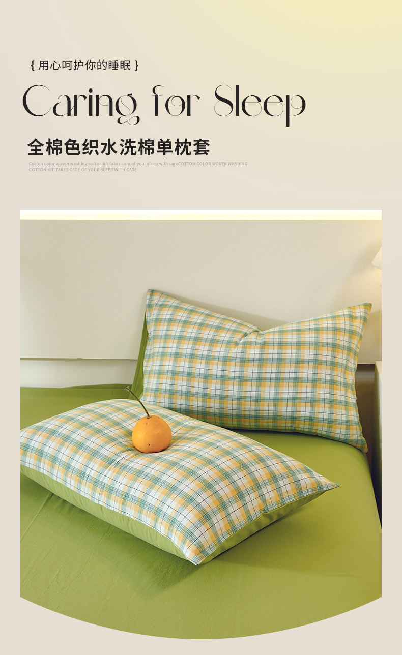 商品名称:春皖家纺 2026新款色织AB版水洗棉三件套四件套单品系列(单枕套风格一) 栗木-芒格