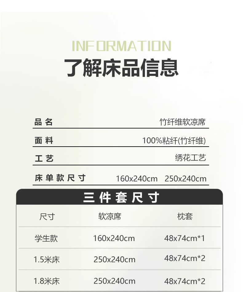 • 91家纺网 家纺一手货源 找家纺 春皖家纺 2026新款A类竹纤维绣花床单凉席系列-风格2 淡雅绿