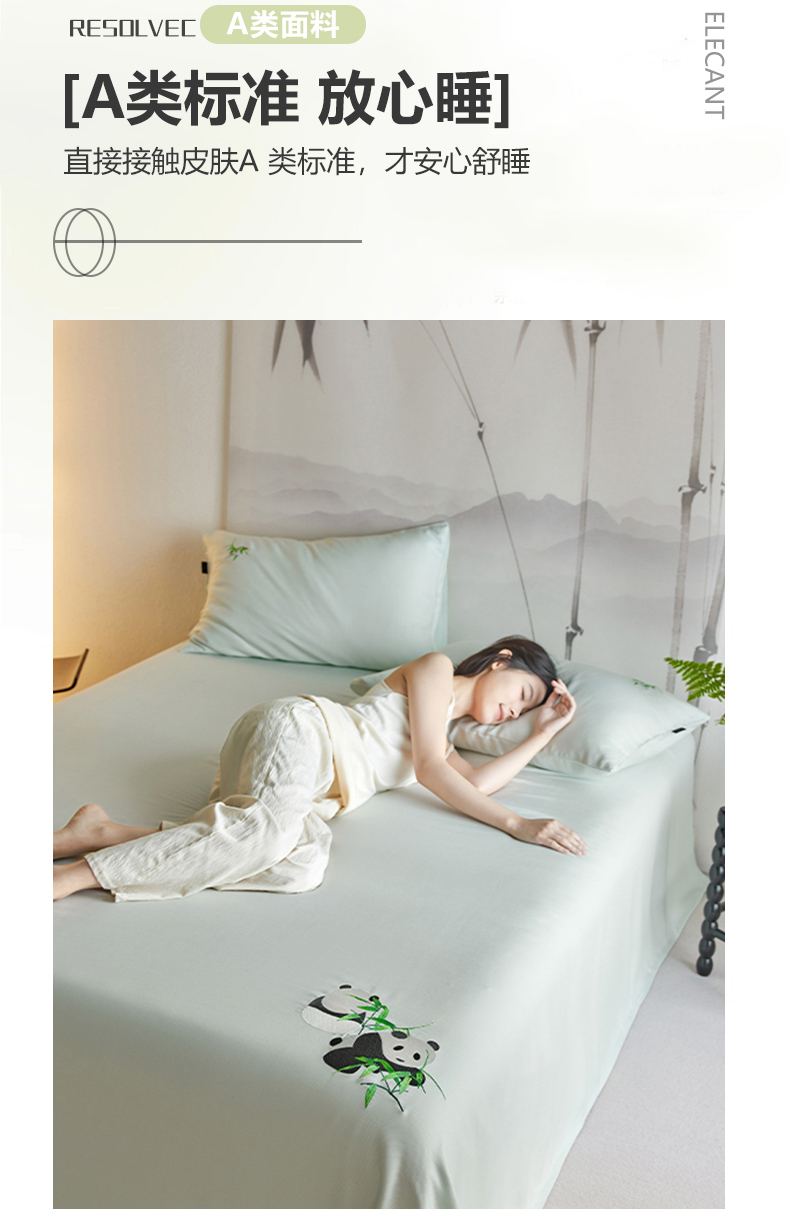 春皖家纺 2026新款A类竹纤维绣花床单凉席系列-风格2 淡雅绿