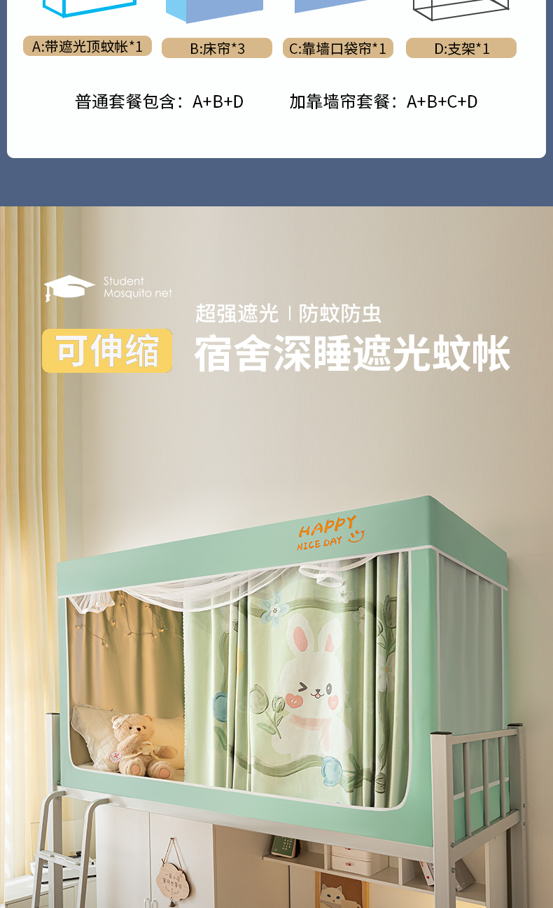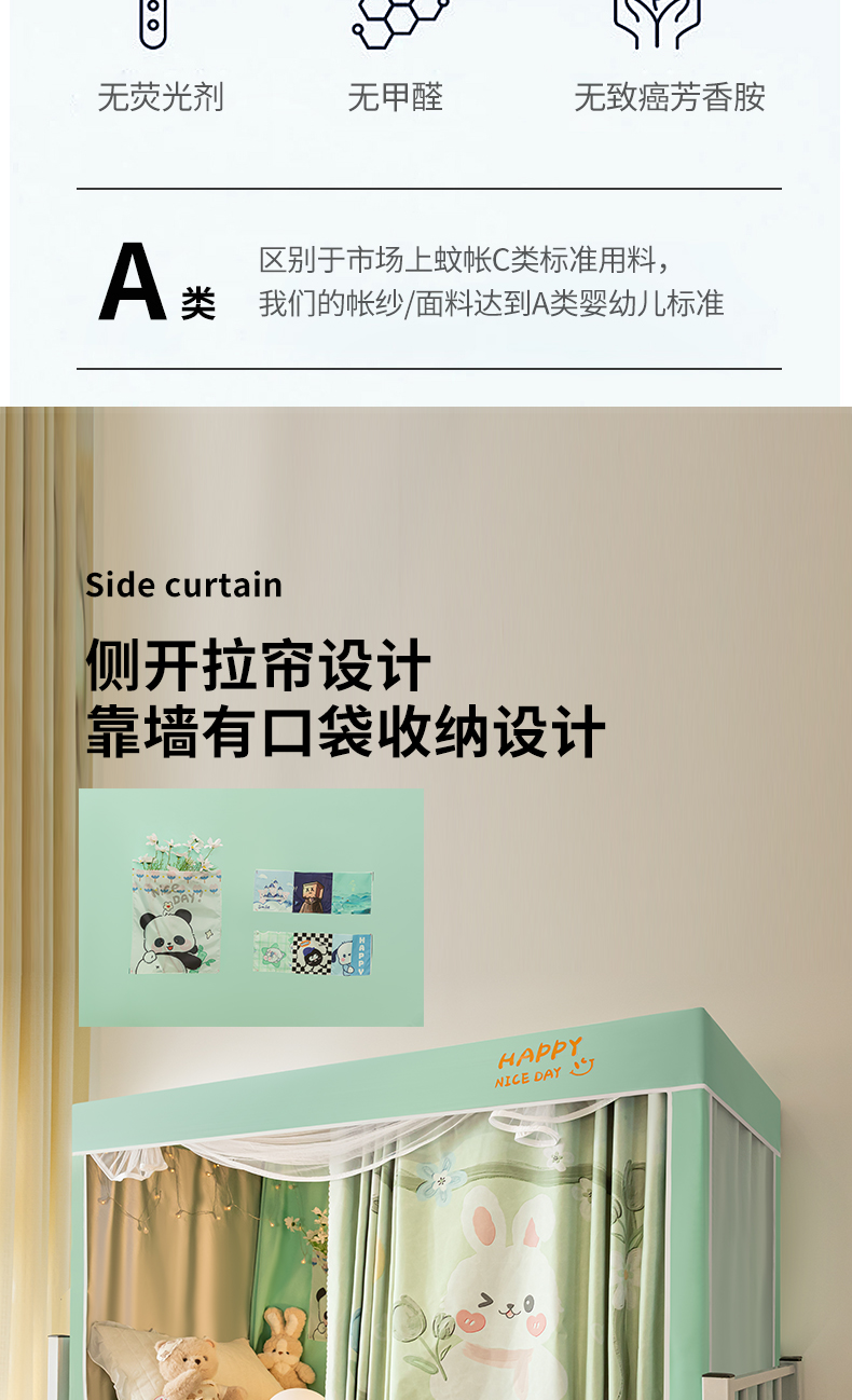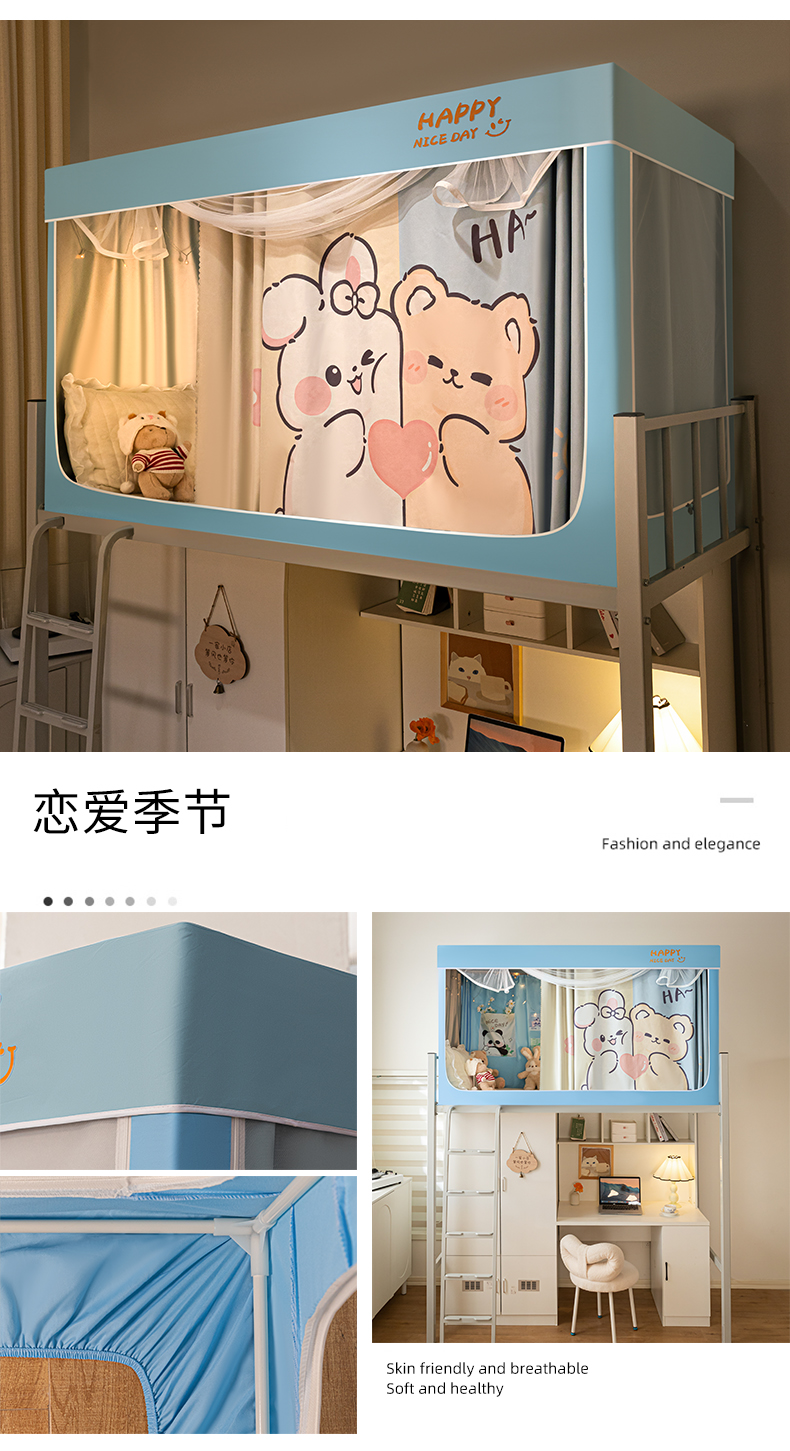 (总)壹和 2026新款纯物理无涂层无覆膜款遮光防蚊学生坐床蚊帐(场景二),苍穹蓝,大象灰,靛蓝,靛蓝拼米,优雅米