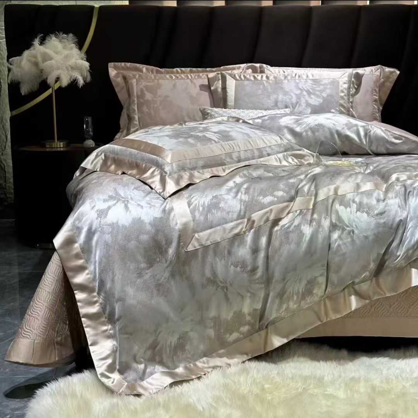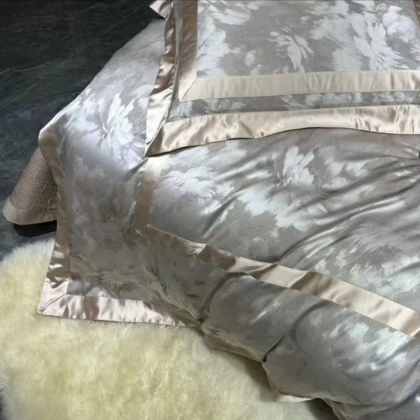 (总)edra 2026新款真丝天丝轻奢提花床盖款四件套-繁花,繁花-深灰,繁花-银灰