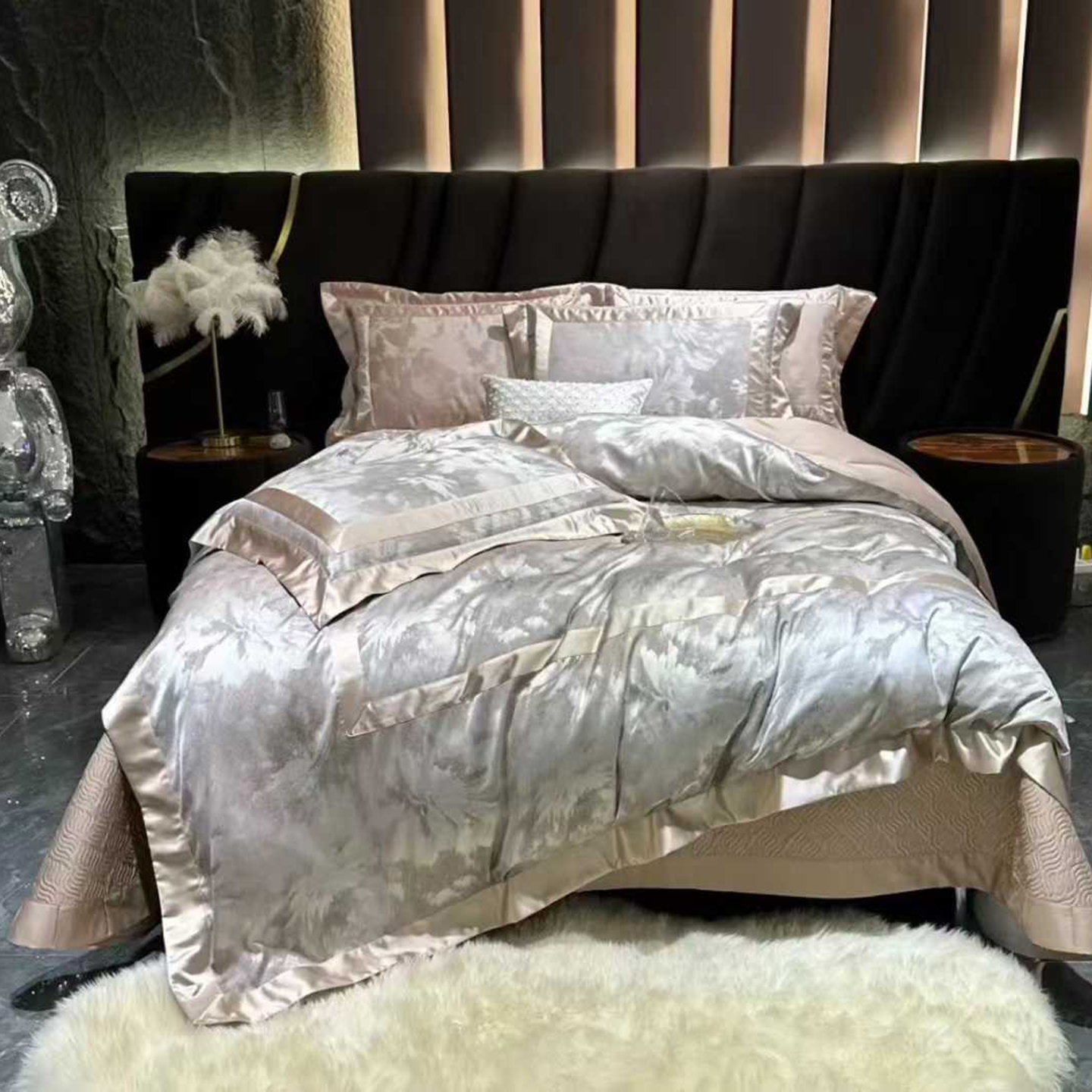 (总)edra 2026新款真丝天丝轻奢提花床盖款四件套-拉斐尔,香槟白,粉,银灰,金咖,蓝