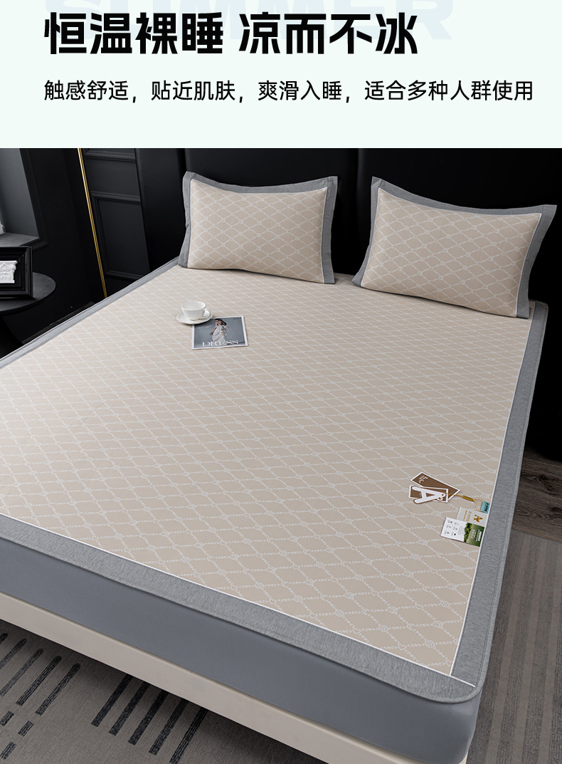 (总)小牛席业 2026春夏新款轻奢半定位凉感冰丝席凉席席子系列床笠款,轻奢半定位-粉色 床笠款,轻奢半定位-灰色 床笠款,轻奢半定位-蓝色 床笠款,轻奢半定位-抹茶 床笠款,轻奢半定位-香槟 床笠款