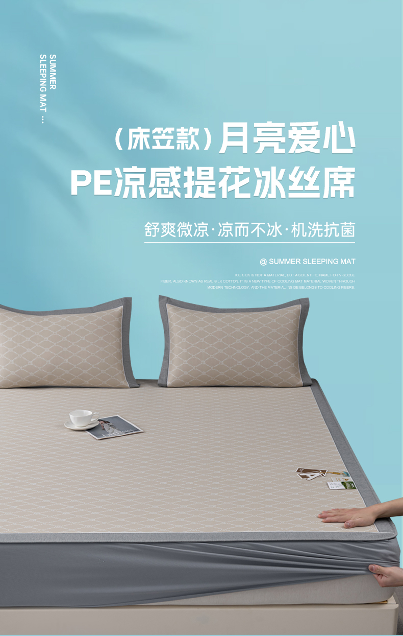 商品名称:(总)小牛席业 2026新款轻奢风-月亮爱心PE凉感冰丝席系列(床笠款)凉席藤席冰藤席冰丝席竹席乳胶席凉感豆豆席