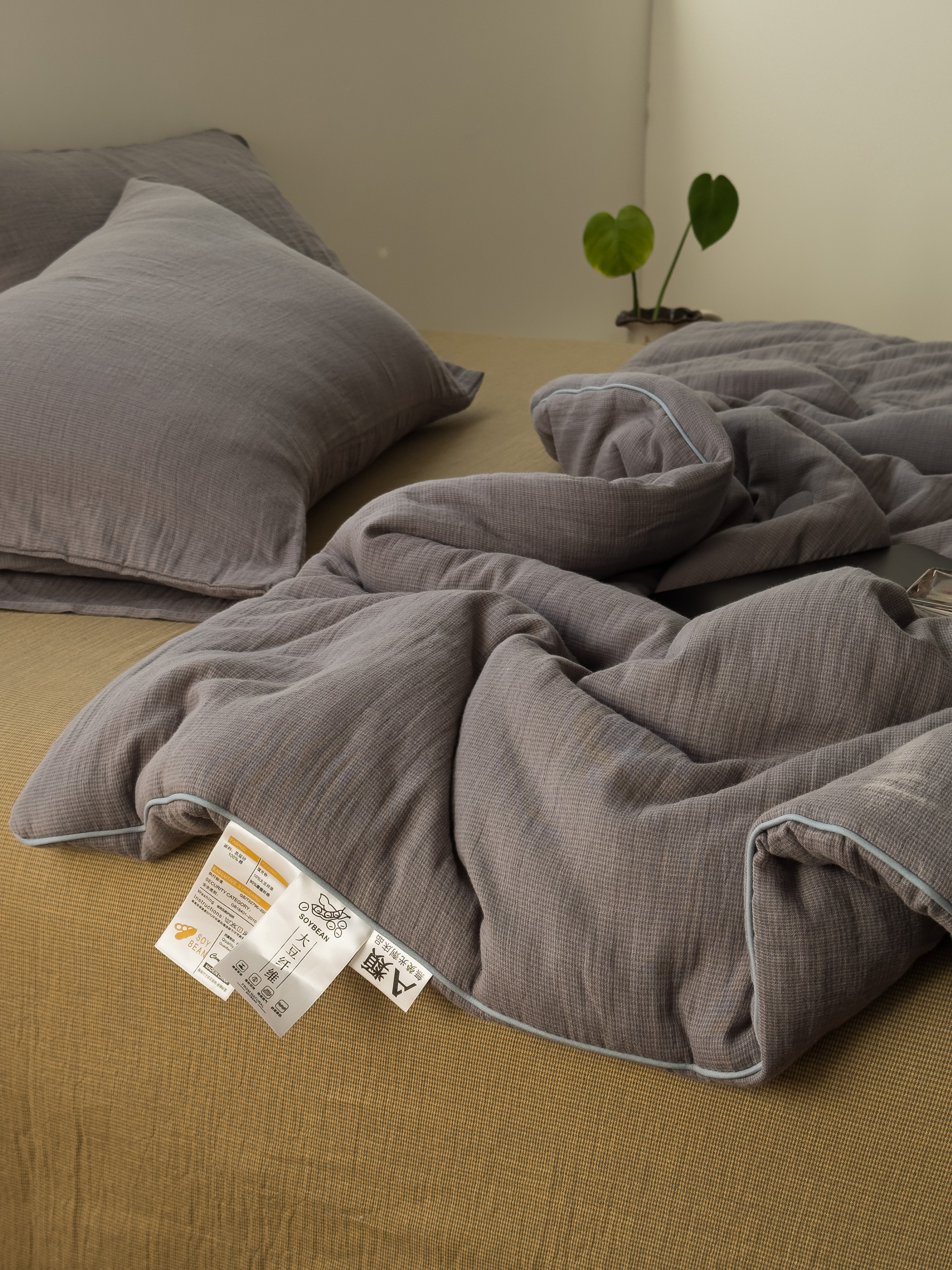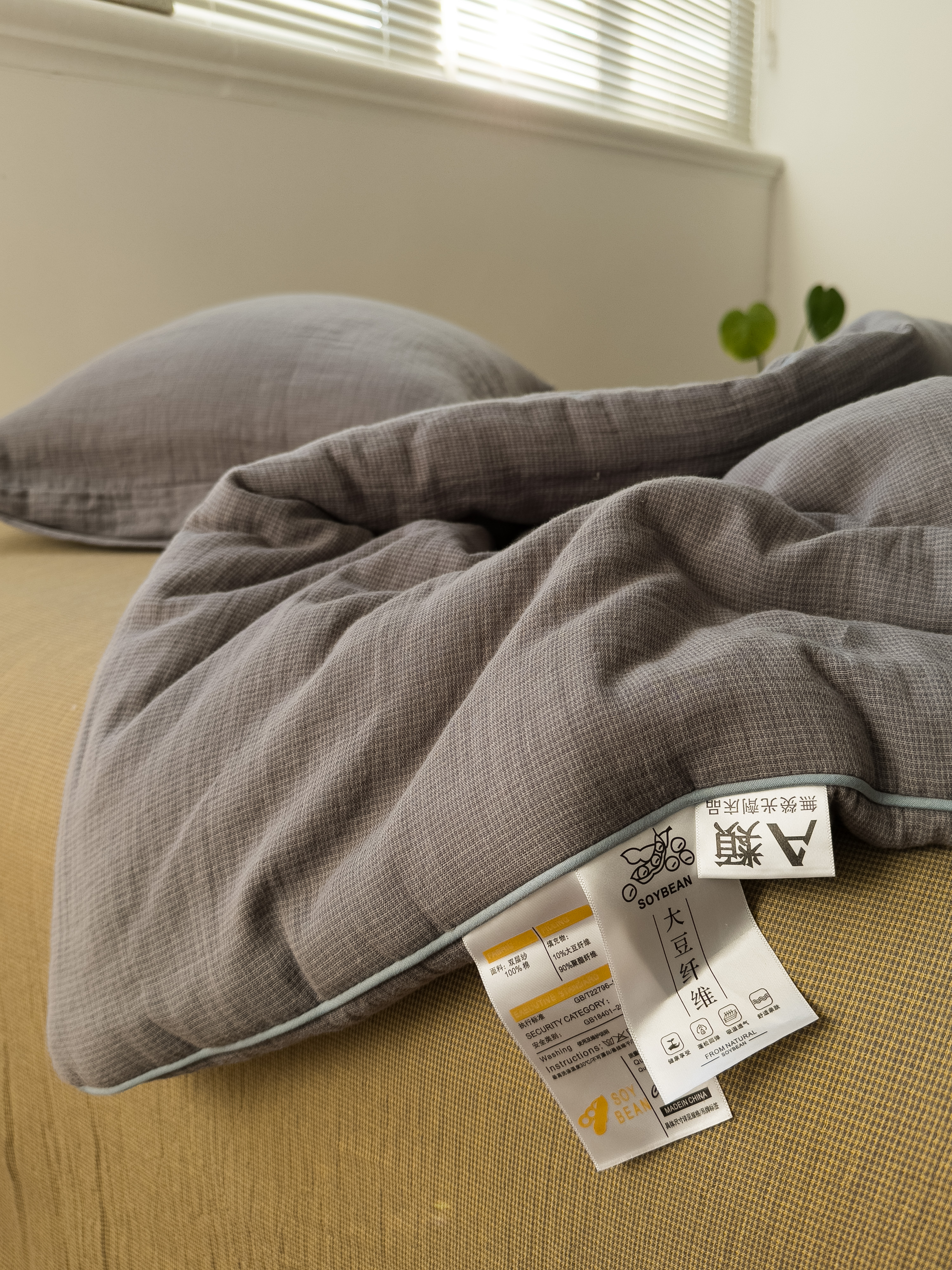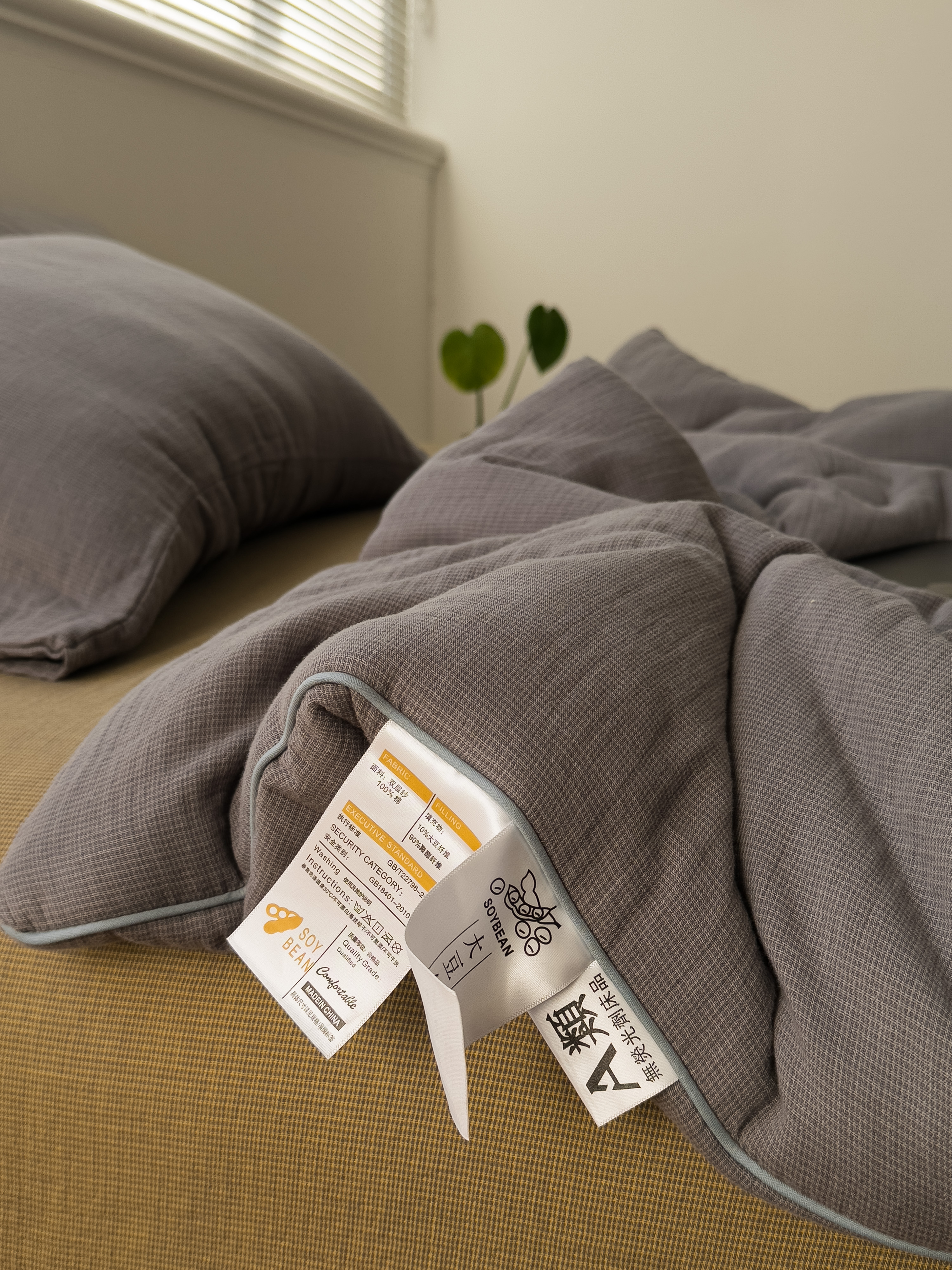 棉小二 2026新款全棉大豆纤维冬被春秋被 千鸟格 灰