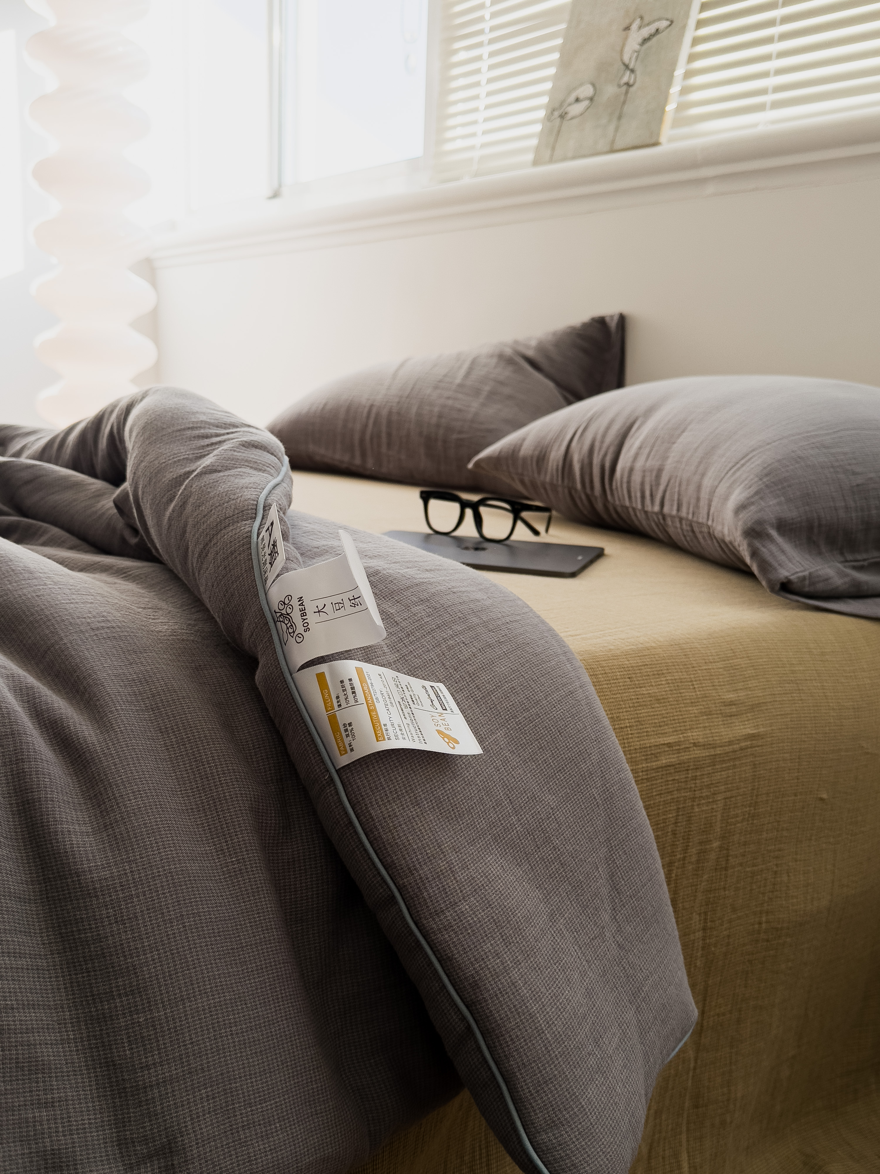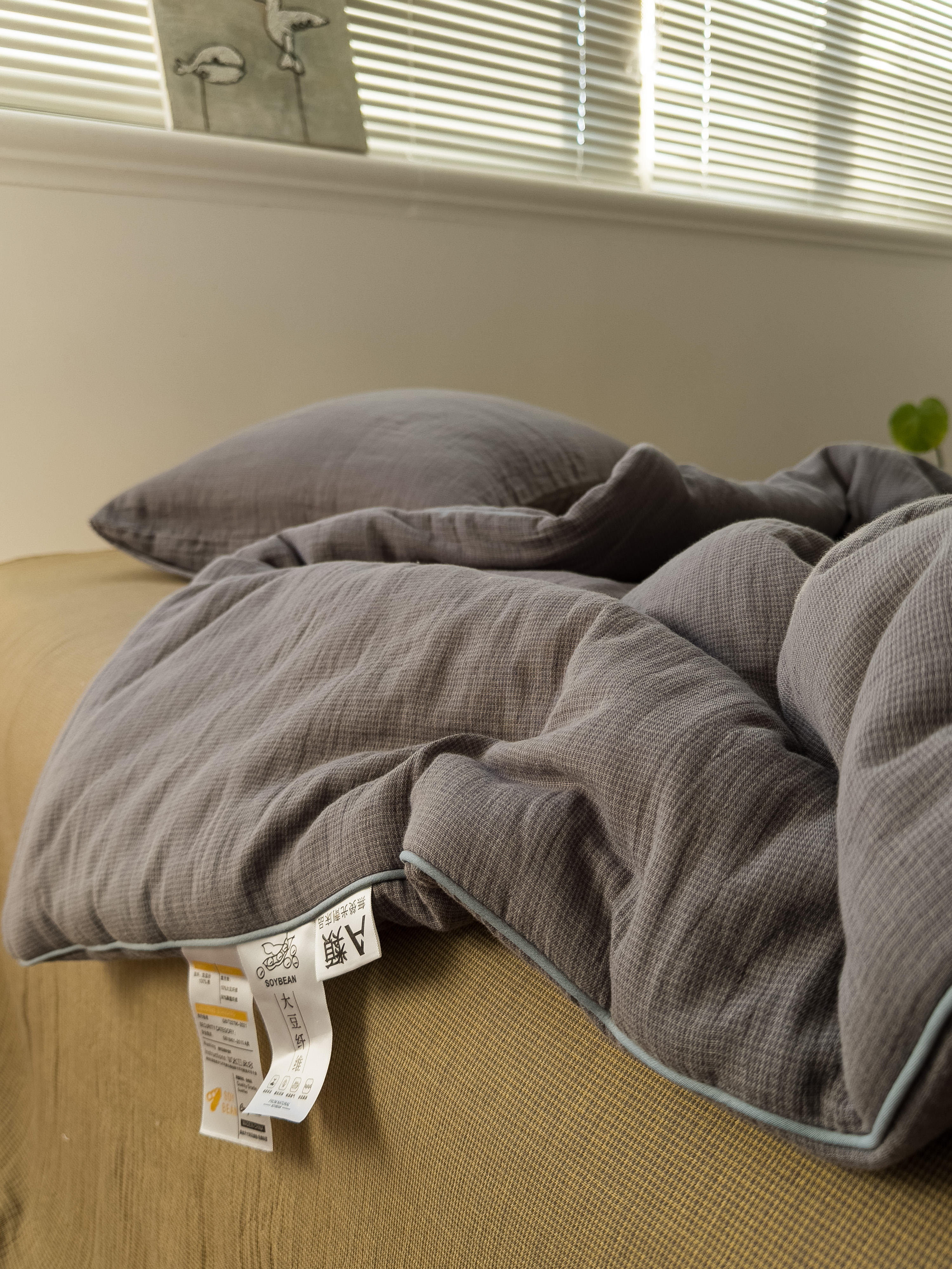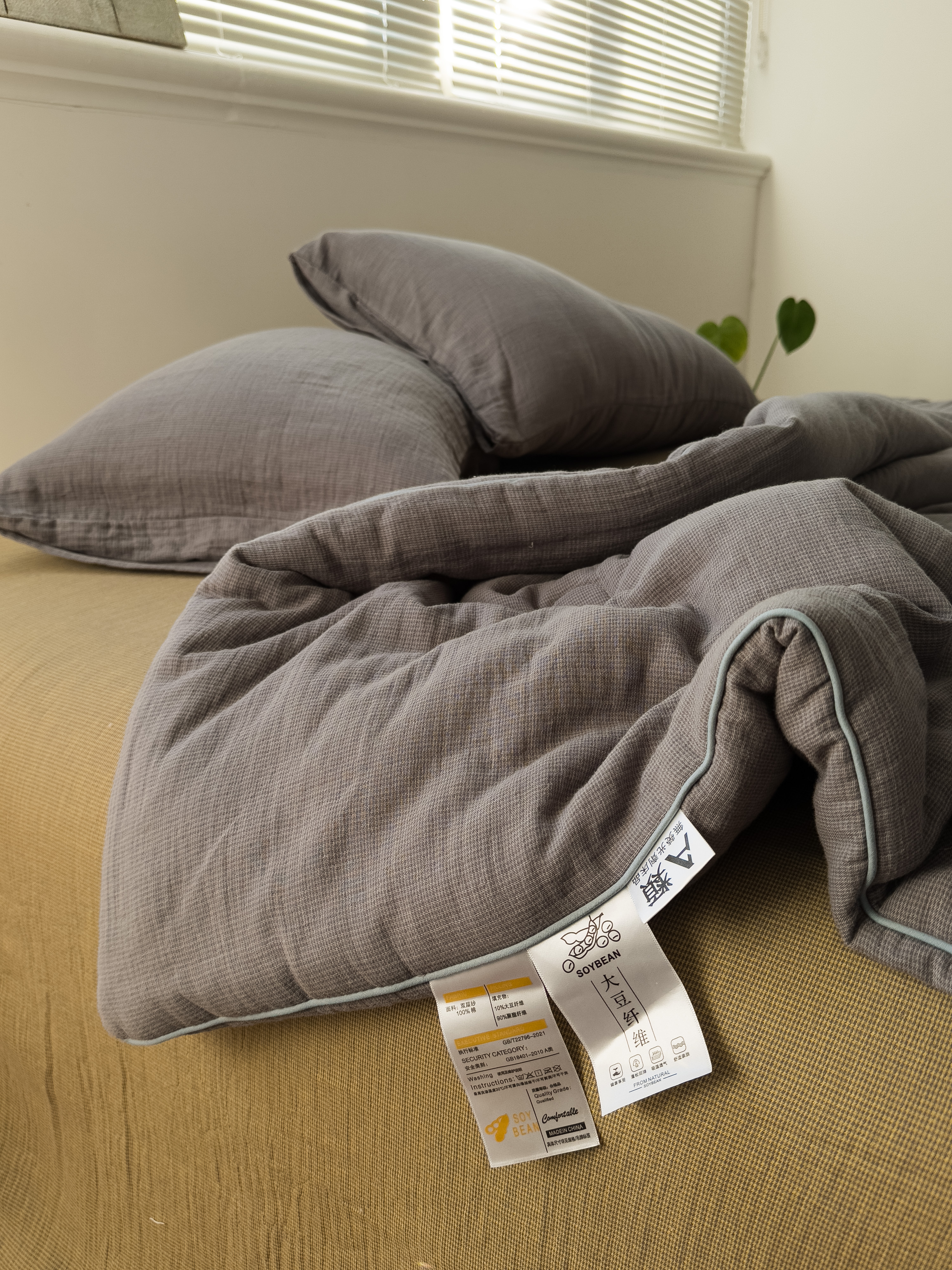 棉小二 2026新款全棉大豆纤维冬被春秋被 千鸟格 灰