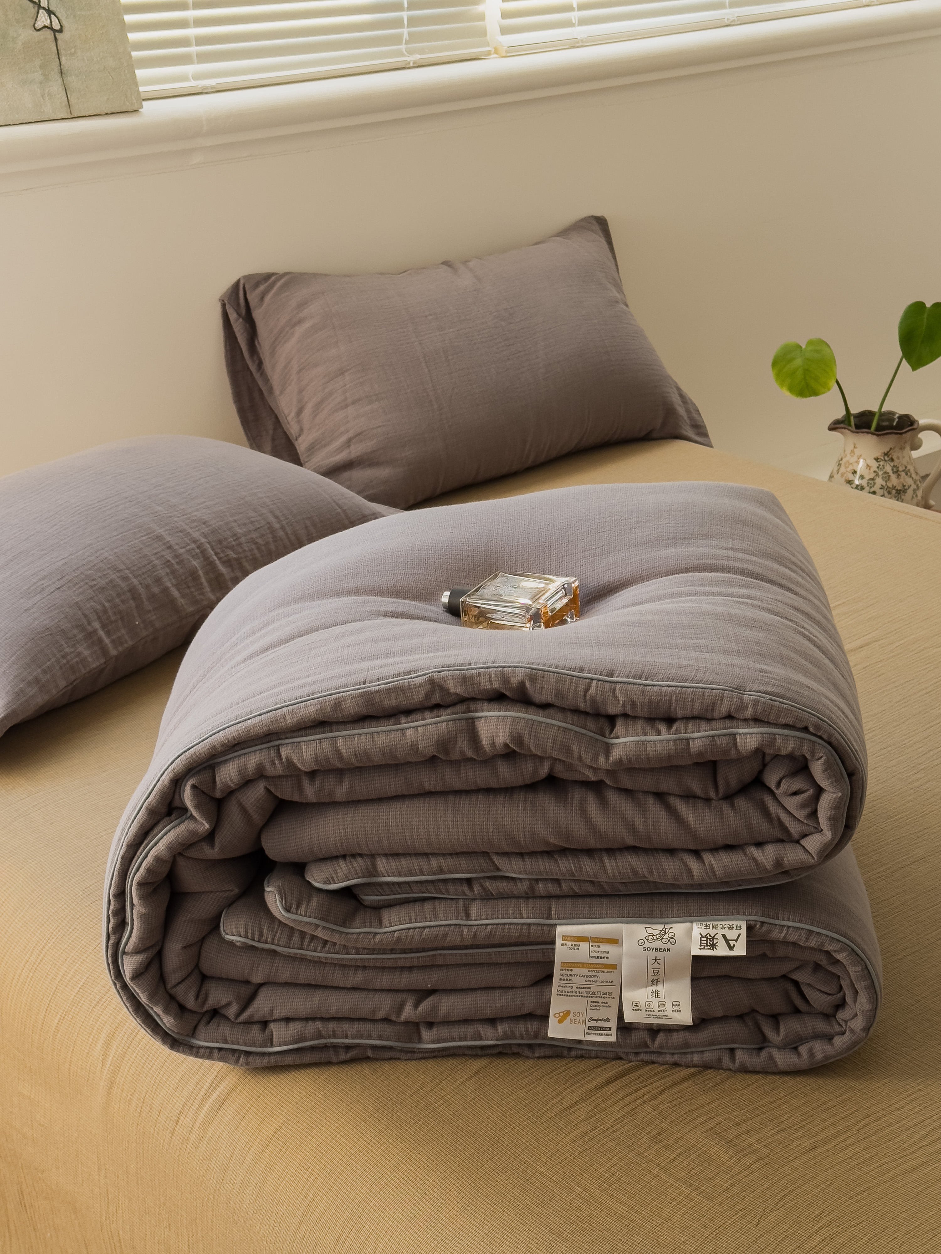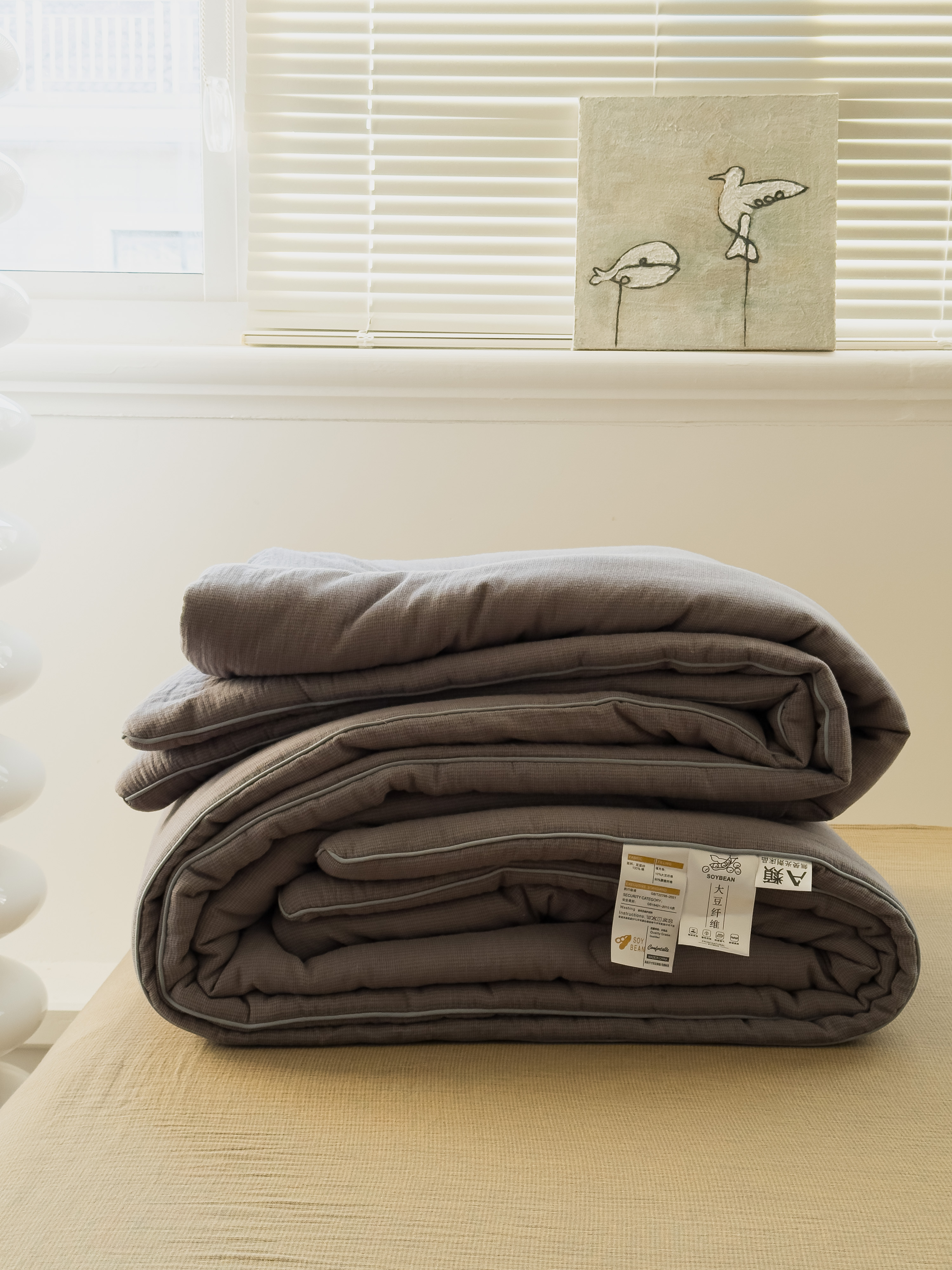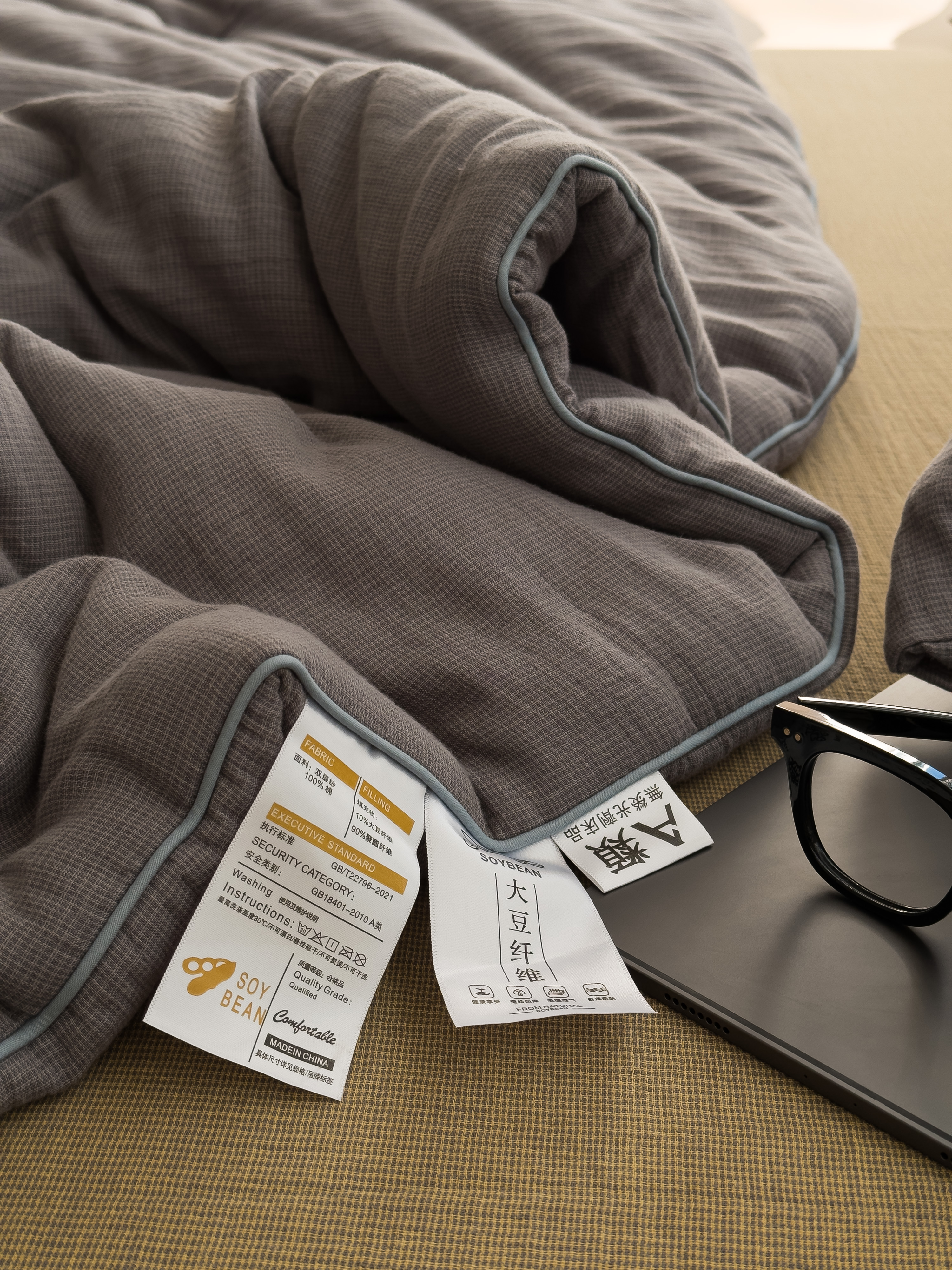 商品名称:棉小二 2026新款全棉大豆纤维冬被春秋被 千鸟格 灰