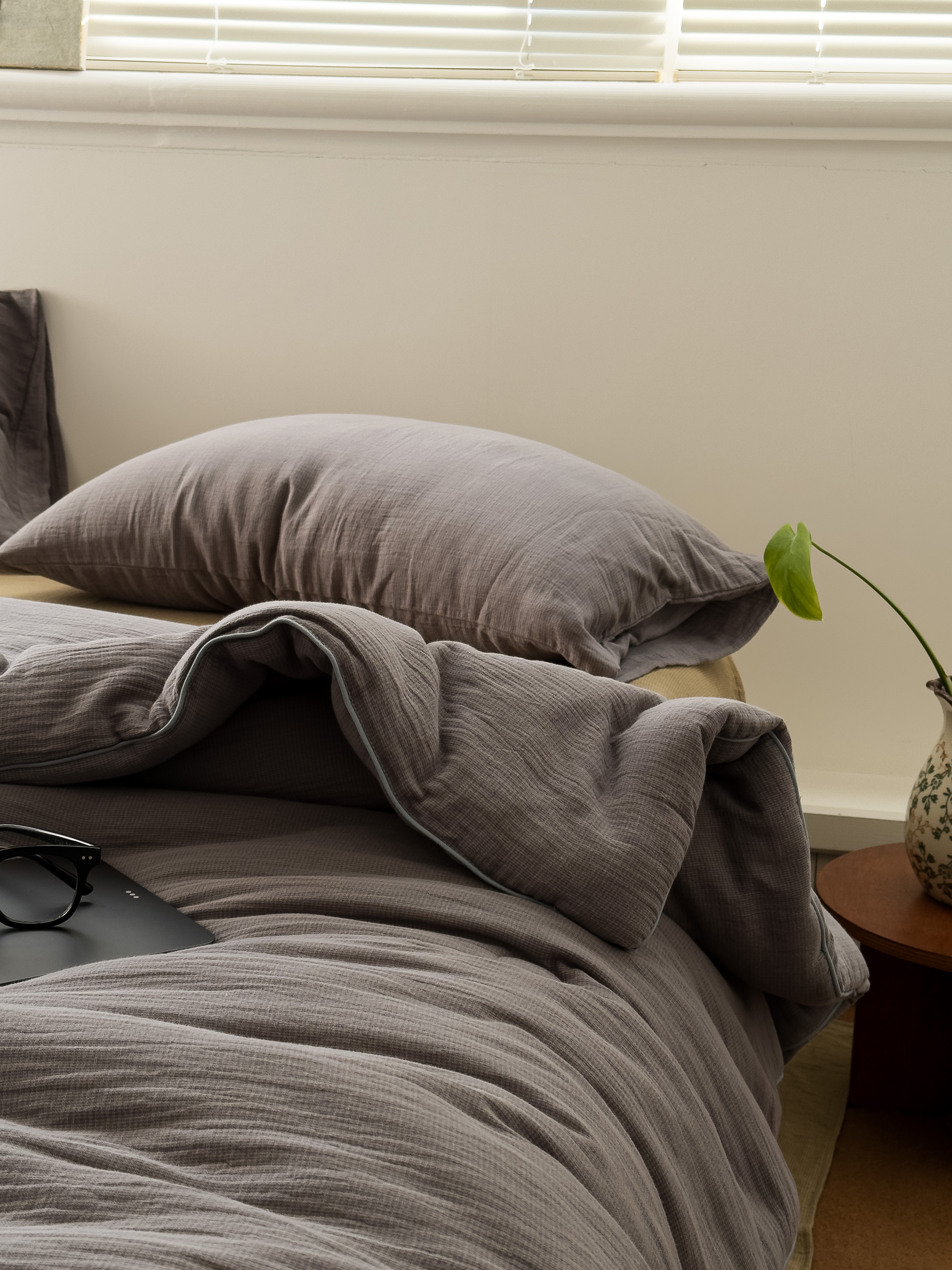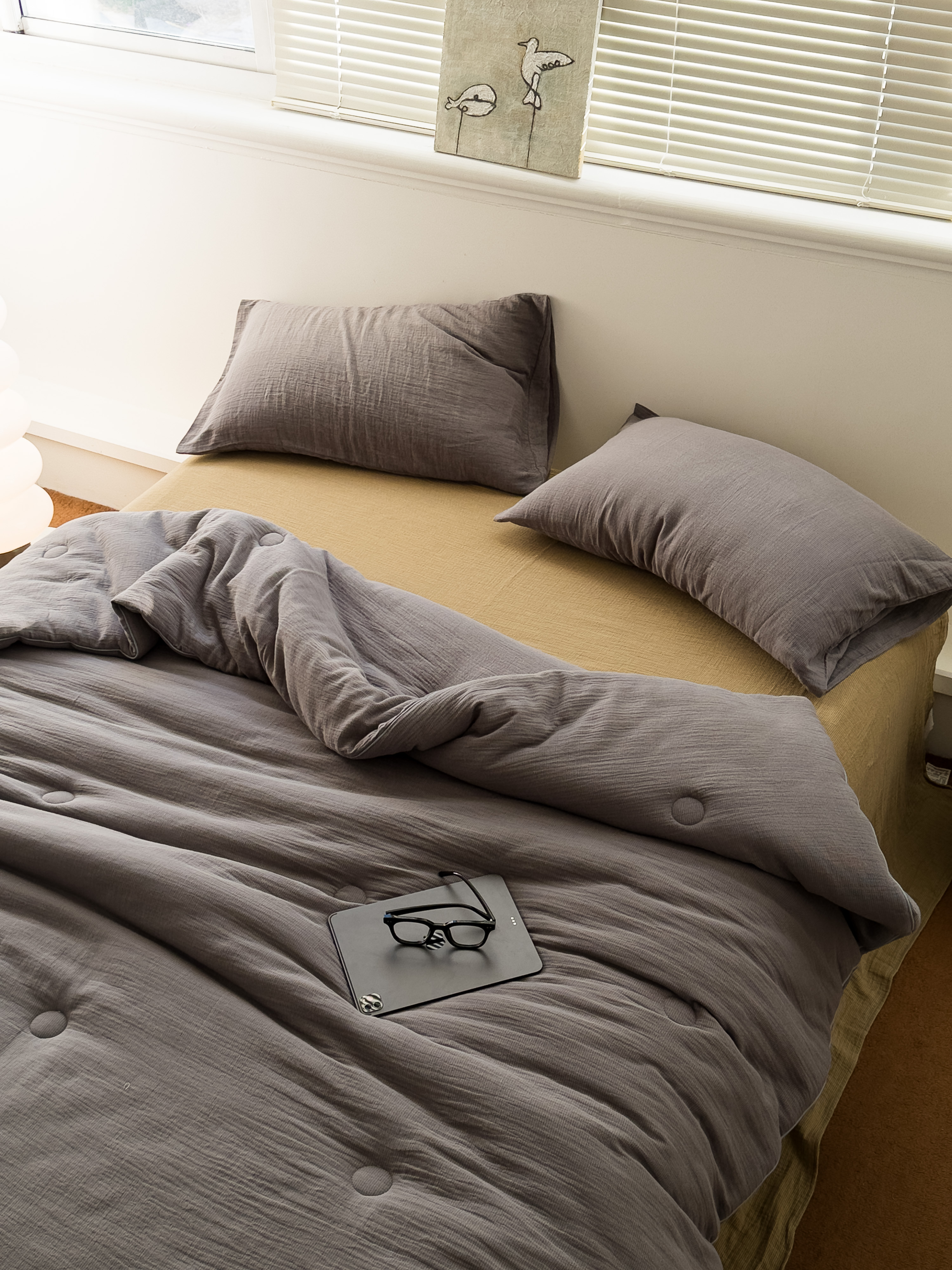 (总)棉小二 2025新款全棉色织条纹双层纱四件套,条纹白,条纹咖,条纹驼