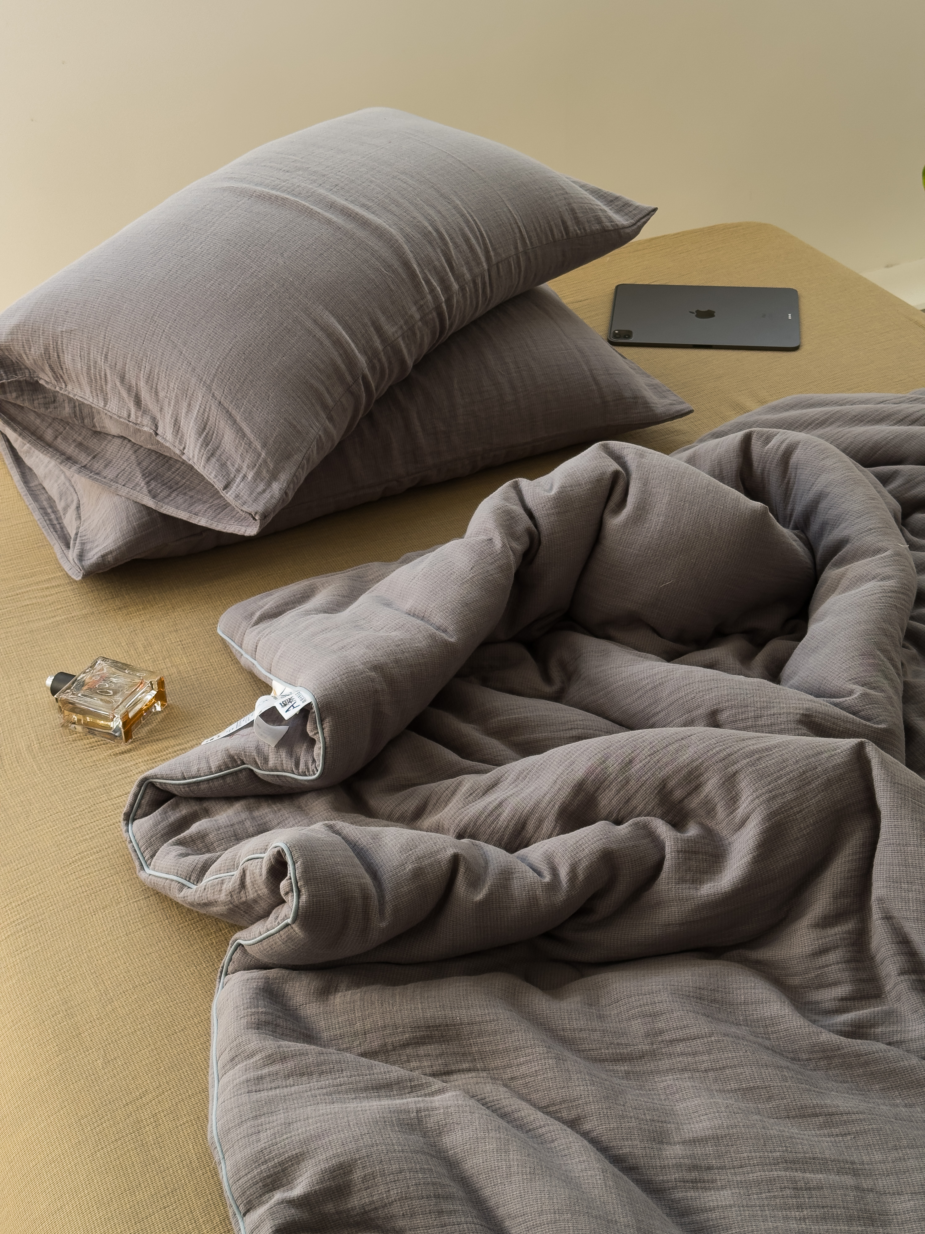 (总)棉小二 2025新款全棉色织水洗棉花边夏被四件套,麦香-兰,麦香-粉,麦香-绿