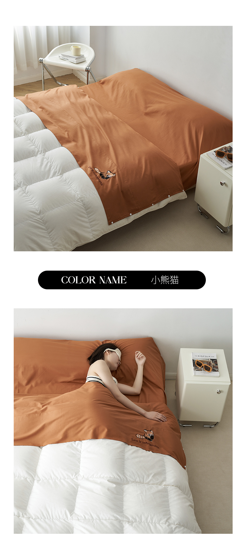商品名称:沐珩家纺 2026新款糯感全棉定制正版卡通绣花大雁纹旅行酒店隔脏睡袋 熊猫果赖
