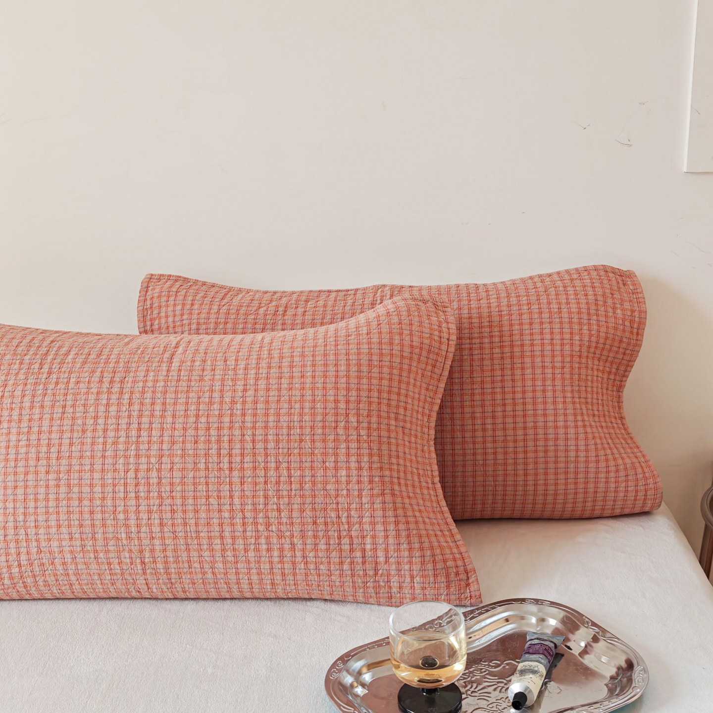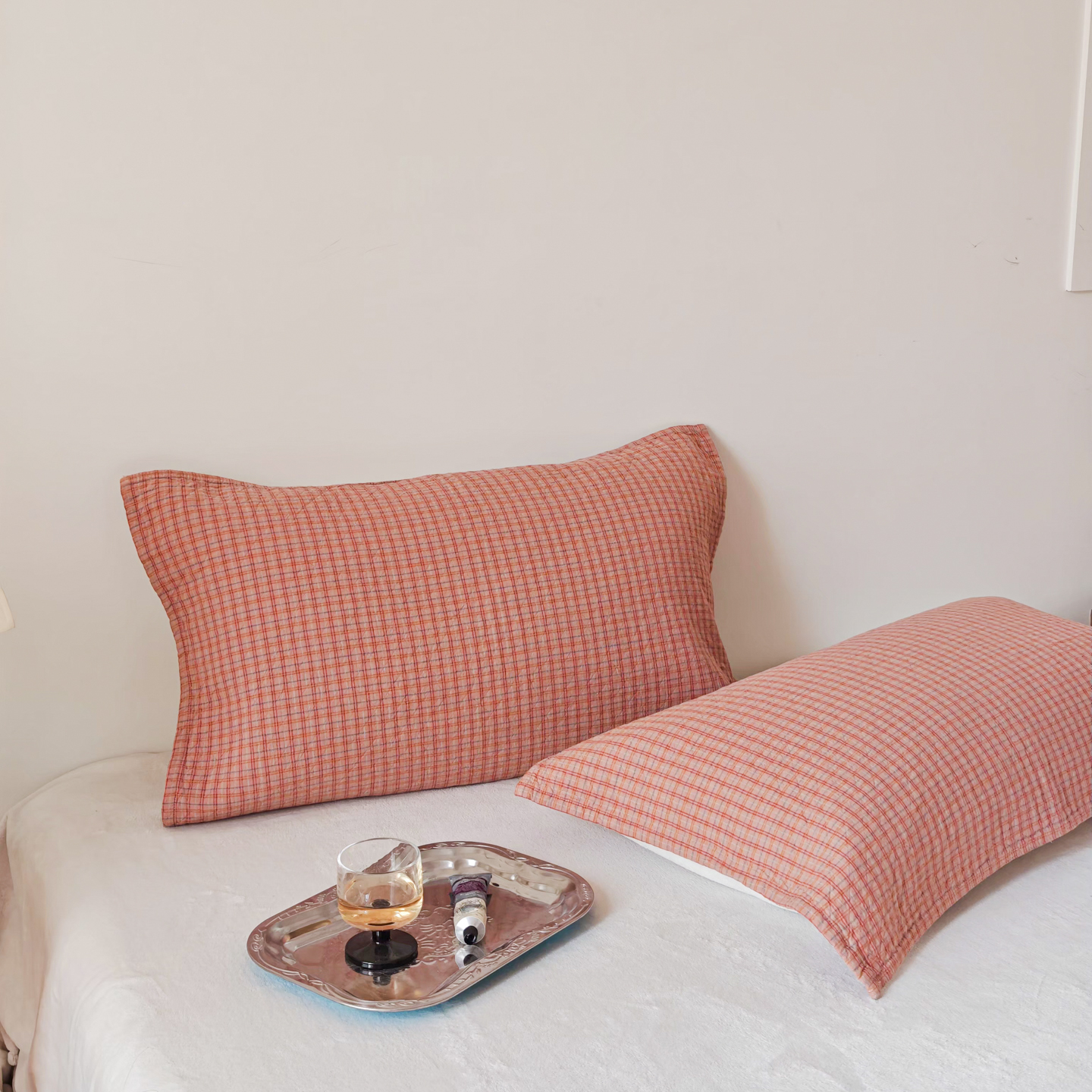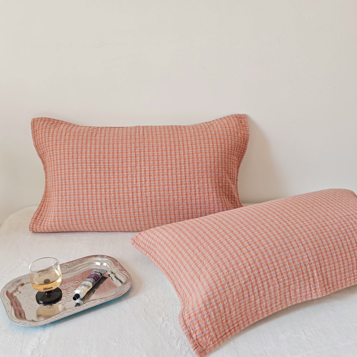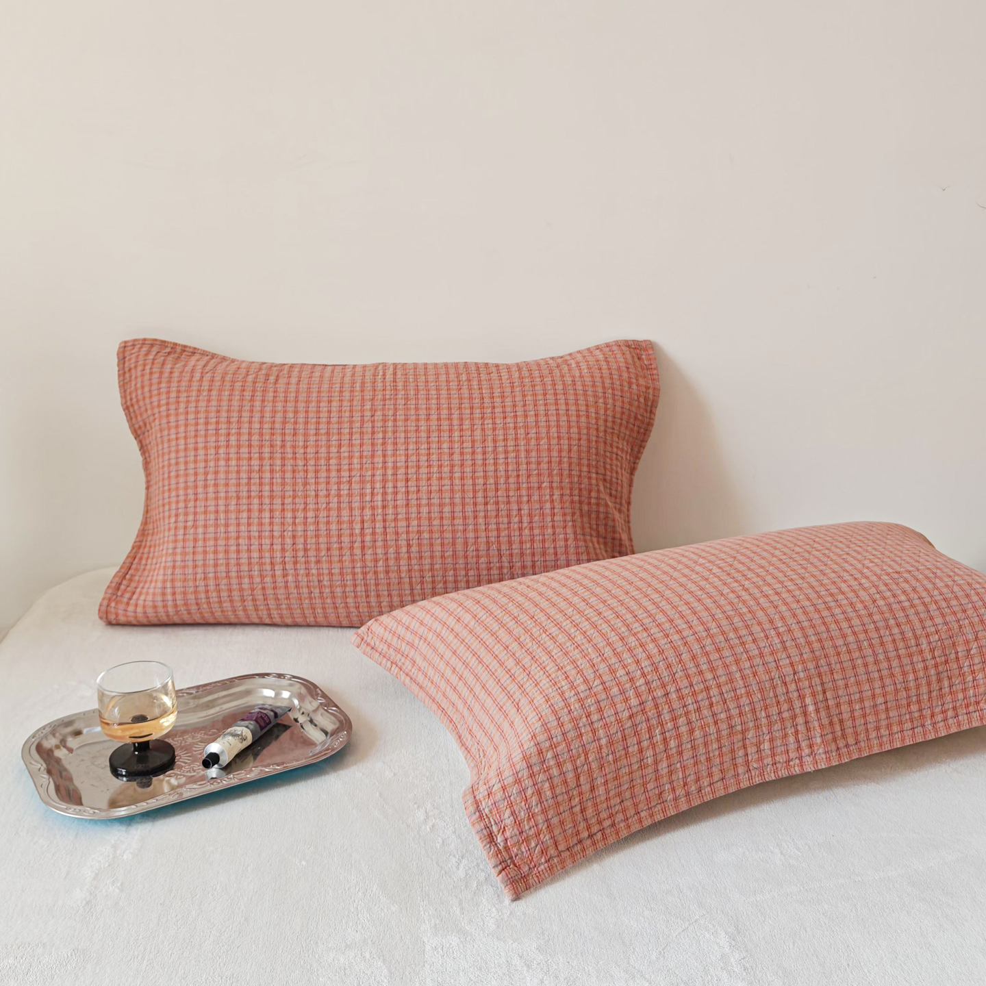 沐瑟家纺 2026新款格子款枕巾垫巾 芸榕-粉色