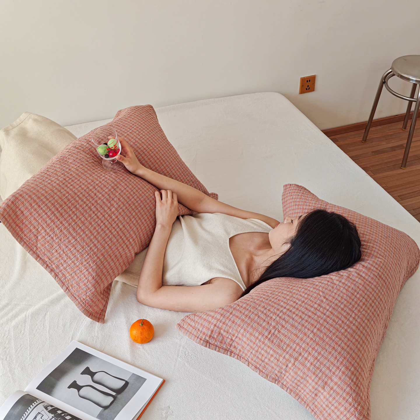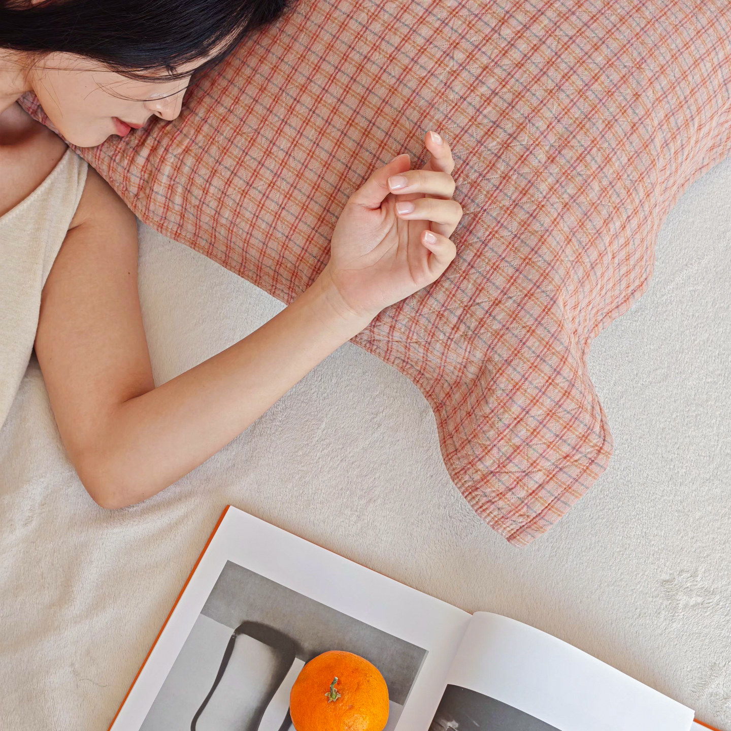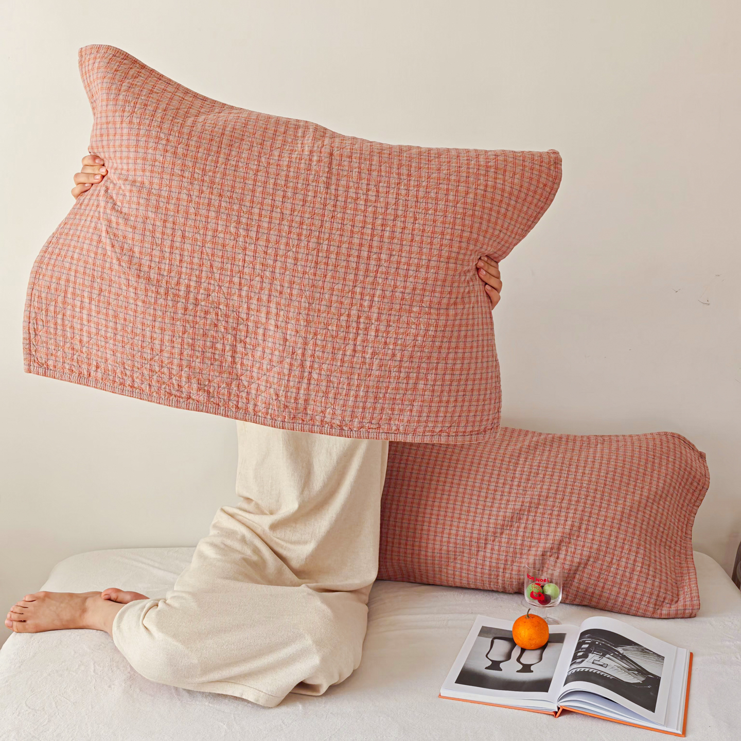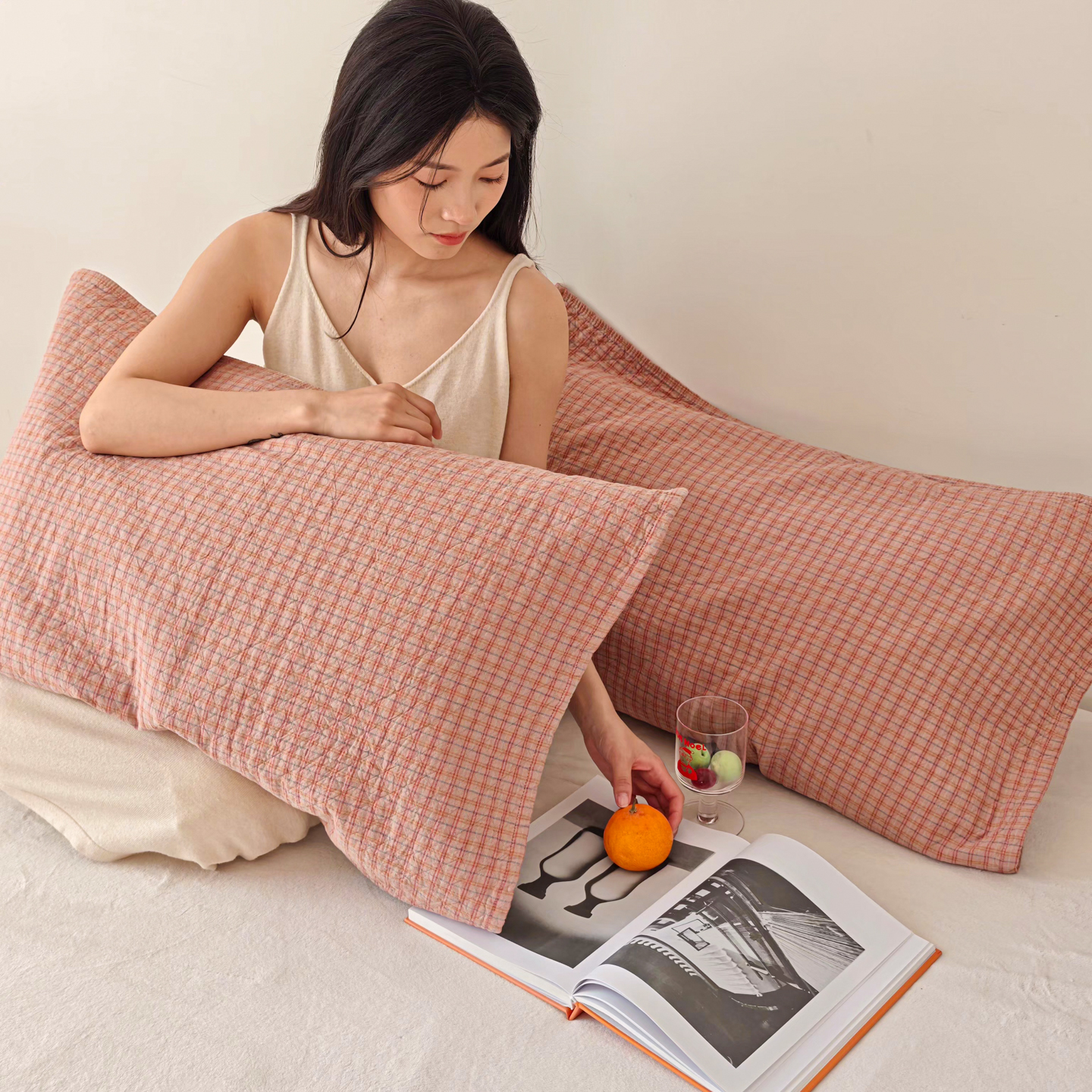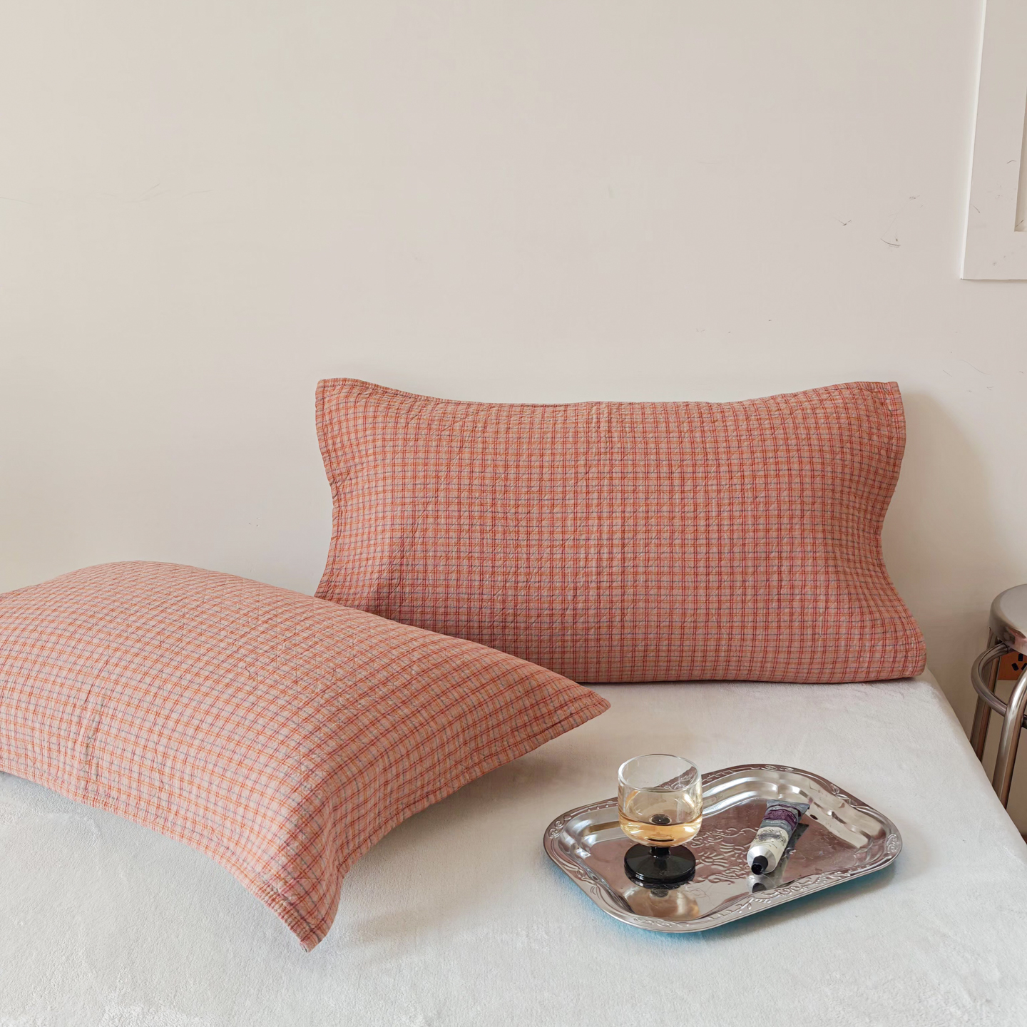 沐瑟家纺 2026新款格子款枕巾垫巾 芸榕-粉色