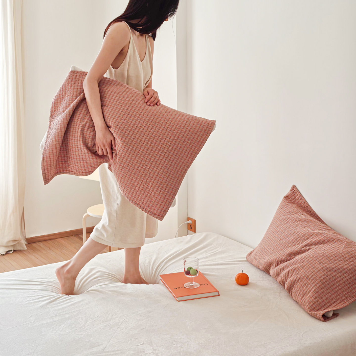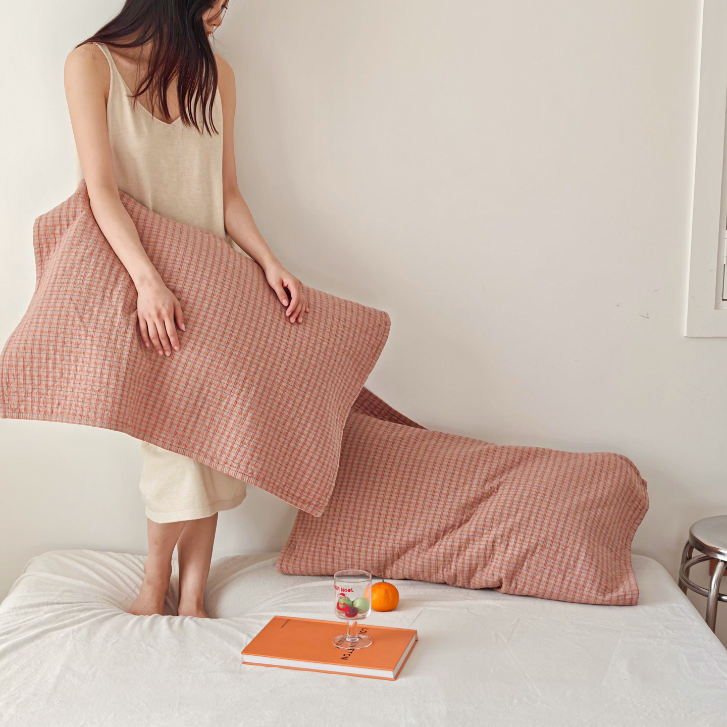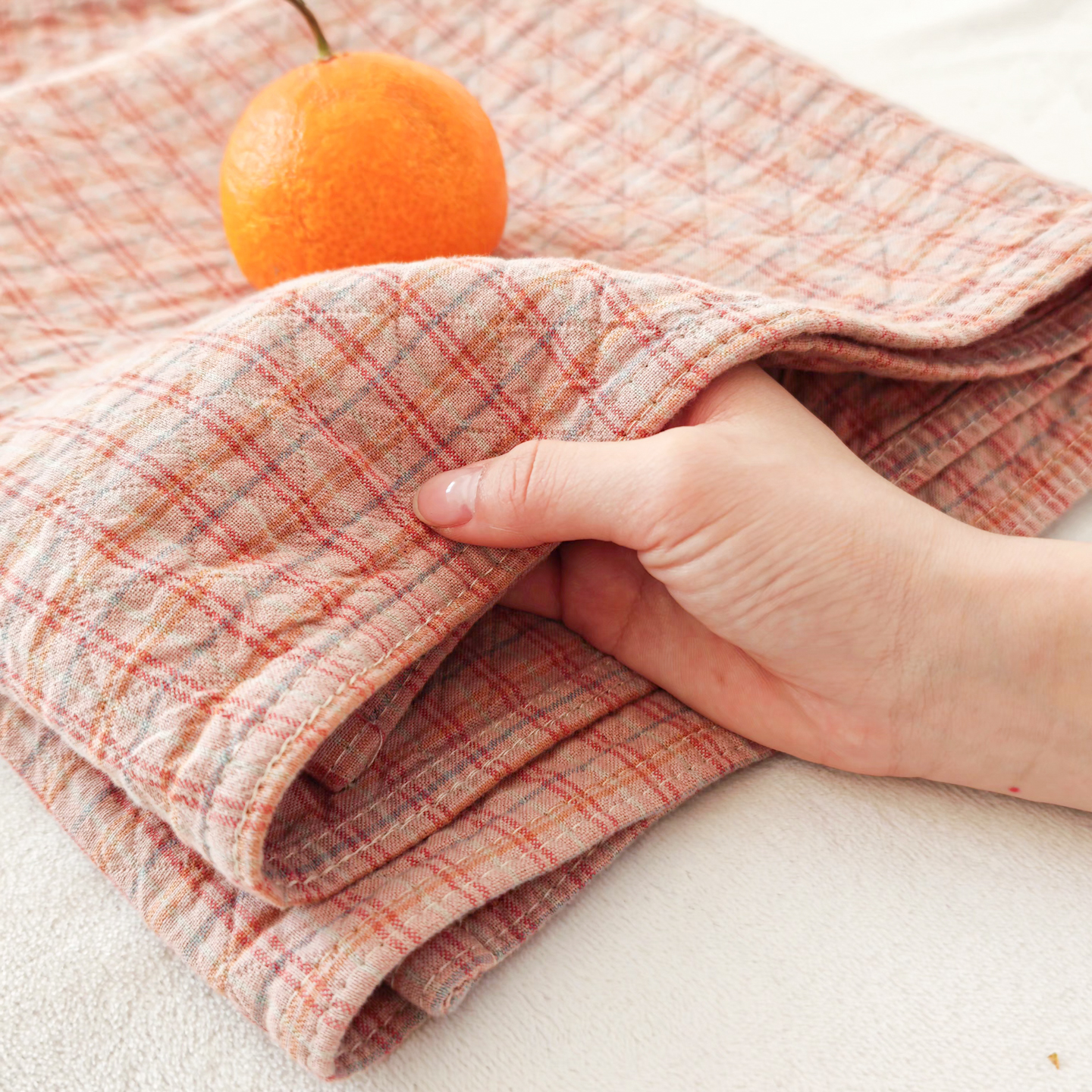 (总)沐瑟家纺 2025新款简约风多功能纱布盖毯纱布毯子毛巾被床盖沙发巾单毯枕巾枕套三件套,H本色,H橙色,H咖色,大马士革本色