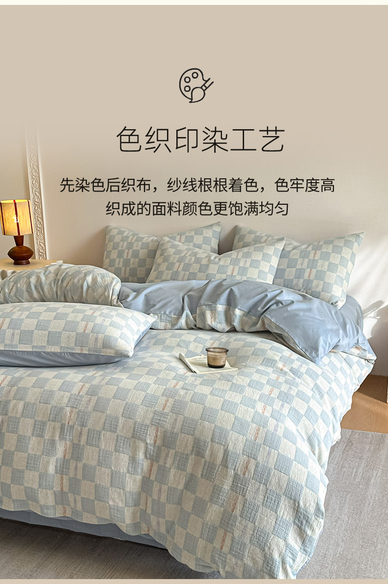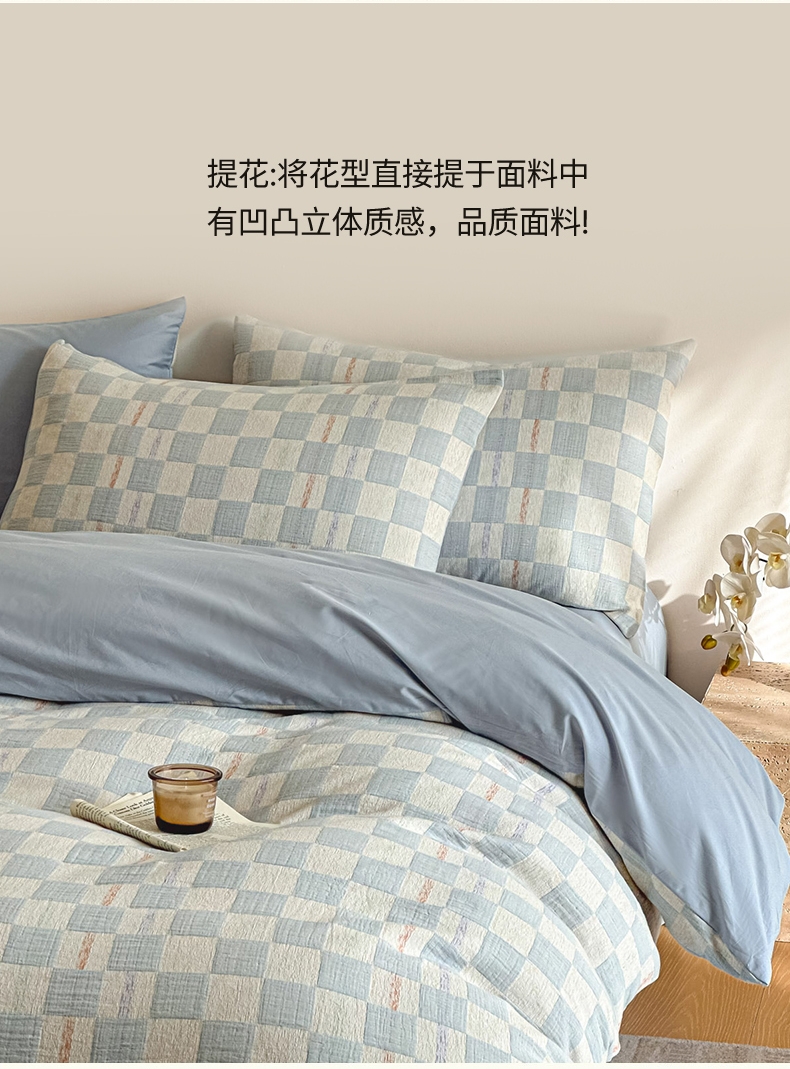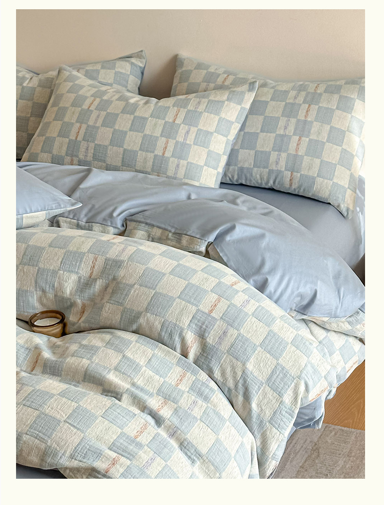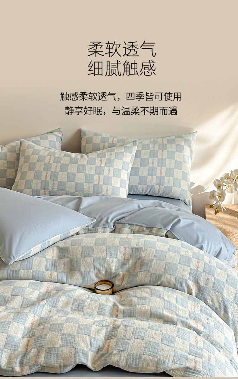 当前位置: 91家纺网 > 商品网购 > 床品套件 > 四件套 > 色织四件套 > 眠博士 2026新款色织水洗双层纱提花四件套 曲奇蓝格