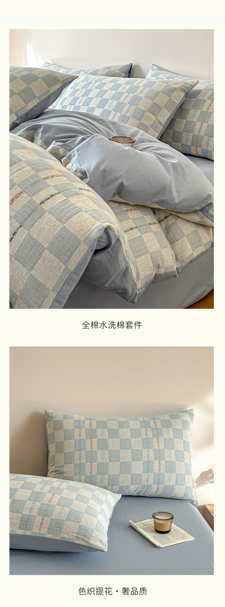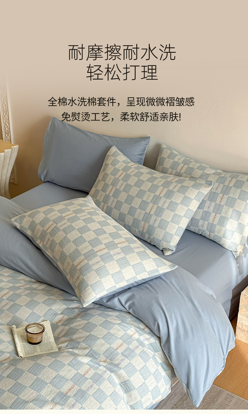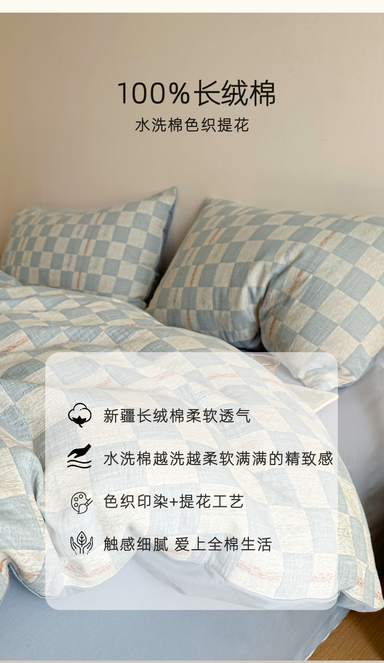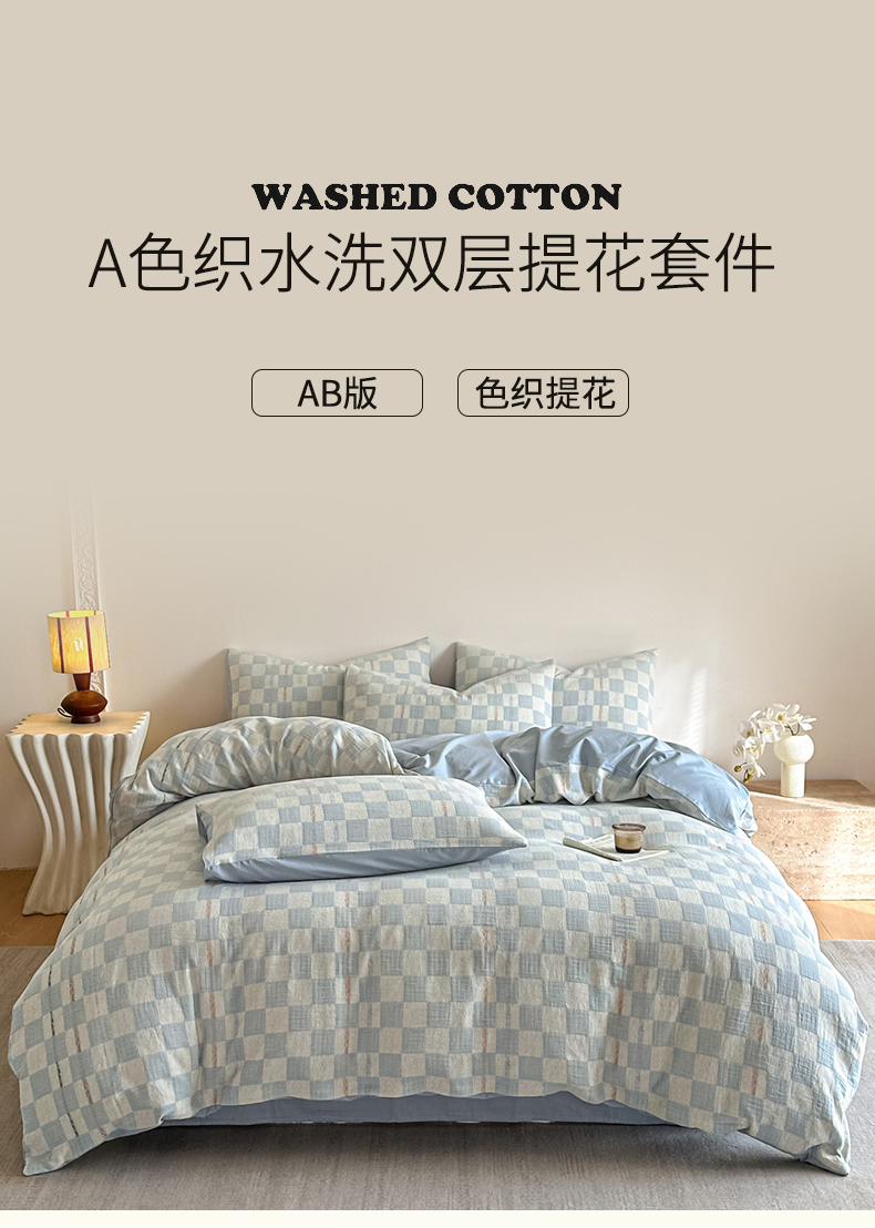 当前位置: 91家纺网 > 商品网购 > 床品套件 > 四件套 > 色织四件套 > 眠博士 2026新款色织水洗双层纱提花四件套 曲奇蓝格