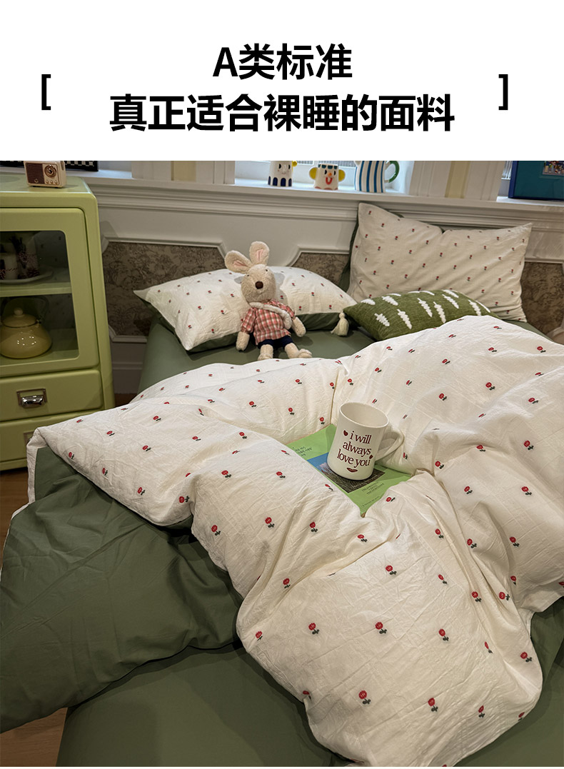 当前位置: 91家纺网 > 商品网购 > 床品套件 > 四件套 > 全棉普通四件套 > 怡家居 2026春夏新款全棉纯棉水洗棉提花四件套 小绿叶