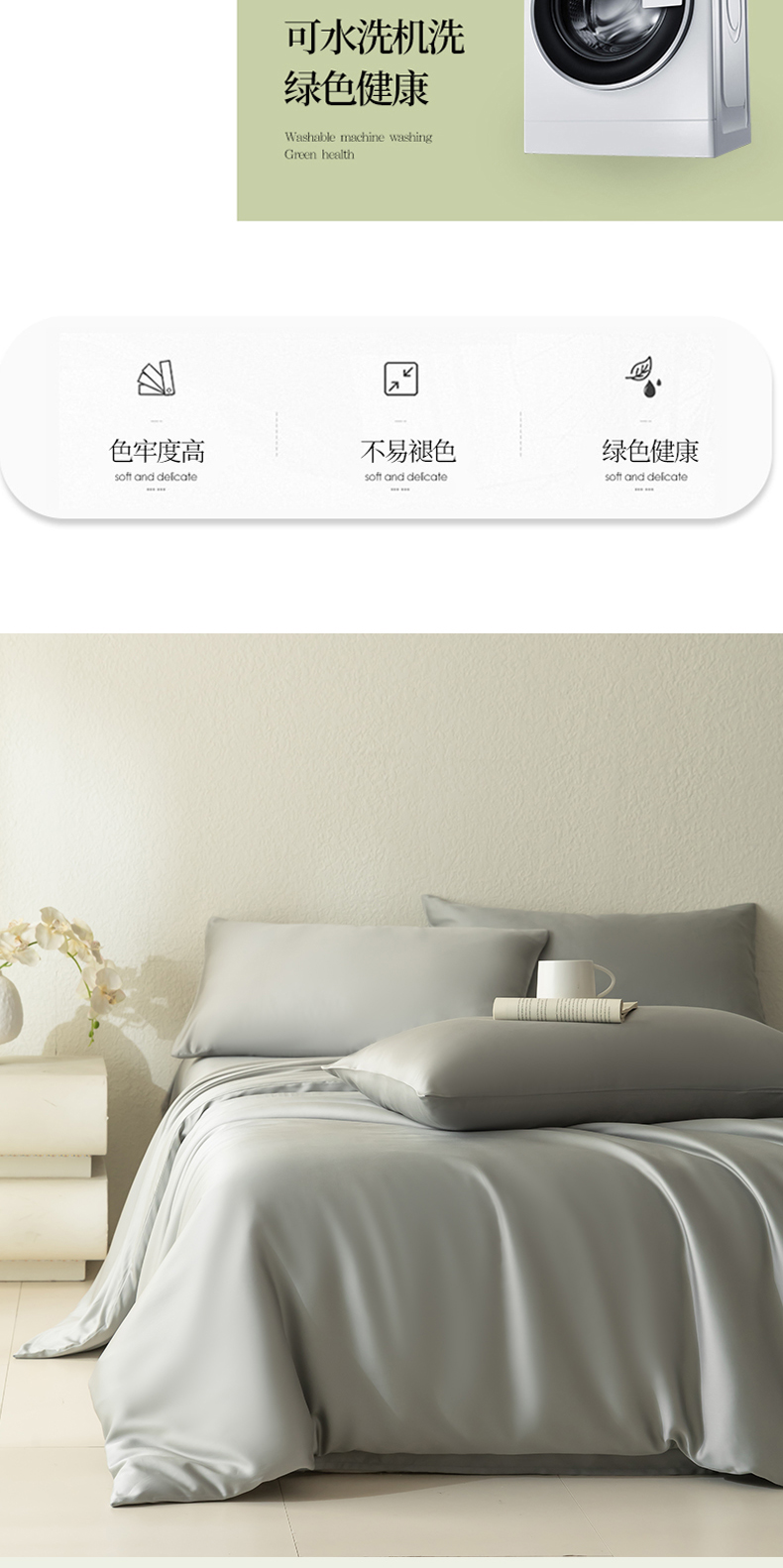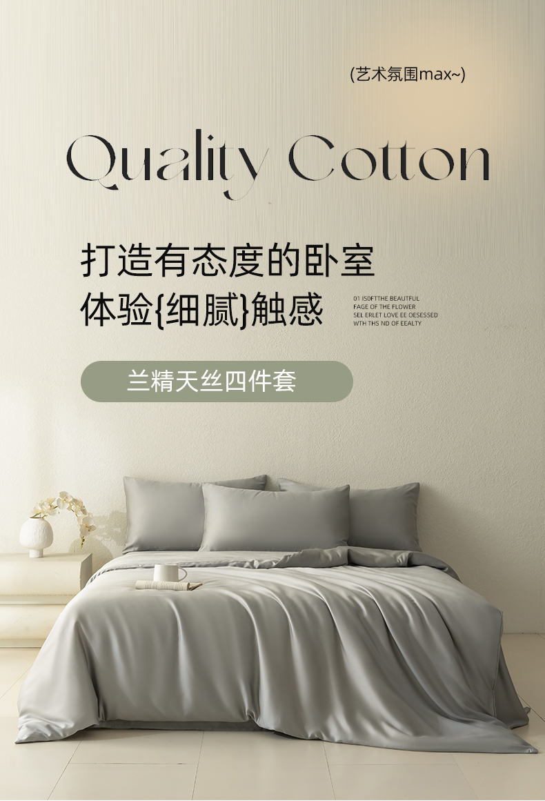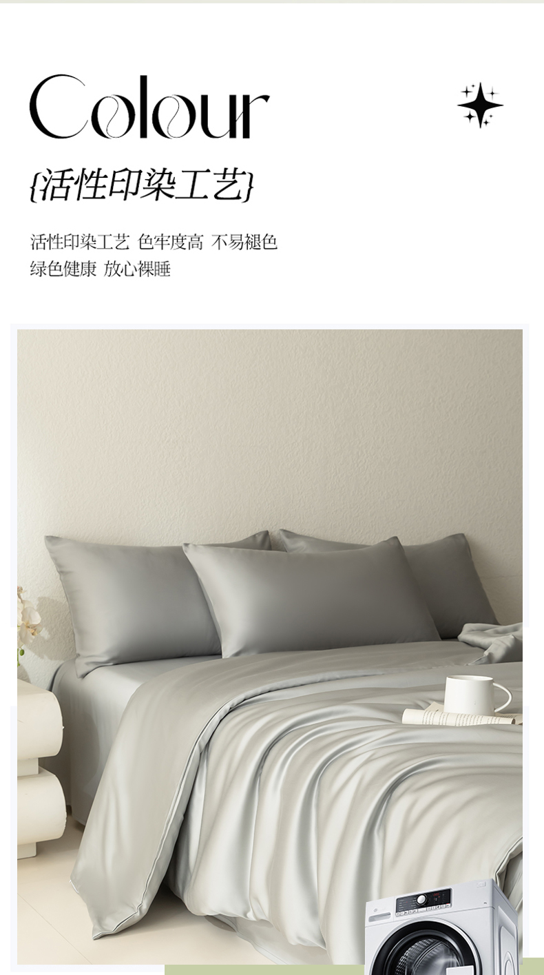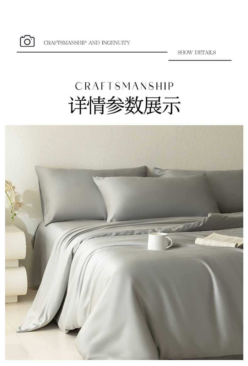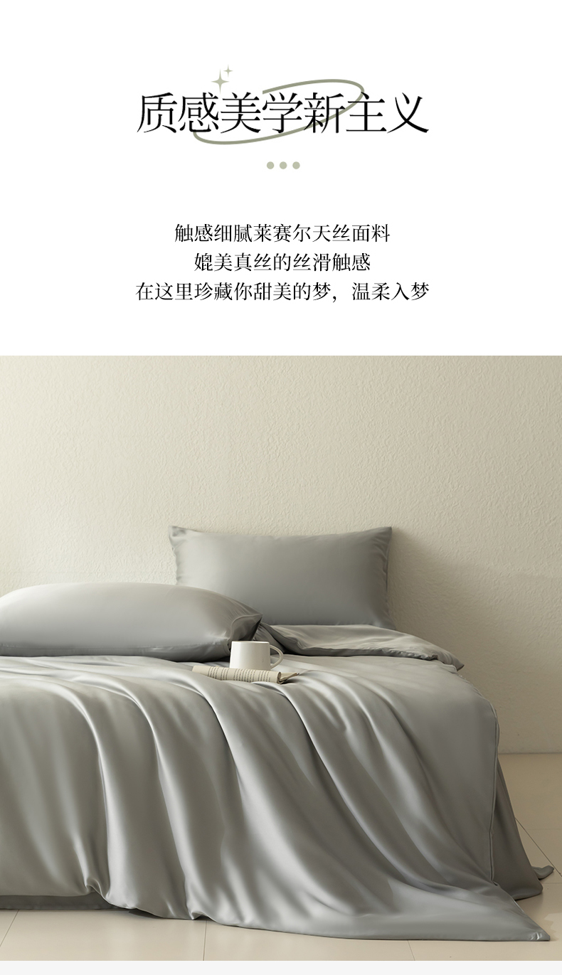 当前位置: 91家纺网 > 商品网购 > 床品套件 > 四件套 > 莱赛尔四件套 > 禾时 2026新款60支奥地利兰精双拼纯色天丝四件套 云纱灰