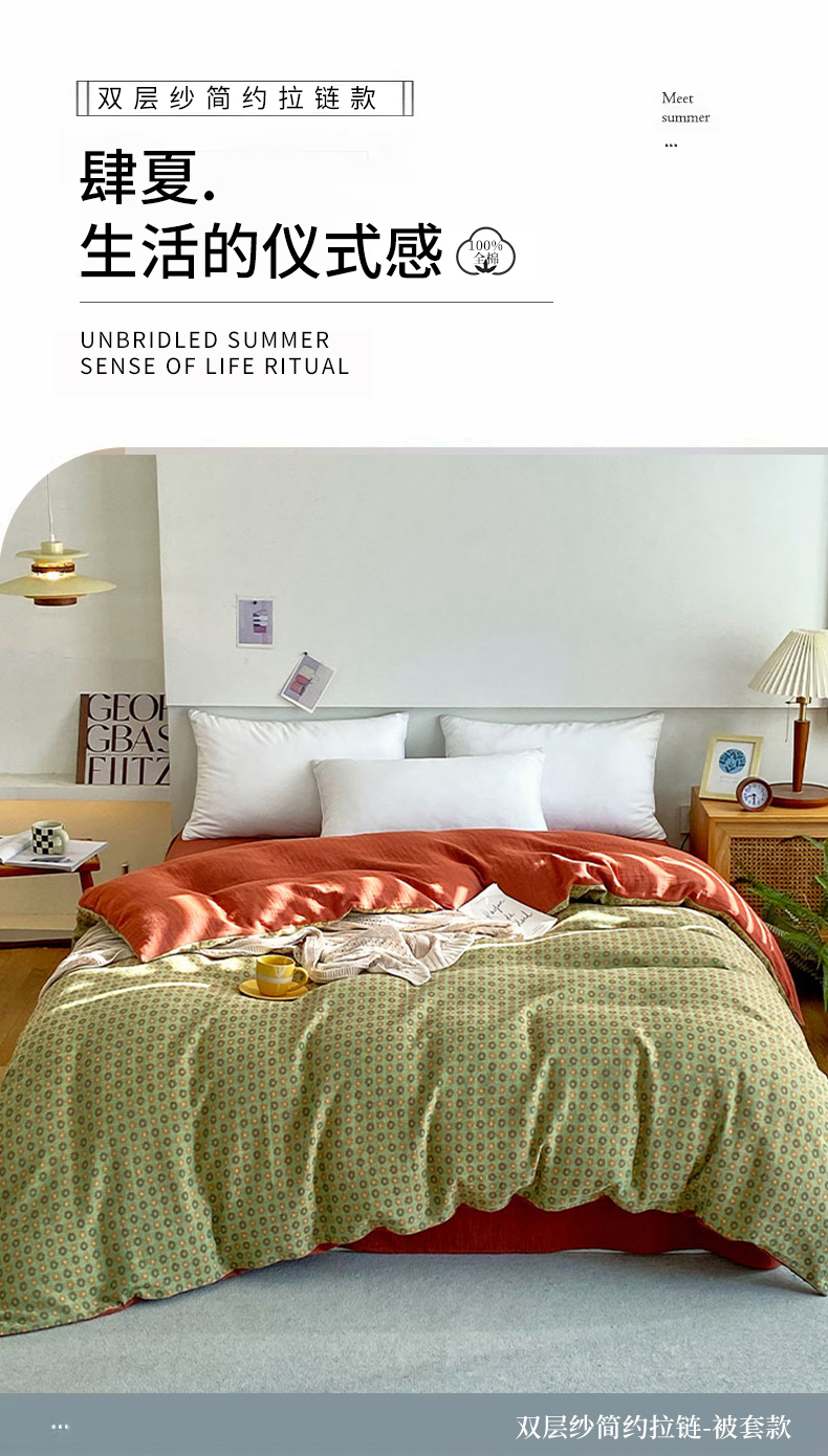 商品名称:春皖家纺 2026新款全棉纯棉拉链款双层纱被套单被套被套单件 夏洛克绿