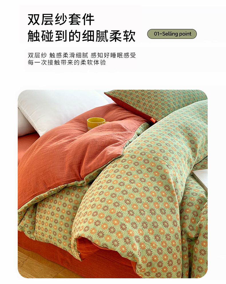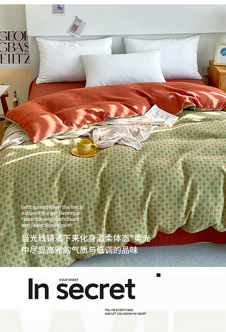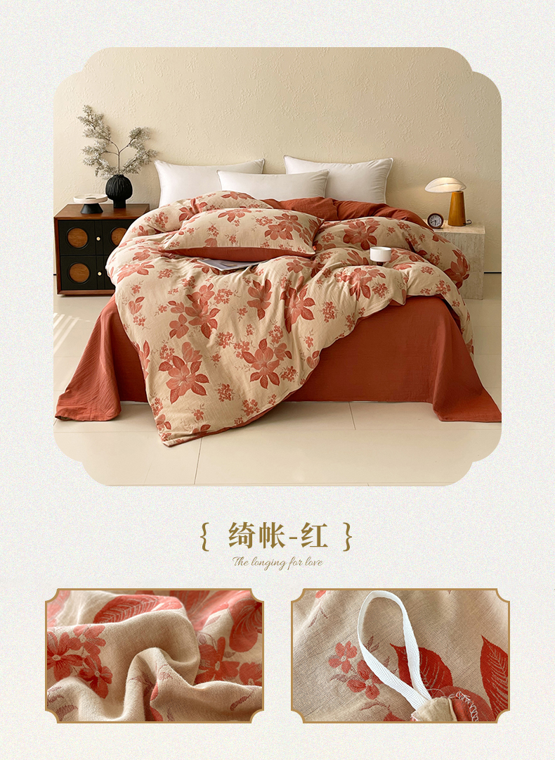 (总)春皖家纺 2026新款全棉纯棉拉链款双层纱四件套,百灵斯顿,夏洛克绿,一丈红,雪花飘,春光灿烂,绮帐-红,绮帐-粉,花漾兰,月临