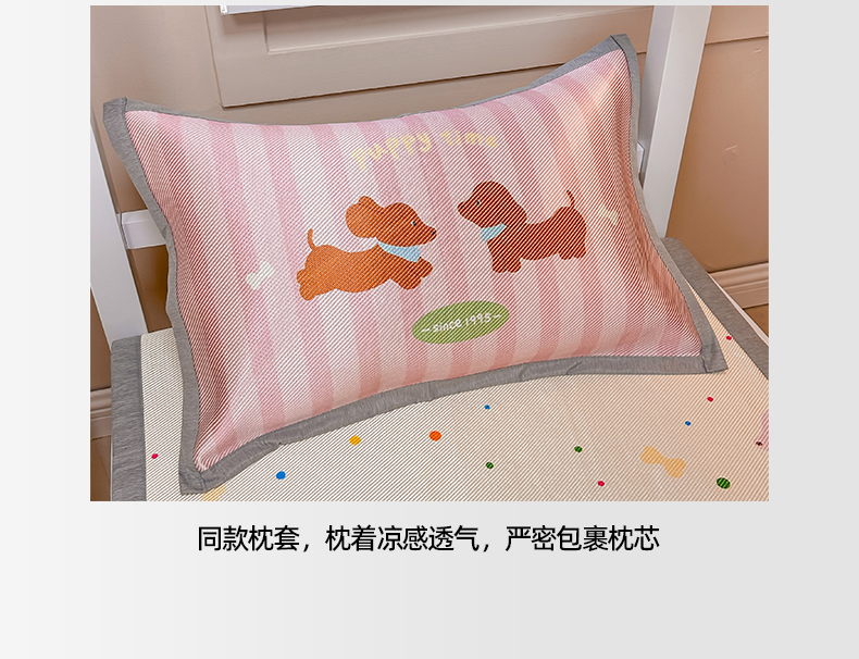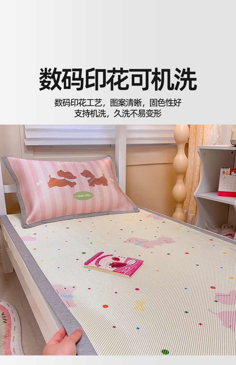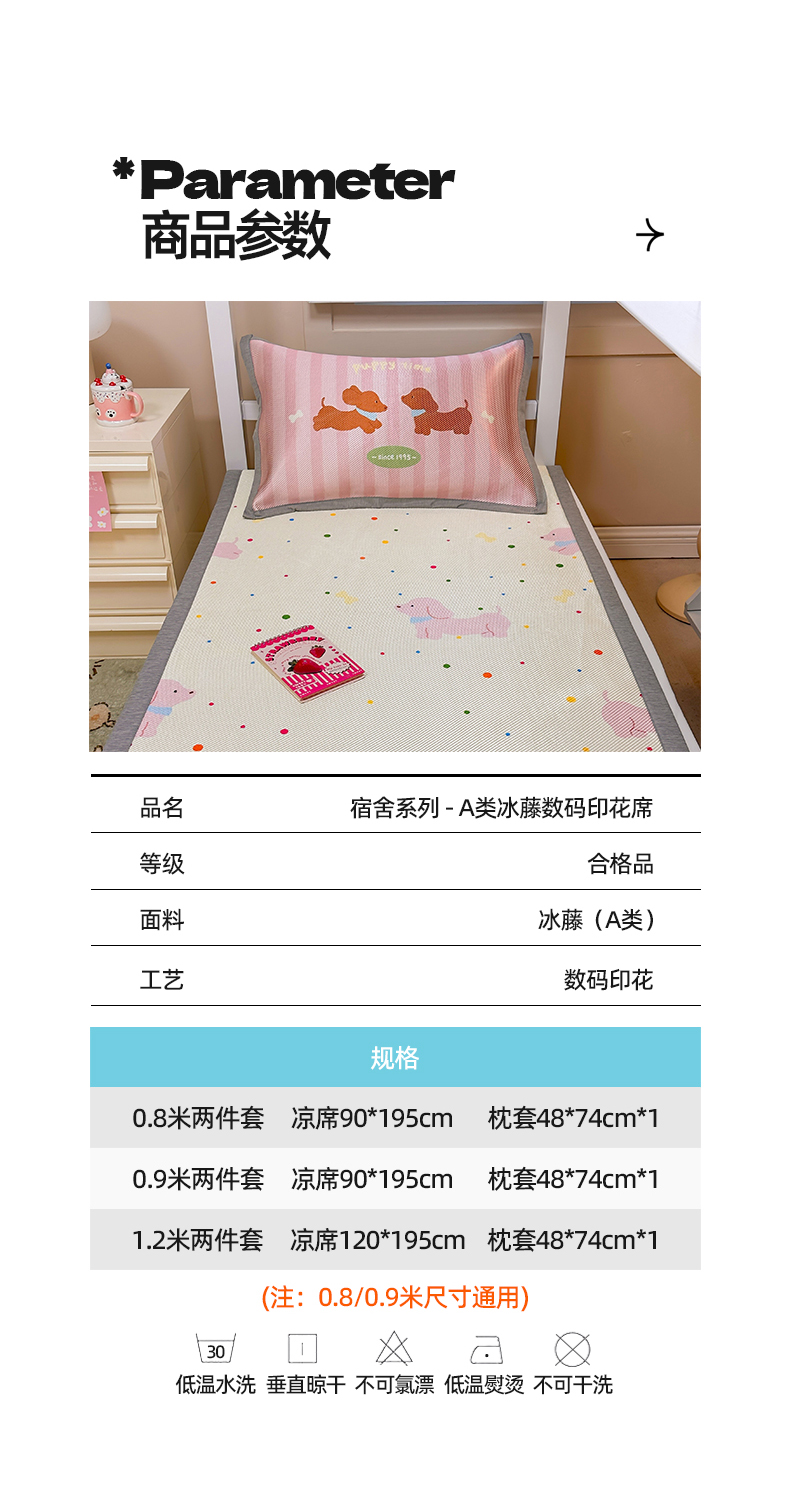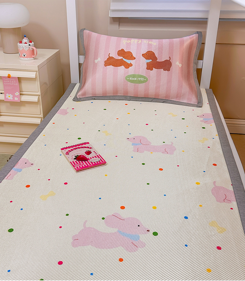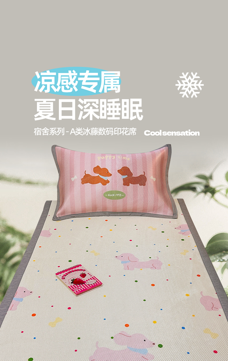 商品名称:懒猫家纺 2026新款600D数码印花大版学生宿舍冰藤凉席 小狗时光