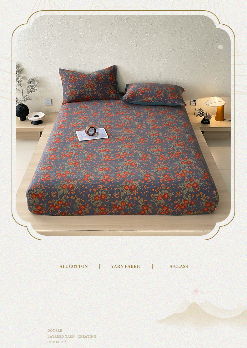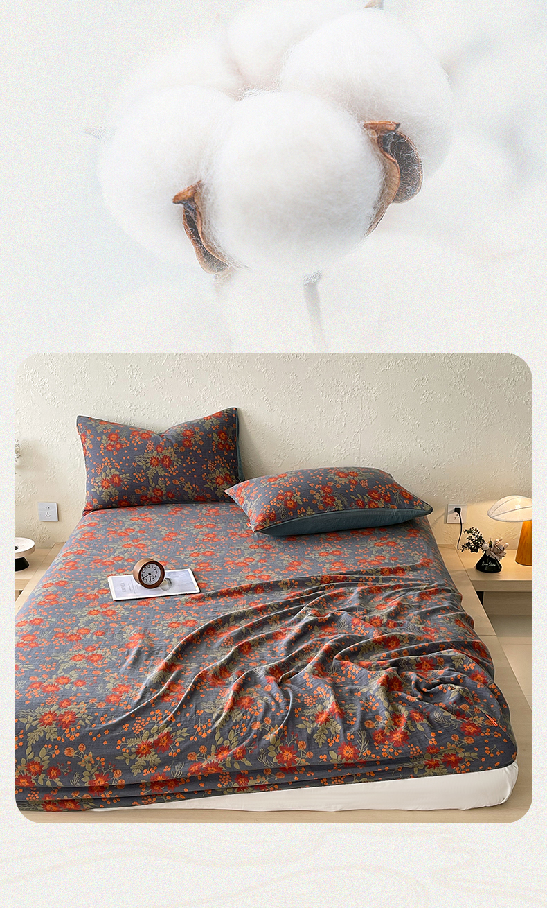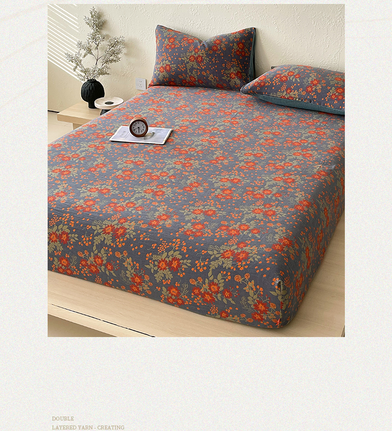 春皖家纺 2026新款全棉纯棉拉链款双层纱床笠单床笠床笠单件 月临