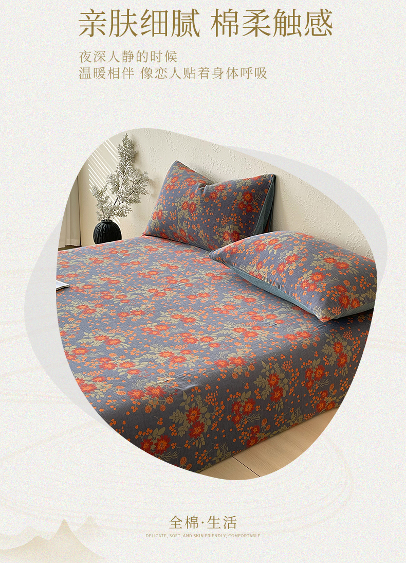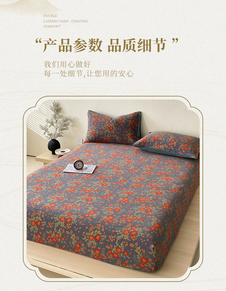 • 91家纺网 家纺一手货源 找家纺 春皖家纺 2026新款全棉纯棉拉链款双层纱床笠单床笠床笠单件 月临