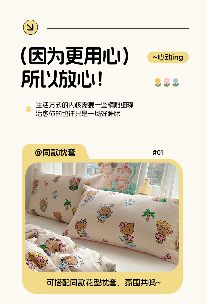 六巷胡同 2026新款40支全棉13070INS卡通单品被套 组合叠拍图
