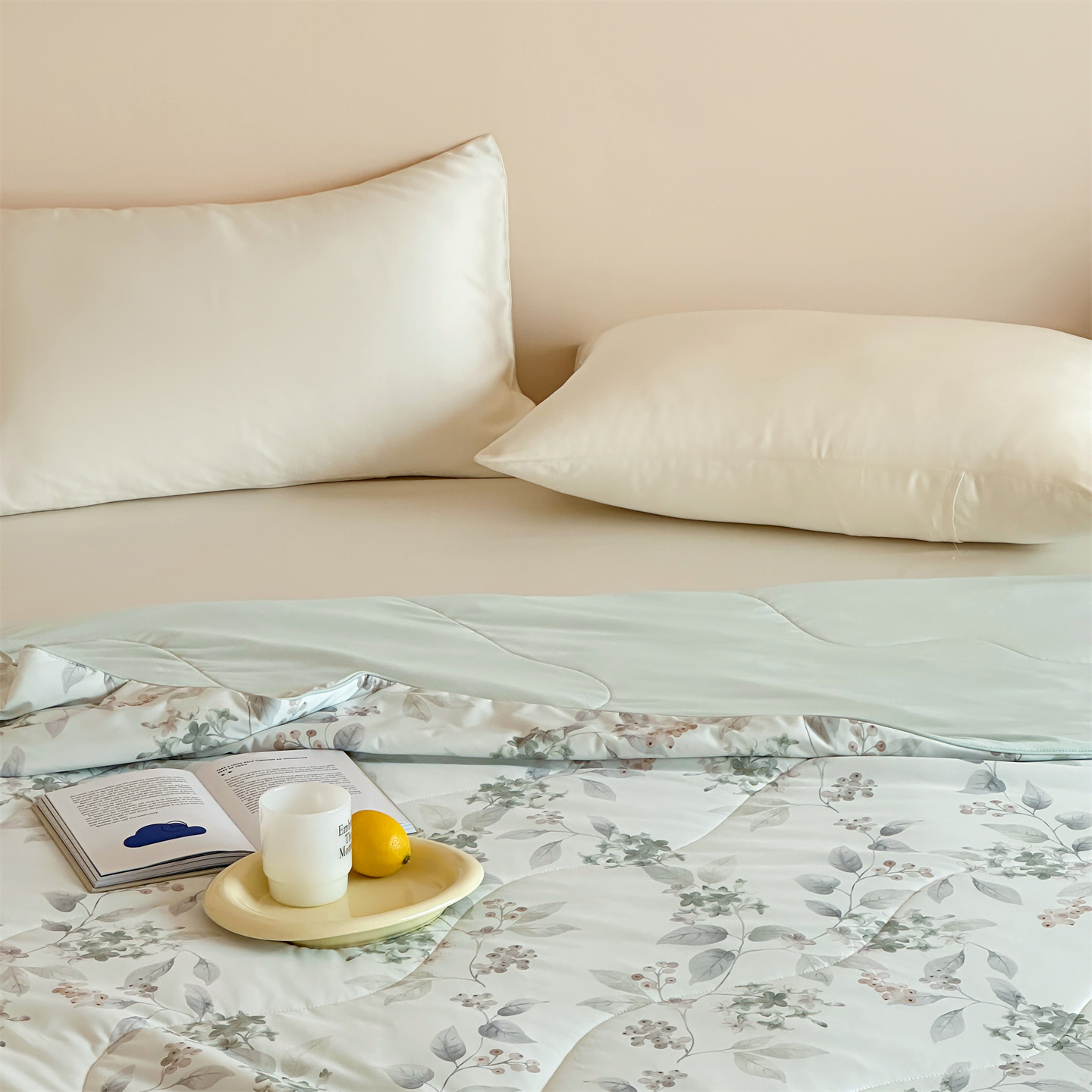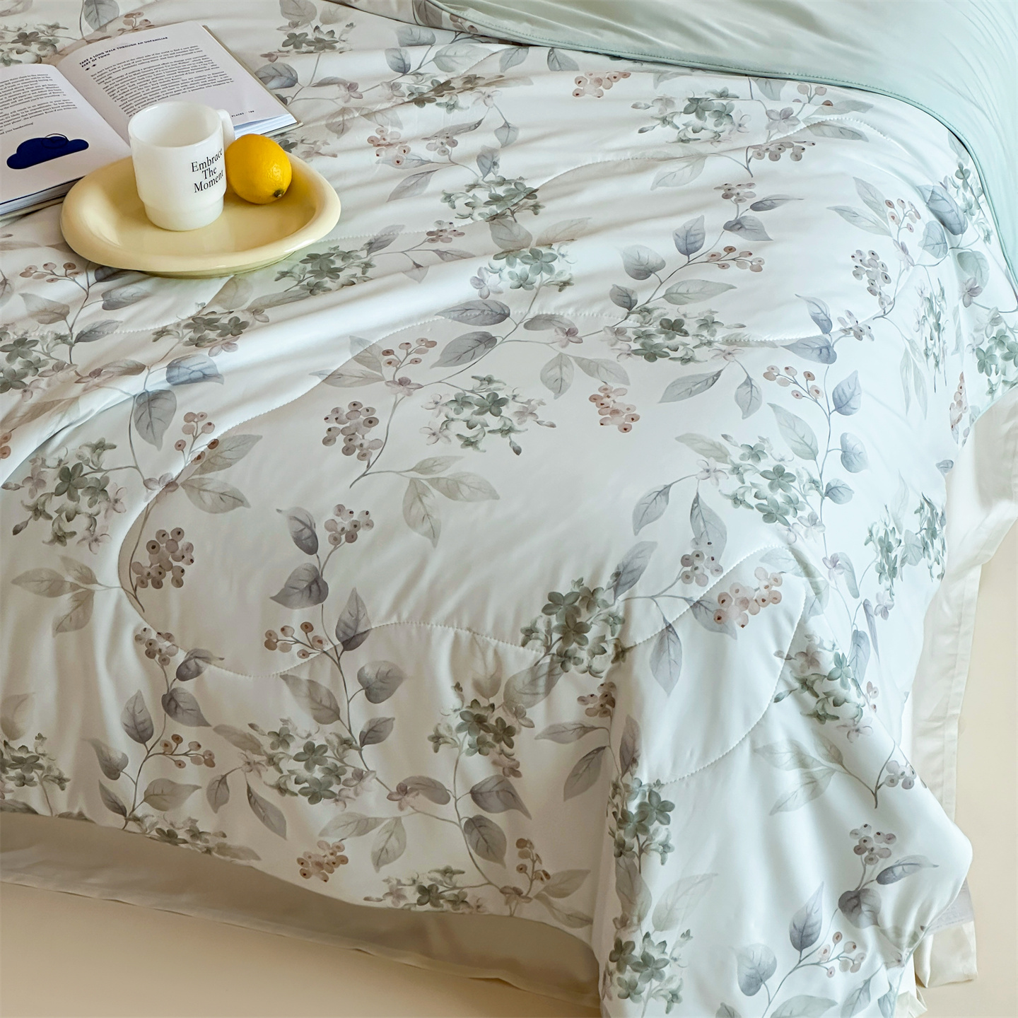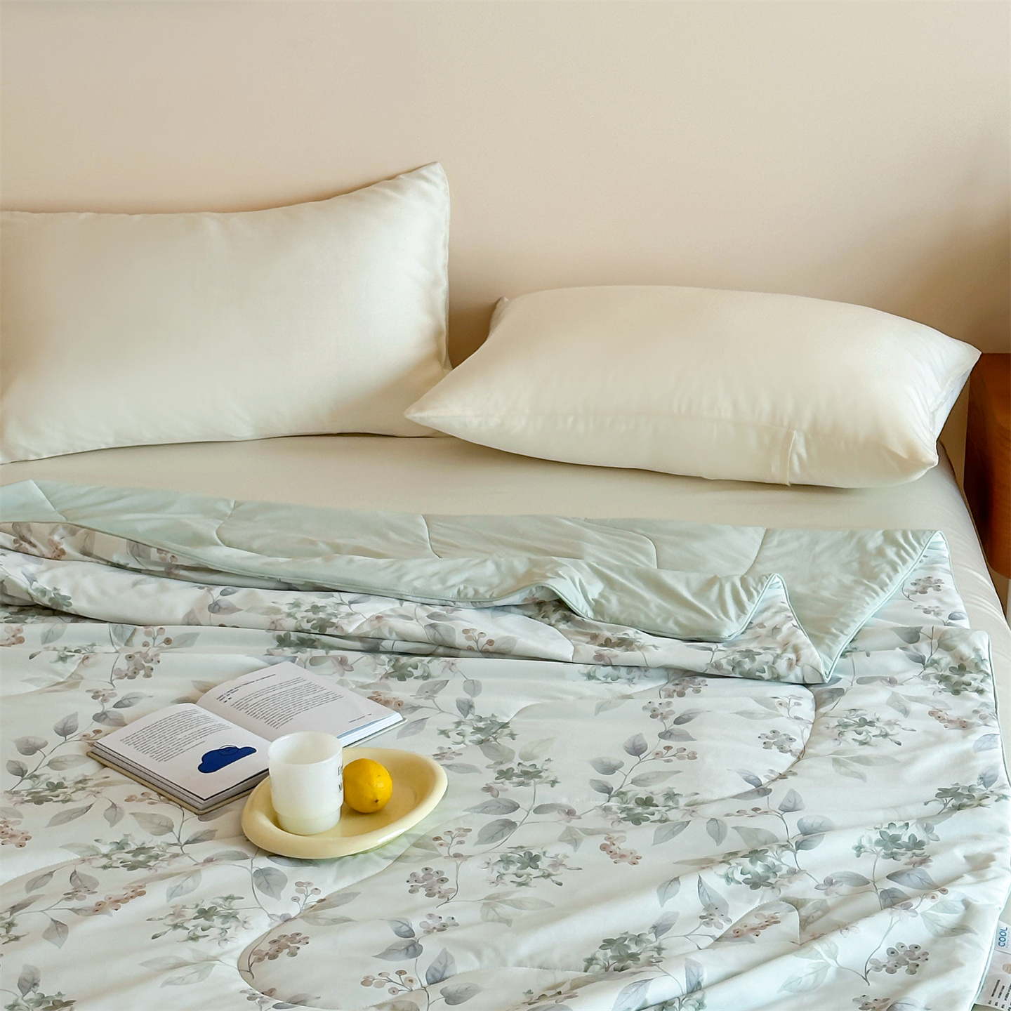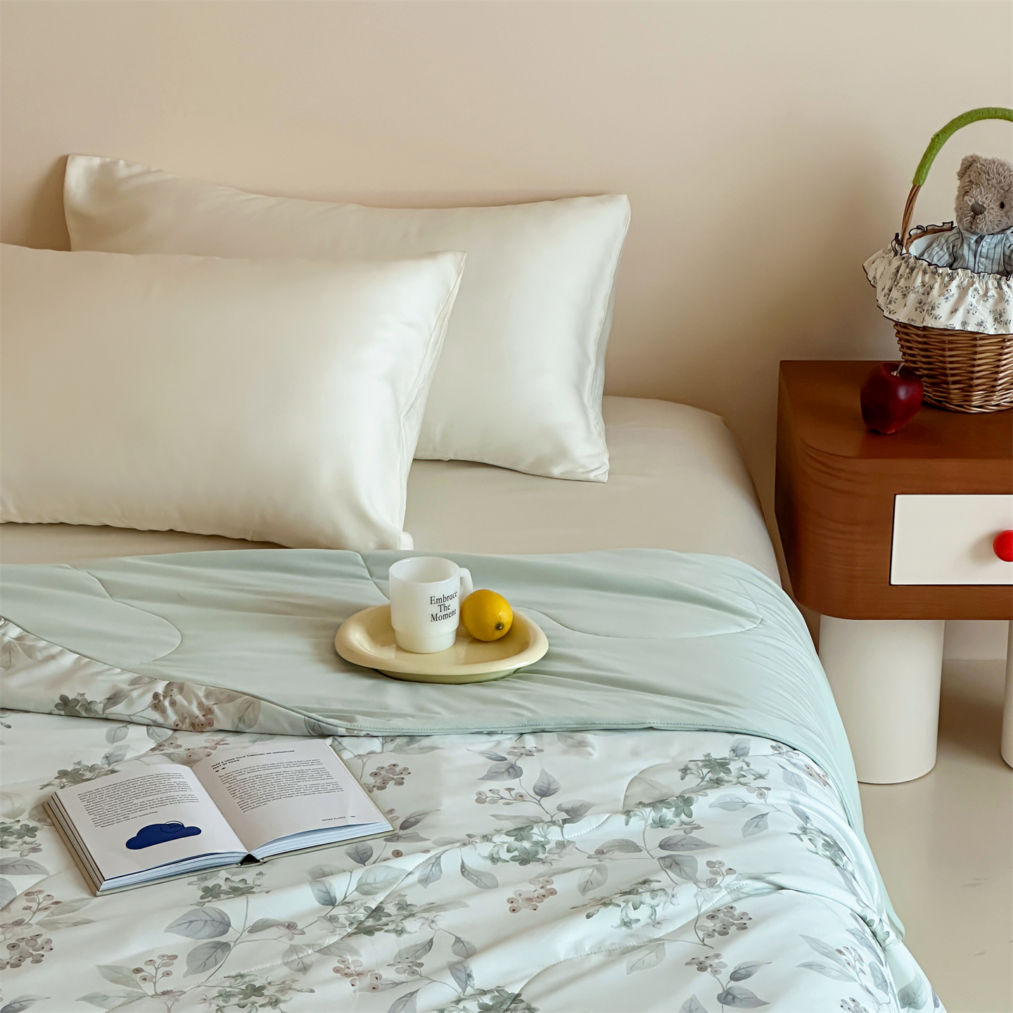 傲蕾良品 2026新款【冷凝一号】高定锦氨针织蚕丝冰皮被 青枝绿叶