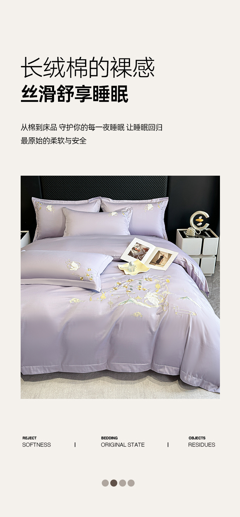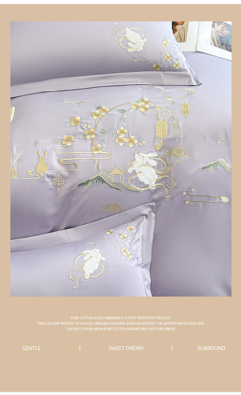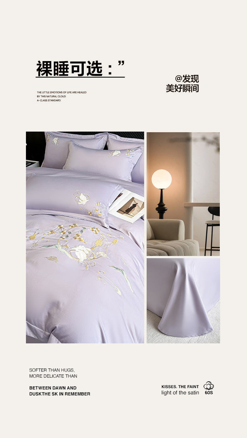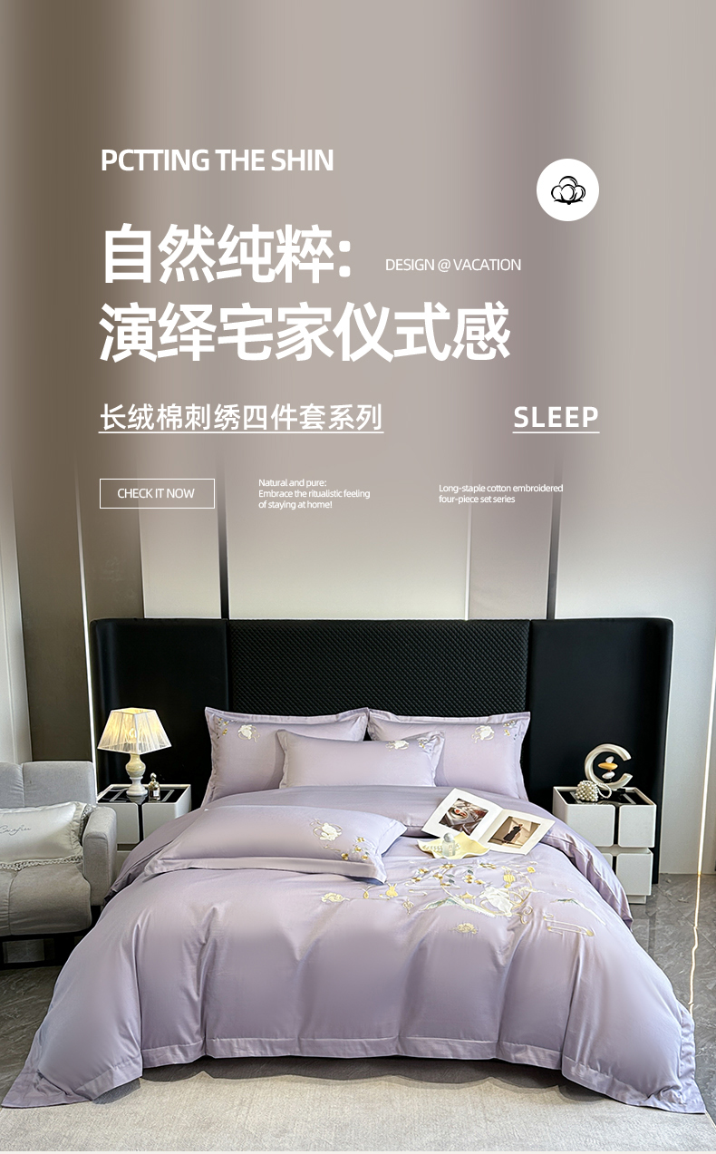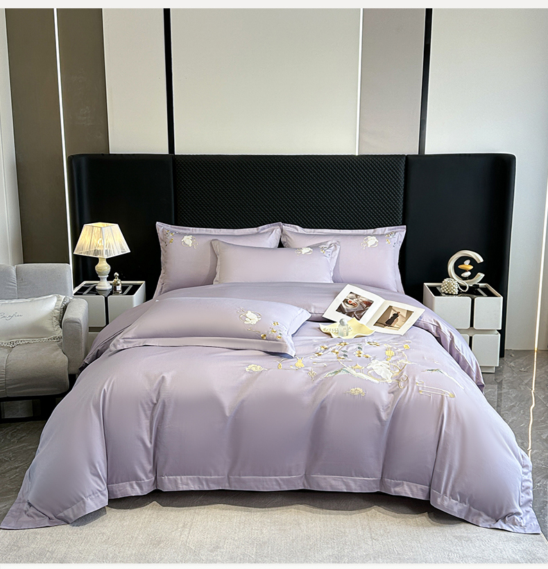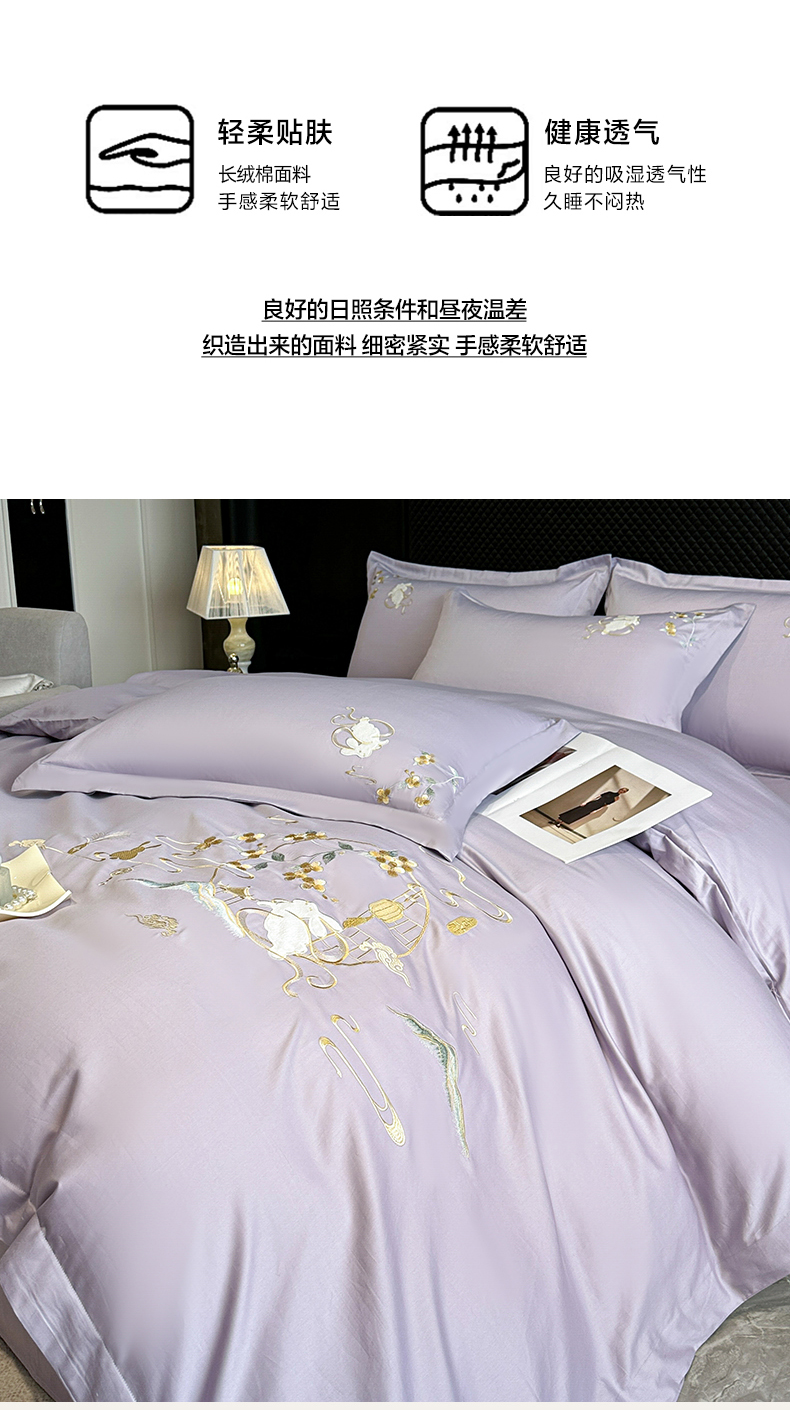 商品名称:绒掌柜家纺(品质焕新) 2026新品100S长绒棉精密贴布刺绣四件套-月夕花朝系列-版权产品-礼盒装 香芋紫