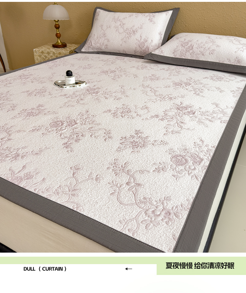 (总)卡初家居(原微来) 2026A类凉豆豆凉感提花床裙席-玫瑰物语,玫瑰物语-浪漫灰,玫瑰物语-柔和粉,玫瑰物语-天空蓝,玫瑰物语-香槟金,玫瑰物语-优雅绿