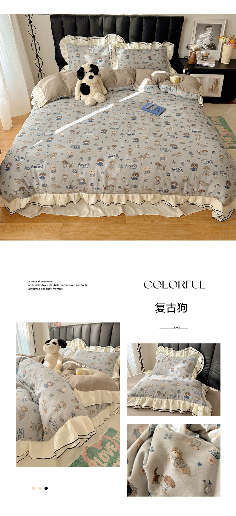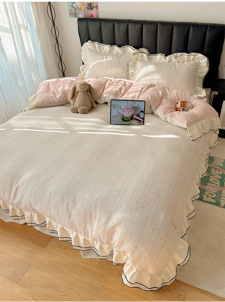 当前位置: 91家纺网 > 商品网购 > 床品套件 > 四件套 > 其它四件套 > 韩都家居 2026春夏新款双层纱皱皱纱韩系清新风四件套 彩修狗