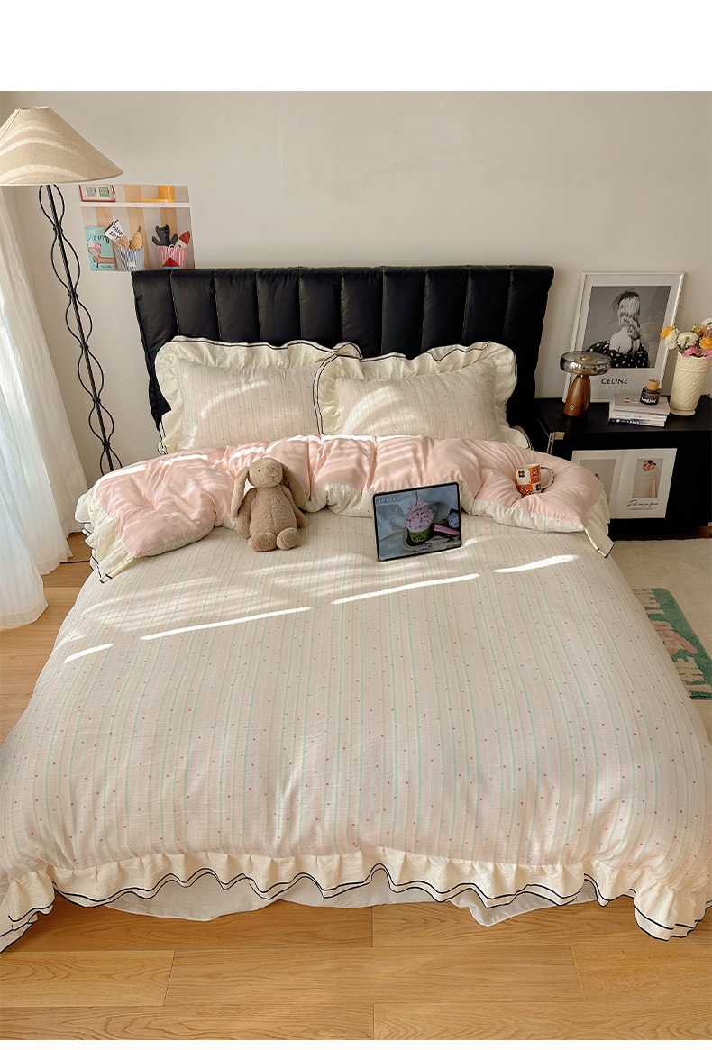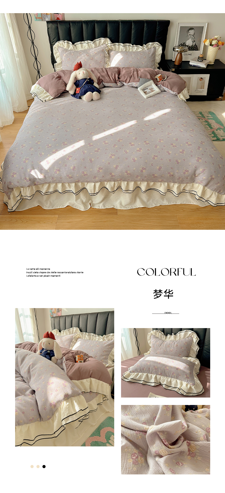 当前位置: 91家纺网 > 商品网购 > 床品套件 > 四件套 > 其它四件套 > 韩都家居 2026春夏新款双层纱皱皱纱韩系清新风四件套 舞曲