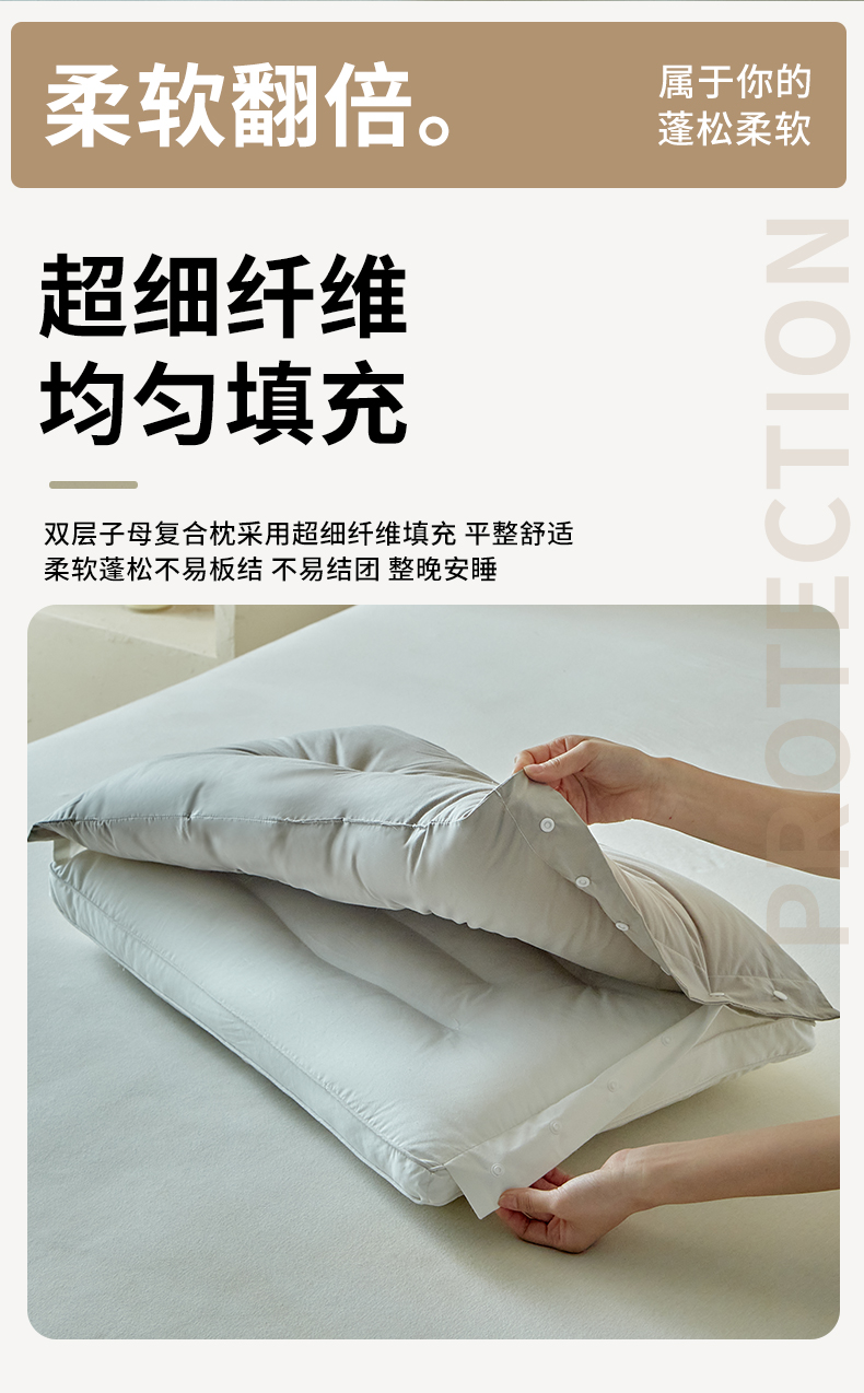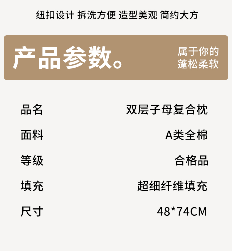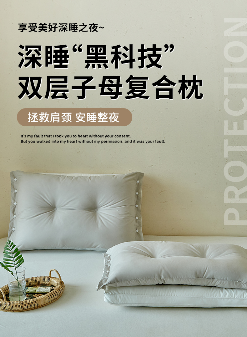 商品名称:(总)梵希良品家纺 2026新款二合一子母枕头A类纯棉全棉云朵羽丝绒柔软护颈枕芯可拆卸枕头洗枕头枕芯