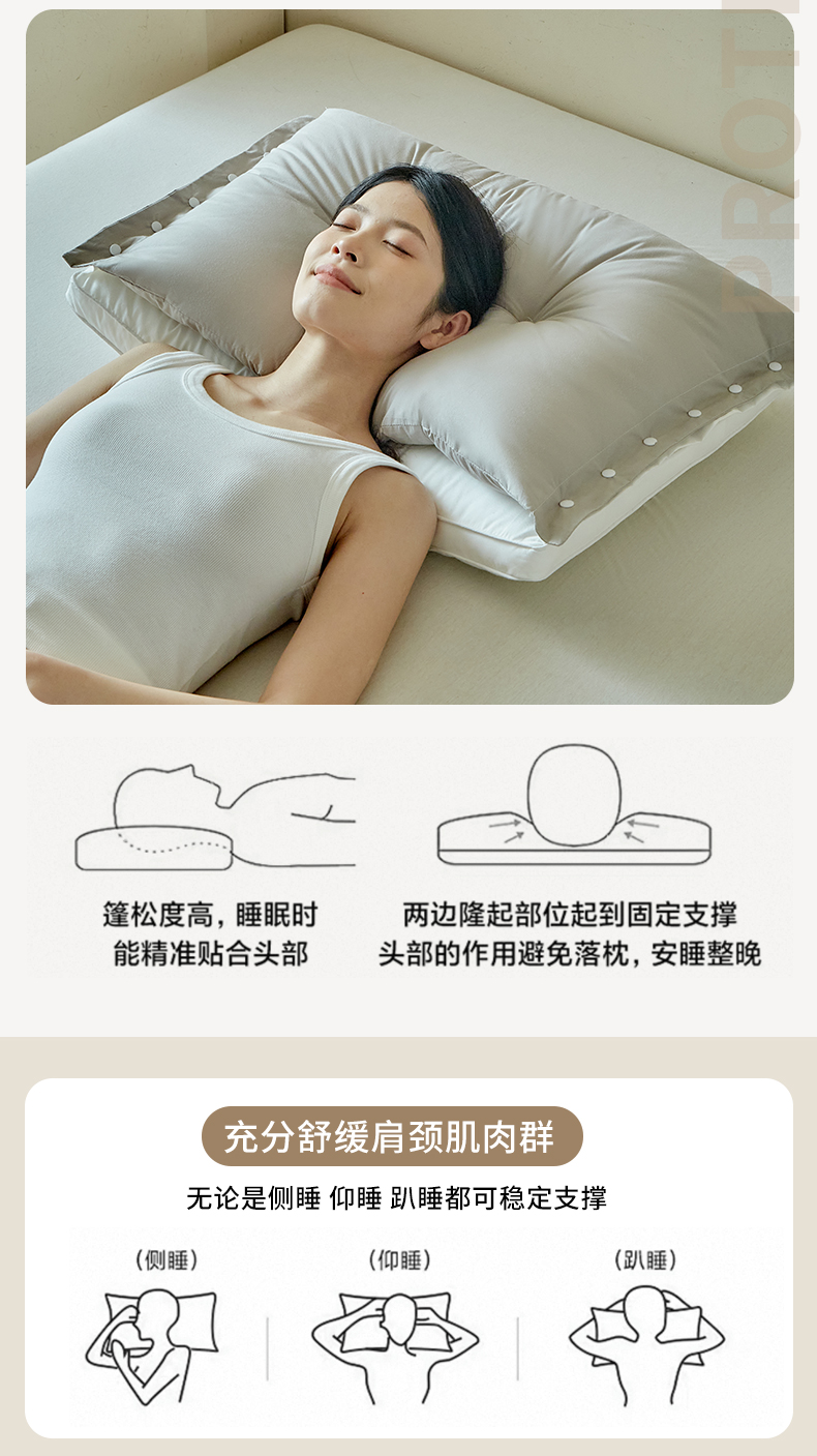 (总)梵希良品 2024新款纯棉双层三合一护颈枕助睡眠枕头枕芯40*60cm,双层三合一护颈枕800g,双层三合一护颈枕900g,双层三合一护颈枕1000g