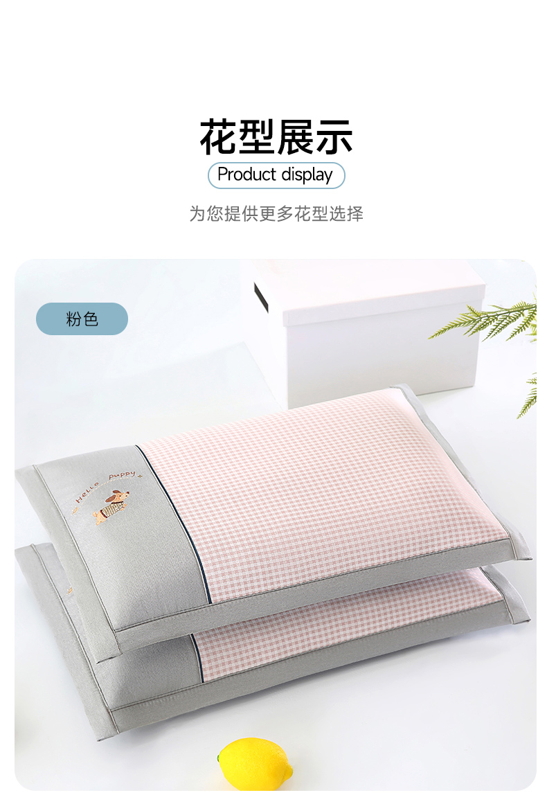(总)小牛席业 2026新款双PE高凉感-腊肠狗格纹(荞麦枕)枕头枕芯,粉色,灰色,蓝色,绿色