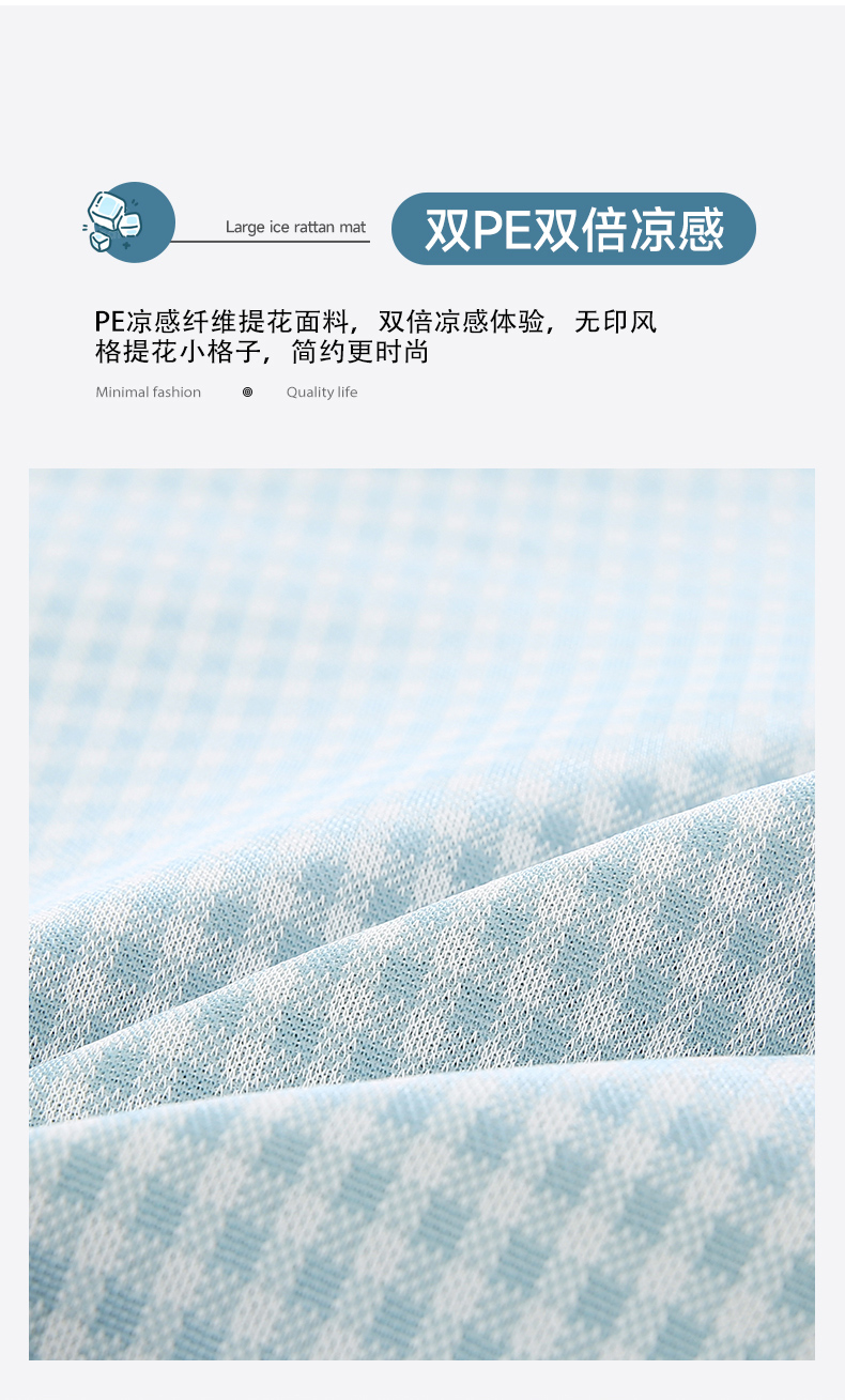 (总)小牛席业 2026春夏新款PE琉璃叶语提花凉感冰丝席席子,蓝色,粉色,灰色,香槟